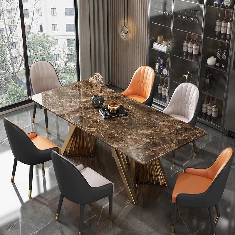 Boyu Furniture / Imported Natural Luxury Stone Dining Table - Venetian Brown Italian Style High-End Marble Designer Table