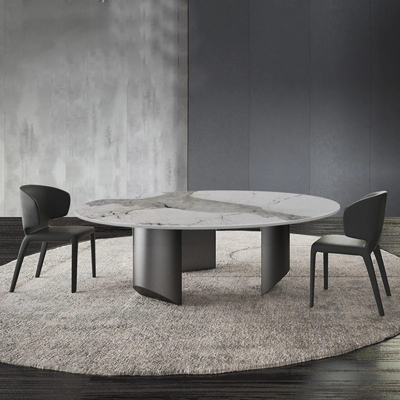 Modern Minimalist Round Dining Table Set with Stone-like Surface - Perfect for Small Spaces, Featuring Stylish Chairs for a Chic Dining Experience