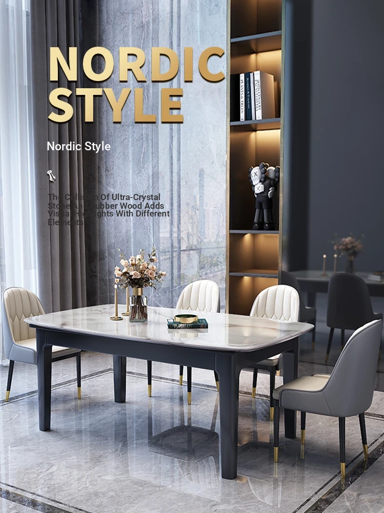 Nordic Style Rectangular Dining Table Set with Solid Wood Frame – Ultra Crystal Stone Table and Chairs for Modern Minimalist Homes, Perfect for Small Spaces
