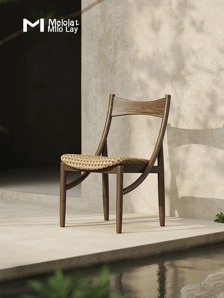 Melolat Solid Wood Dining Chair - Designer French Vintage Inspired Creative Luxury, Elegant and Minimalist Restaurant Leisure Chair