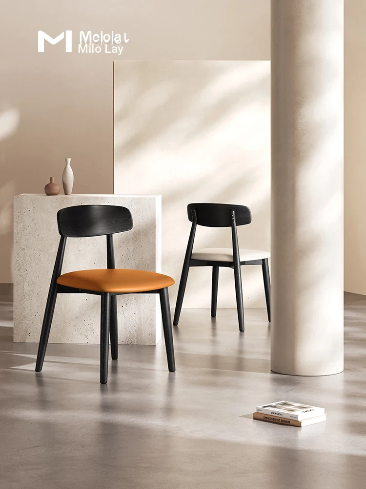 Melolat American Solid Wood Dining Chair - Modern Nordic Minimalist Backrest Chair with Oil Wax Leather and Ash Wood for Home Dining Room