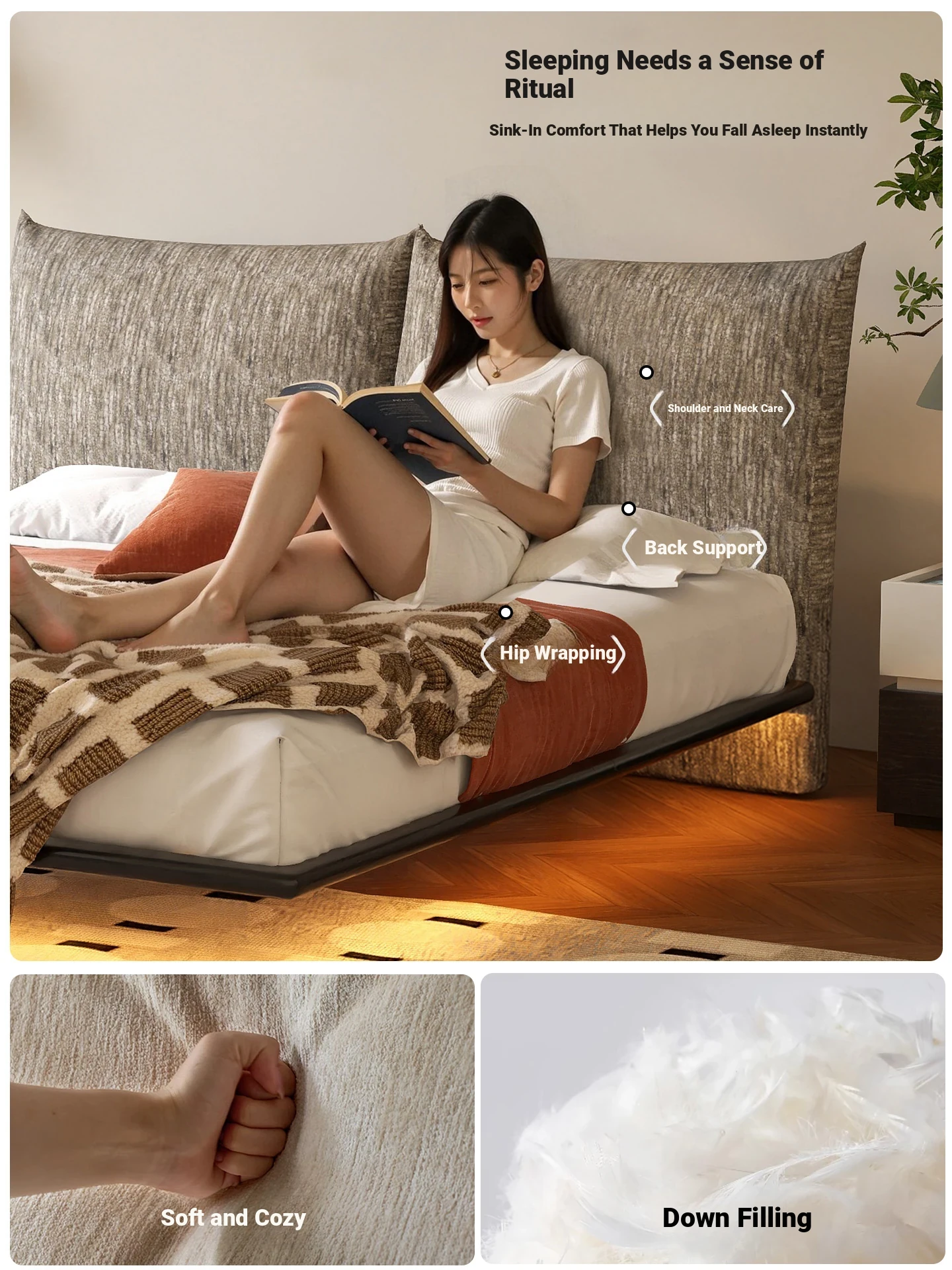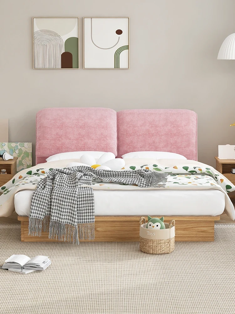 Japanese-Style Solid Ash Floating Bed – Minimalist Design for Small Spaces, Modern Master Bedroom, Soft Upholstered, Nordic Double Bed in Natural Wood Finish
