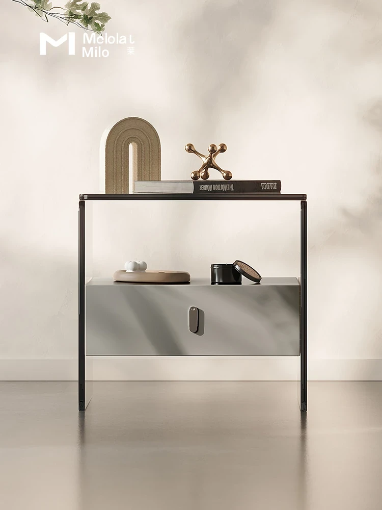 Melolat Italian Minimalist Bedside Table - Nordic Style Elegant Nightstand with Luxurious Touch, Ultra-Slim Storage Cabinet for Modern Living Spaces