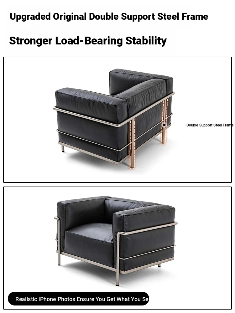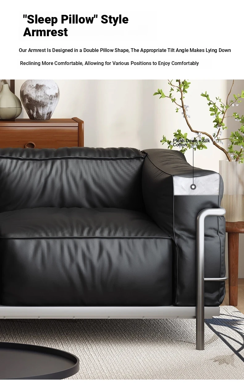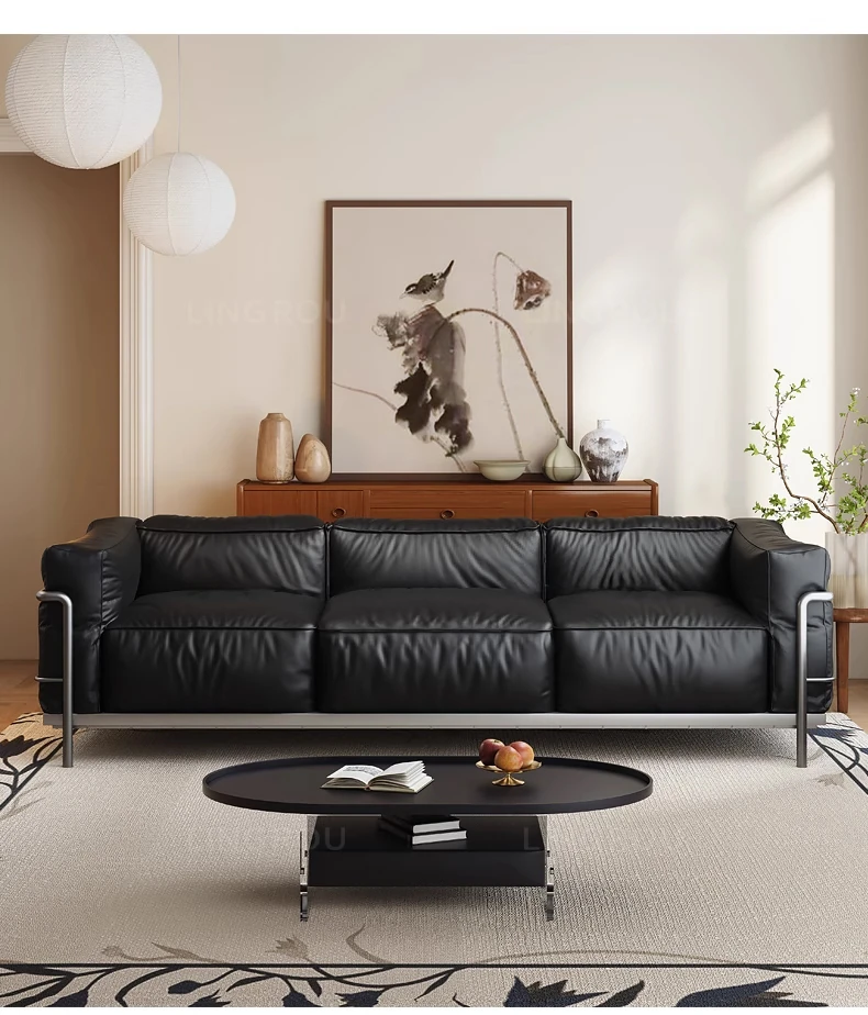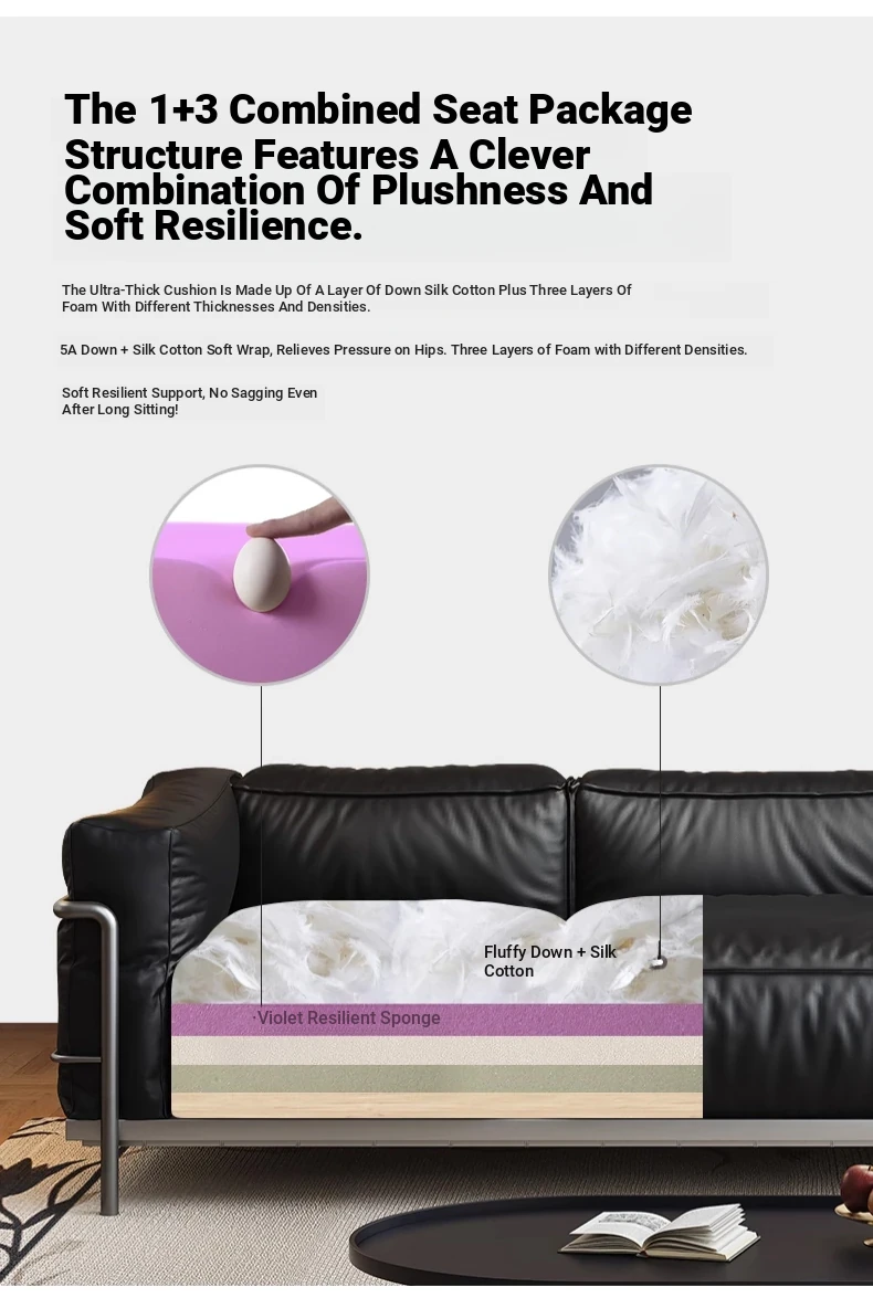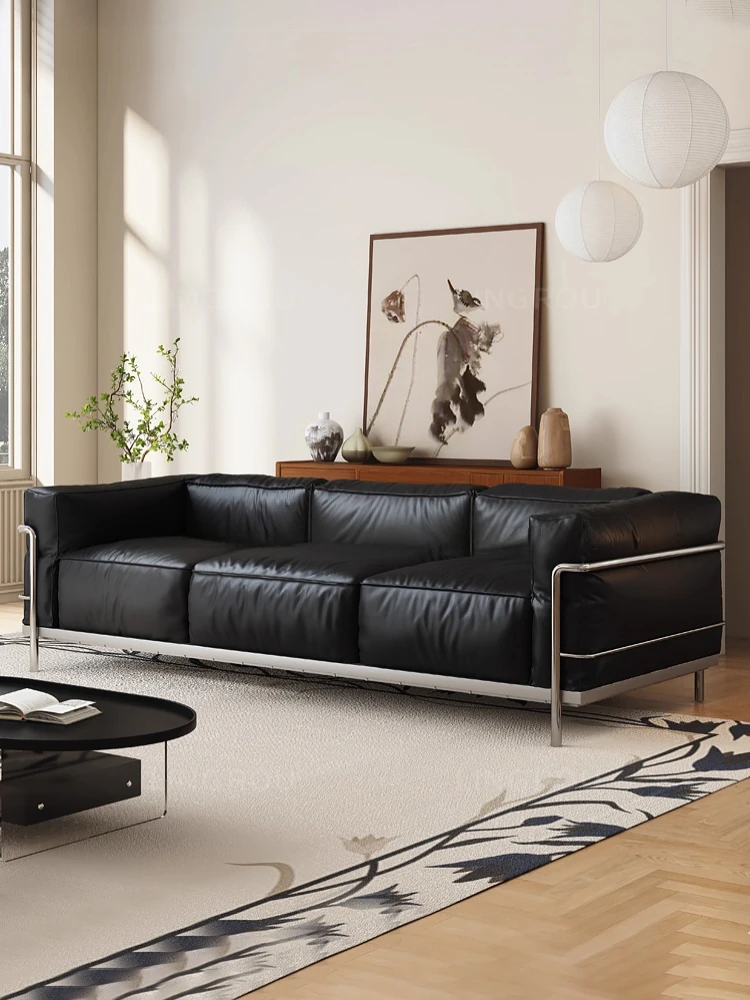 2025 New Arrival Italian Minimalist Genuine Leather Sofa - High-End, Stylish, Straight-Line Design Perfect for Small Living Rooms and Light Luxury Aesthetics