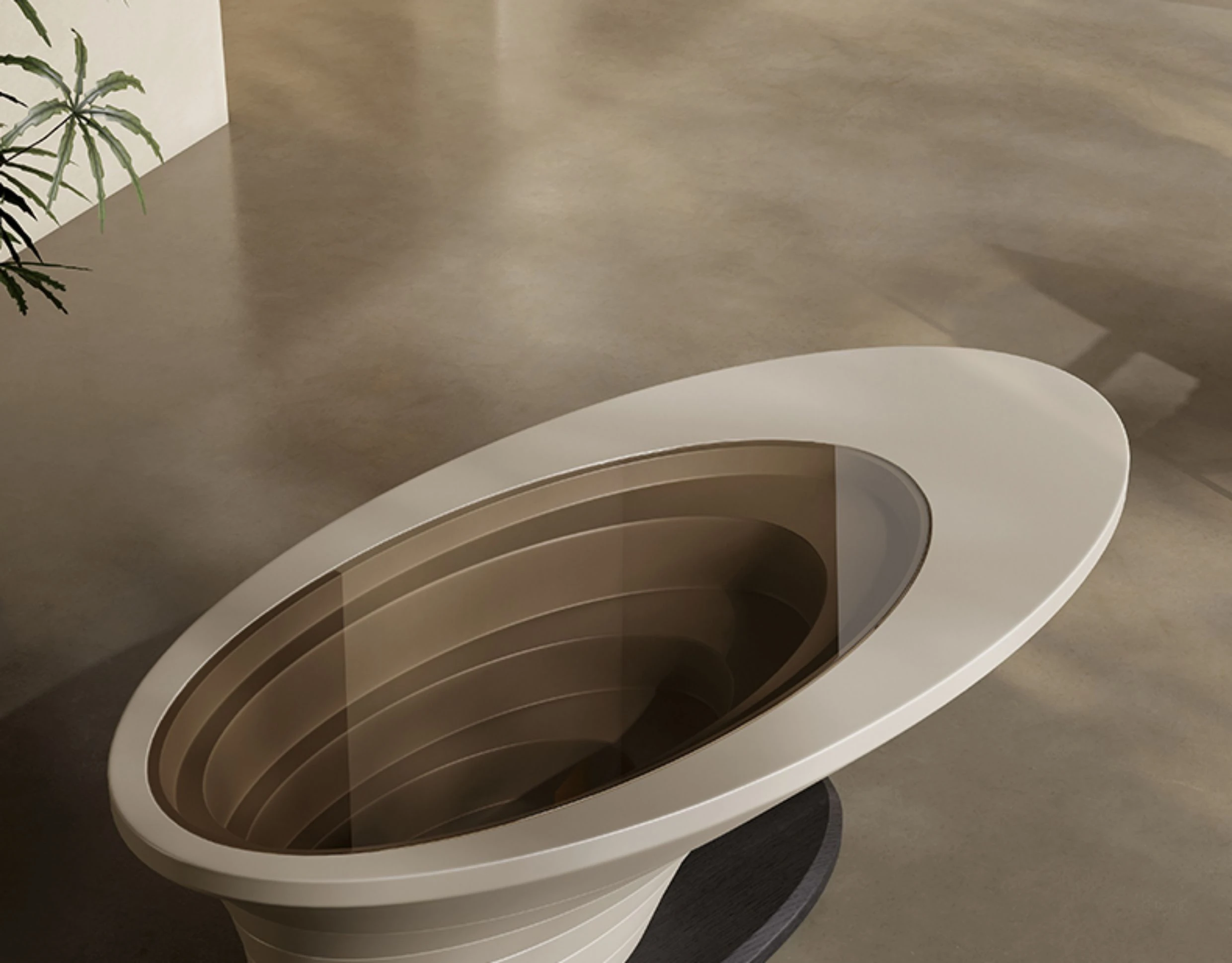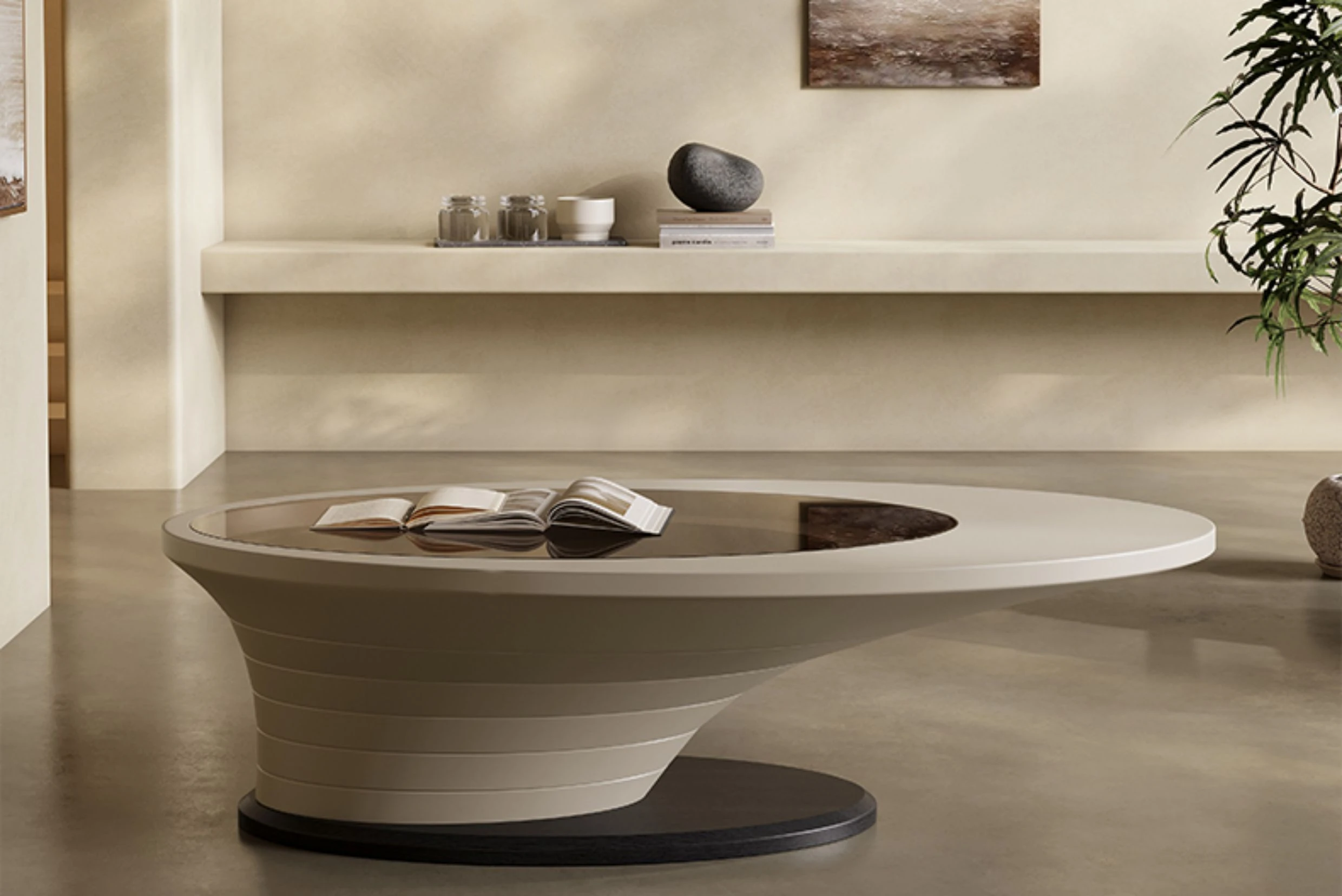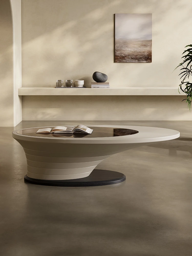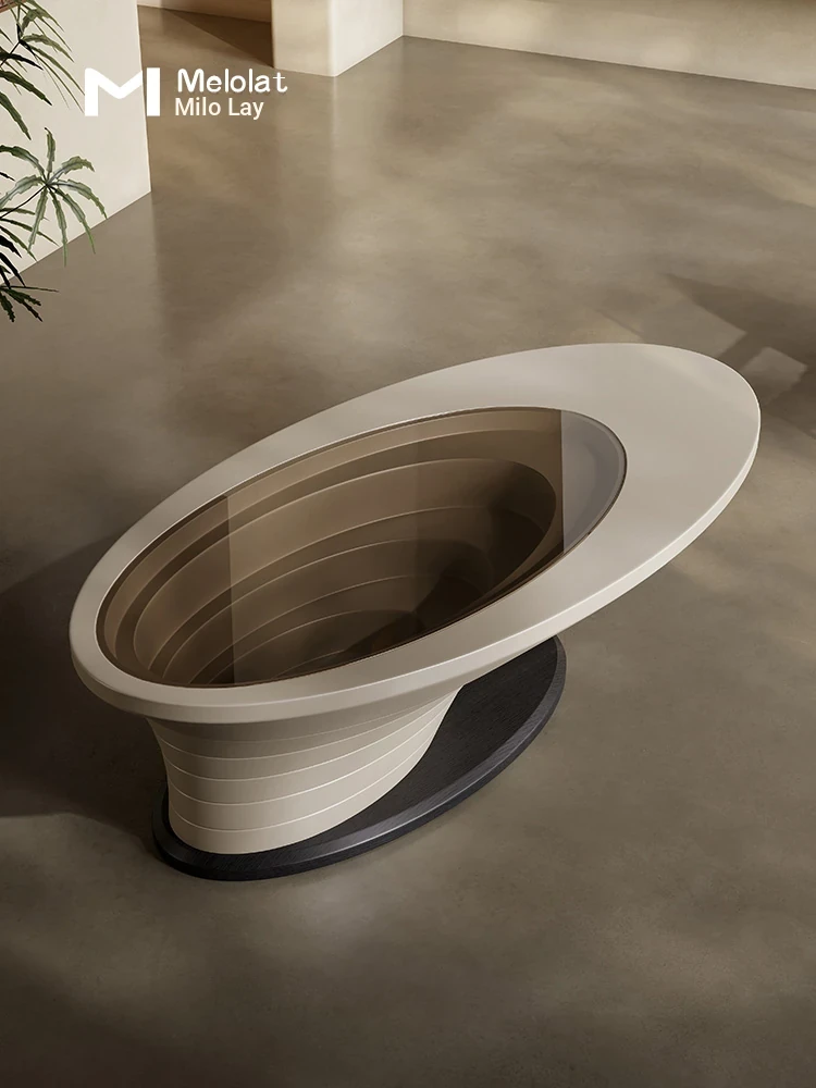 Abyss Coffee Table - Modern Minimalist Oval Glass Table for Small Spaces, Eco-Friendly Paint, Luxury Design for Living Room