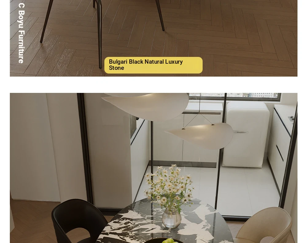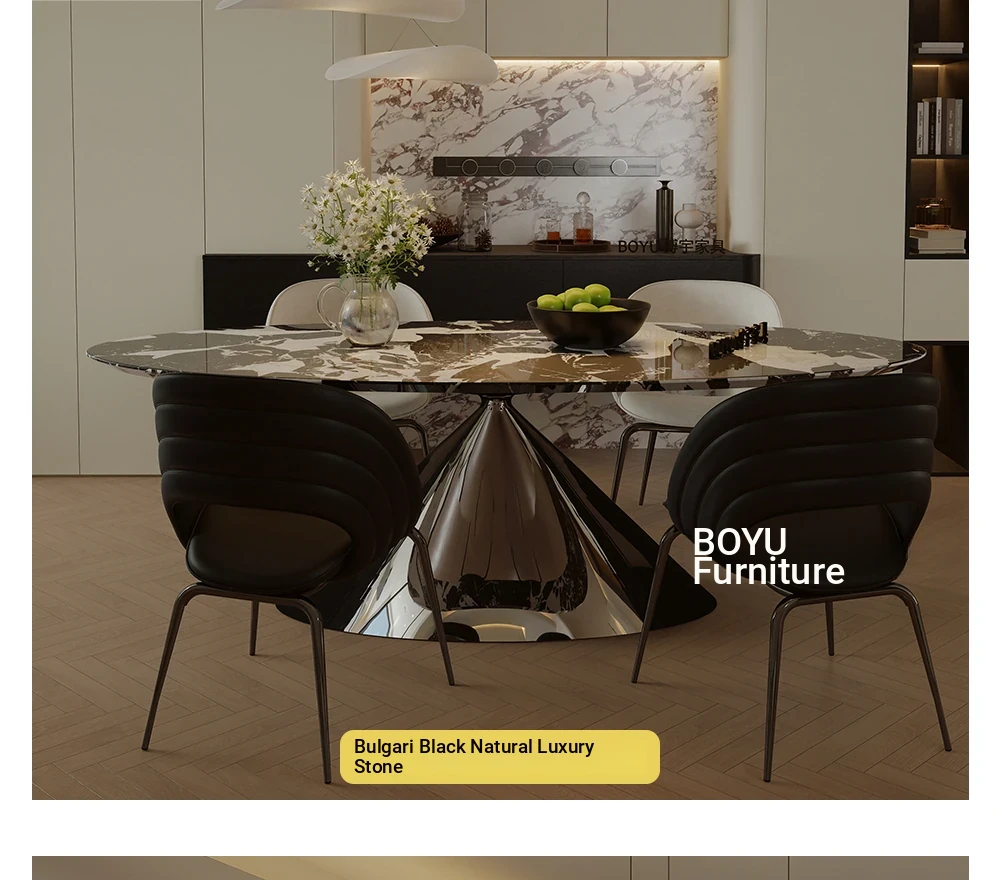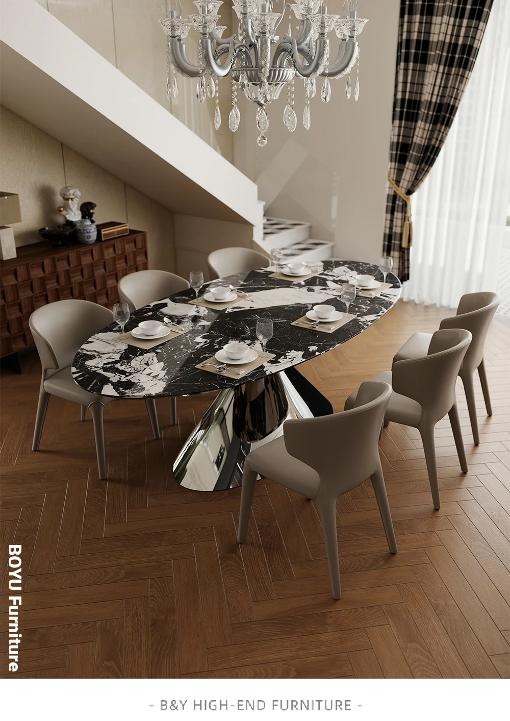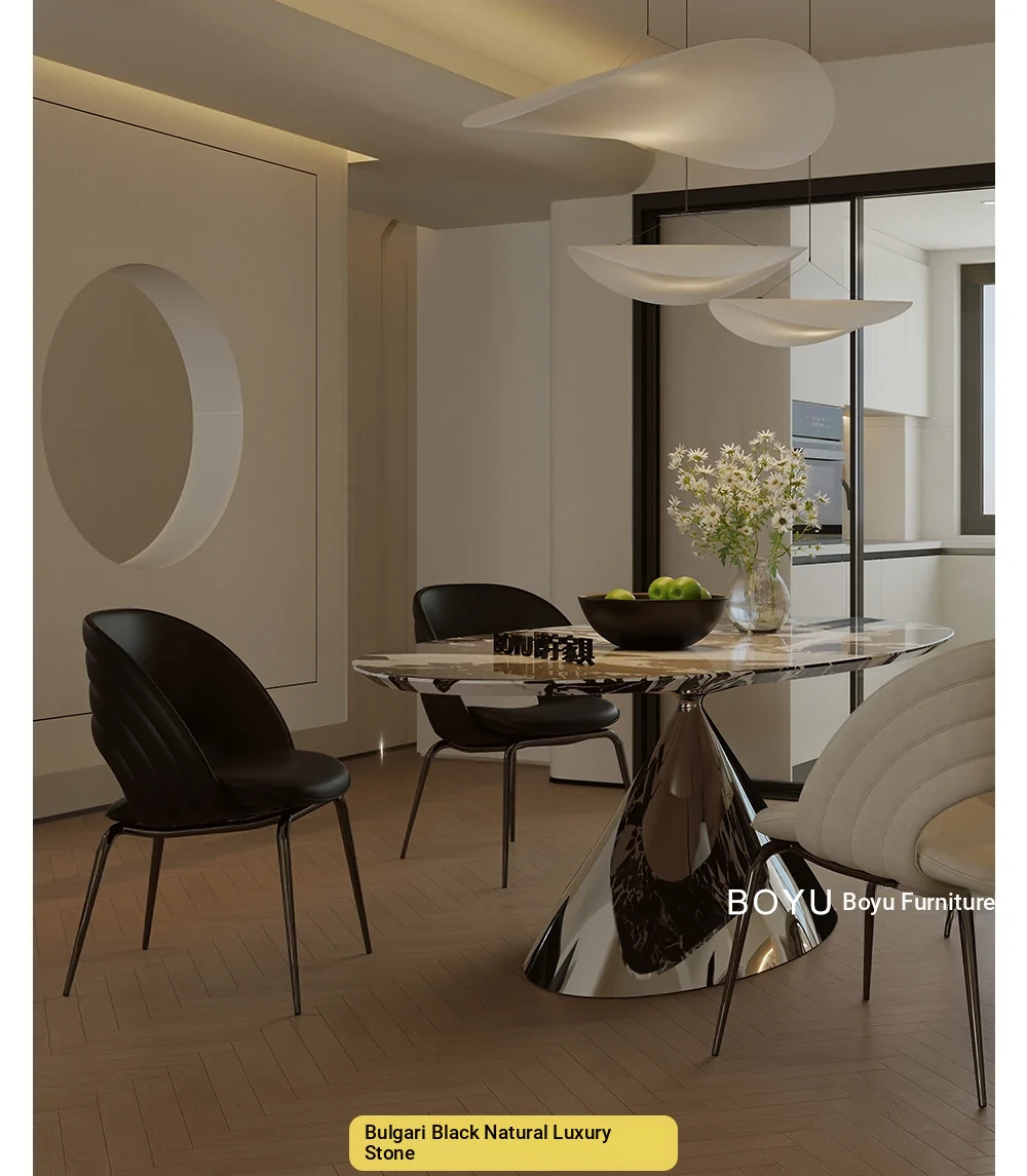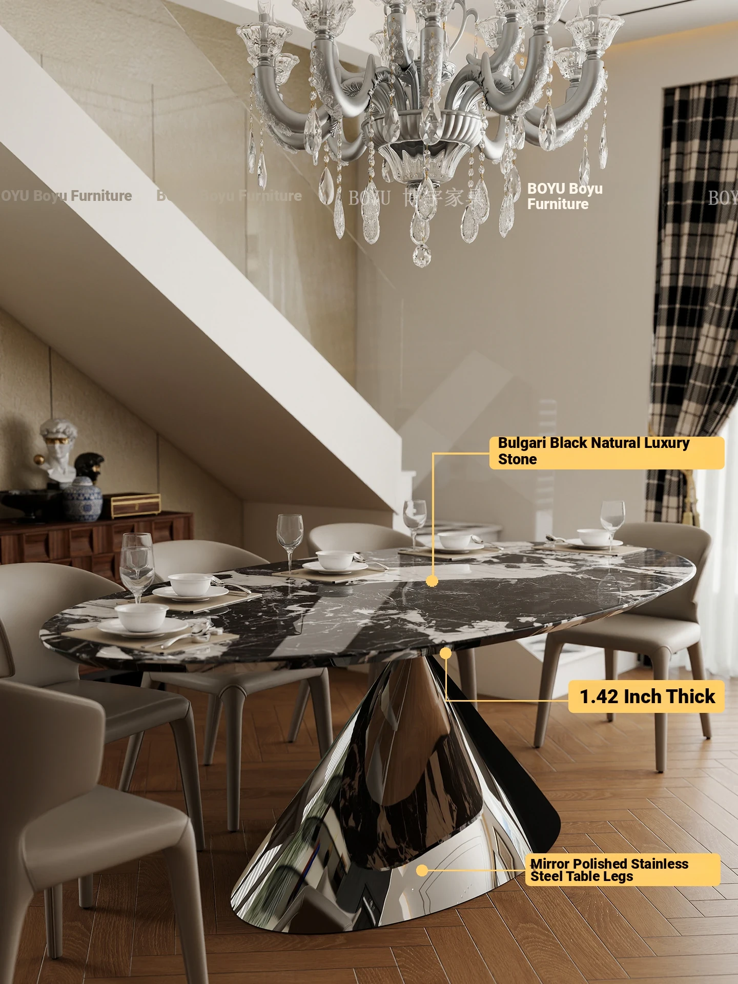 Boya Furniture / Imported Natural Luxury Stone Dining Table - Bulgari Black Italian High-End / Designer Marble Table for Elegant Dining Experience