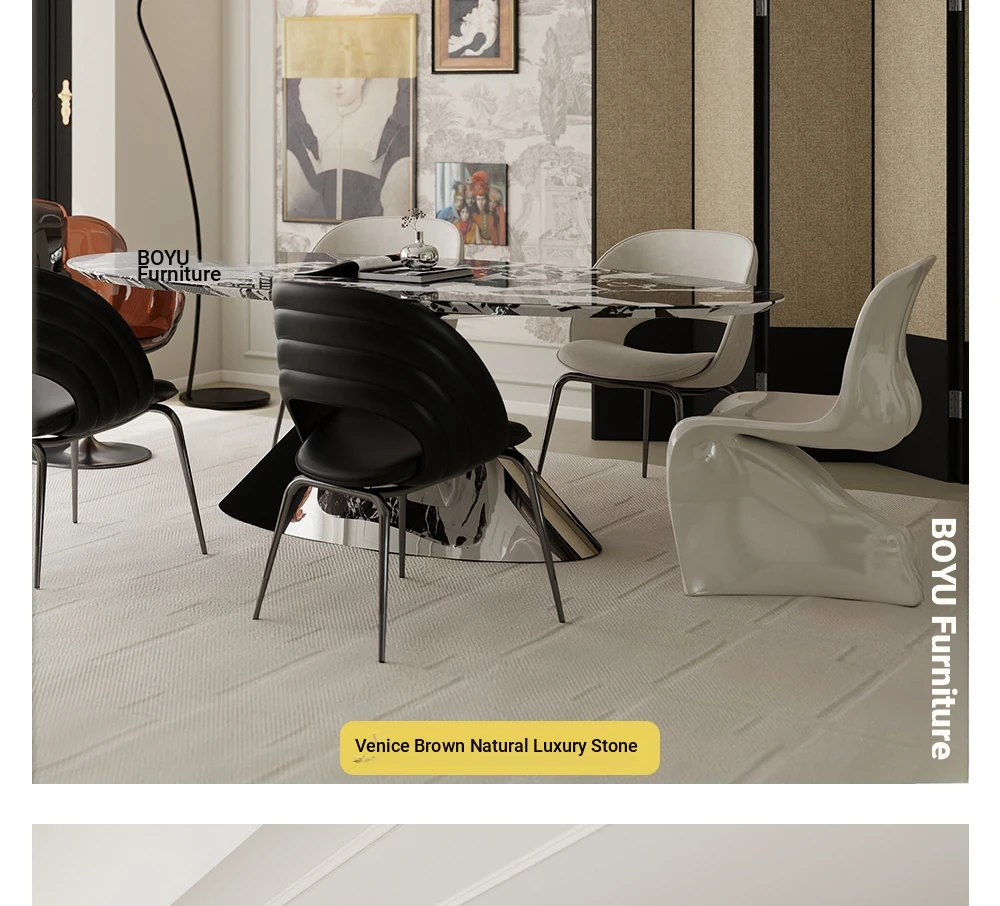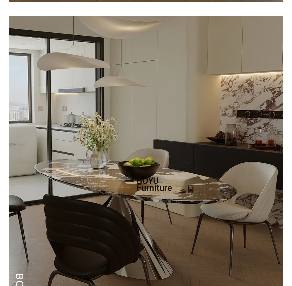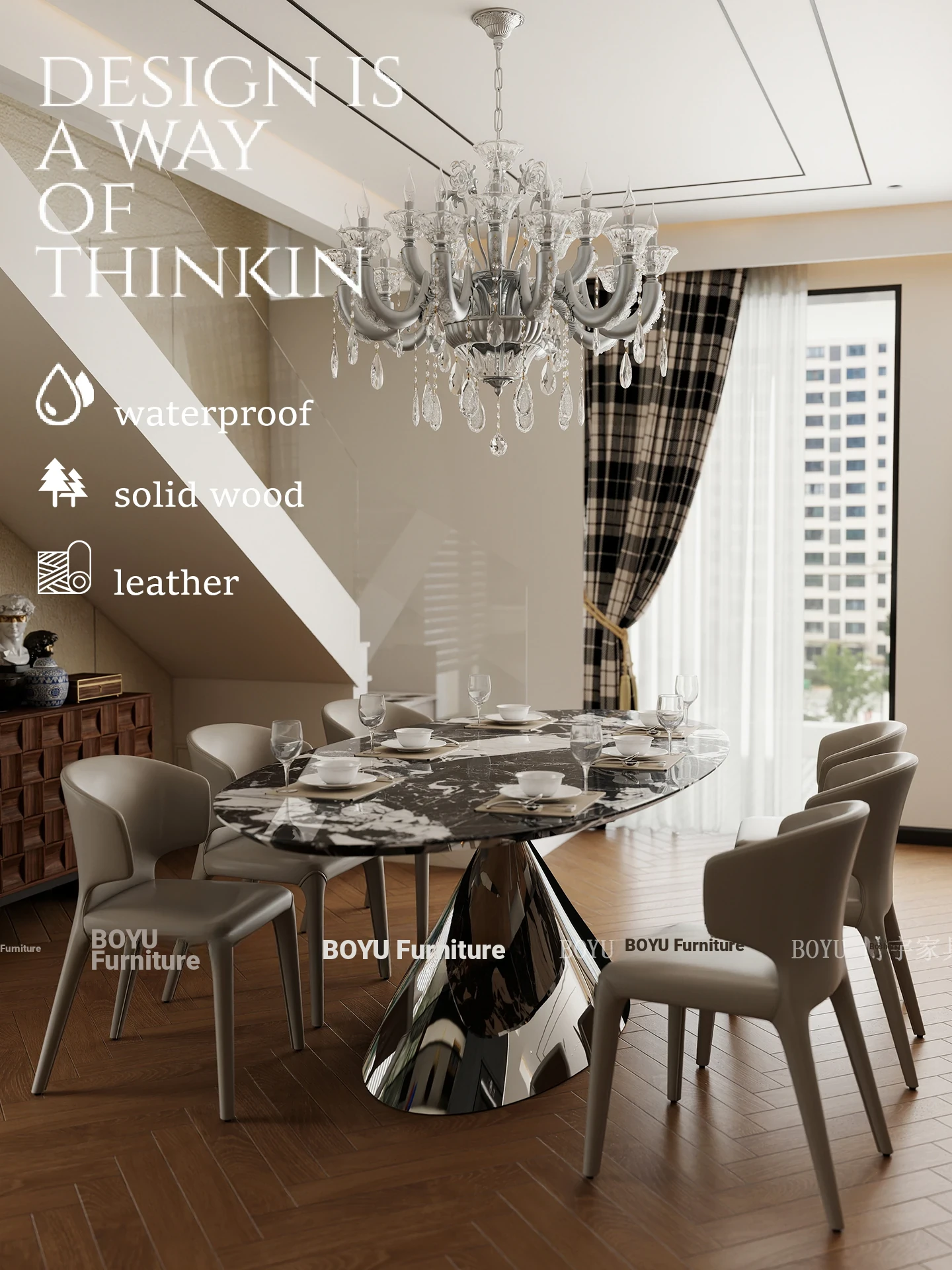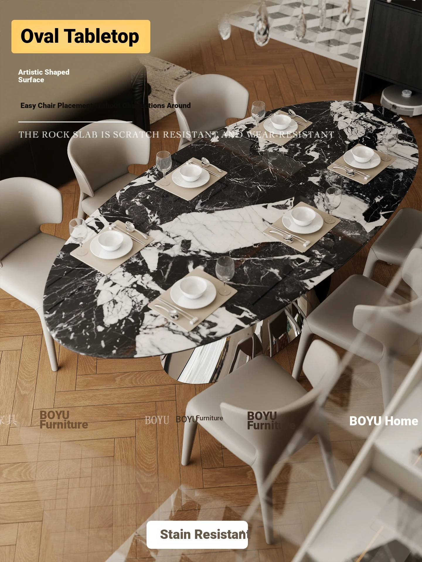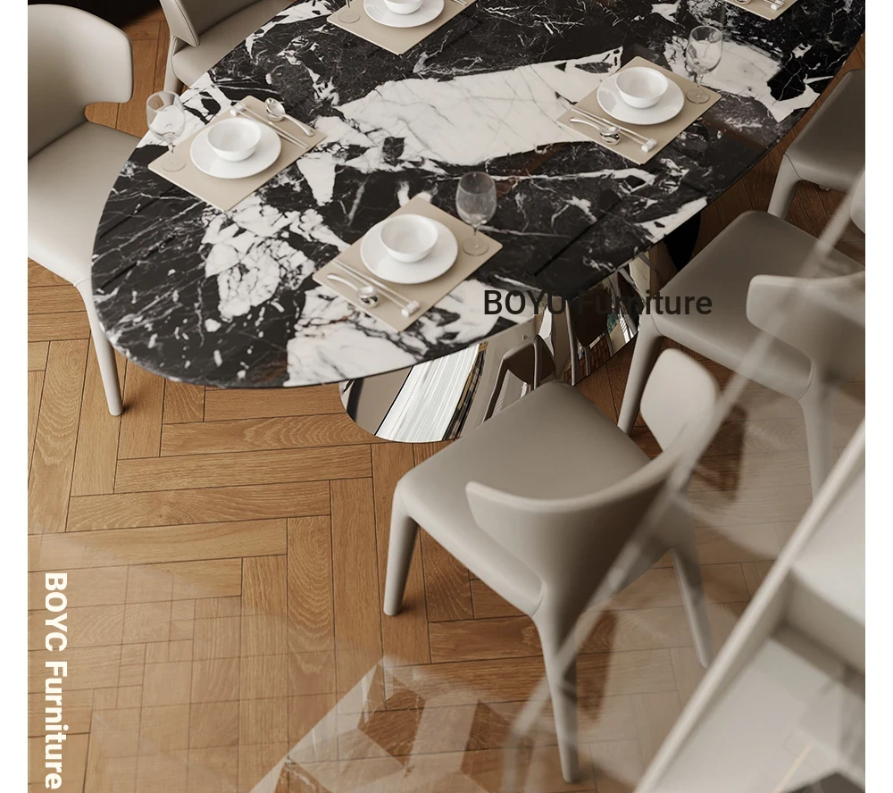 Boya Furniture / Imported Natural Luxury Stone Dining Table - Bulgari Black Italian High-End / Designer Marble Table for Elegant Dining Experience