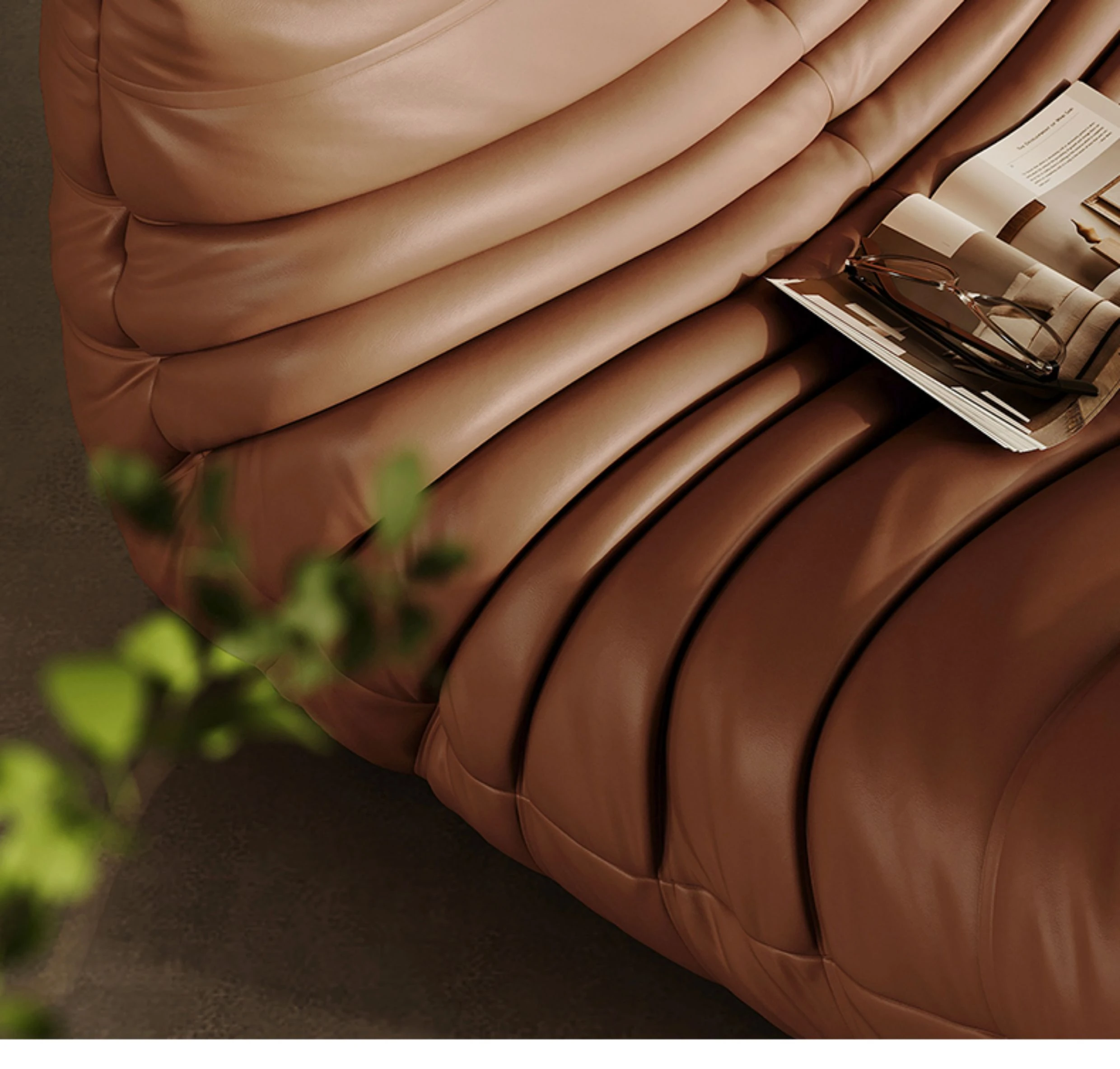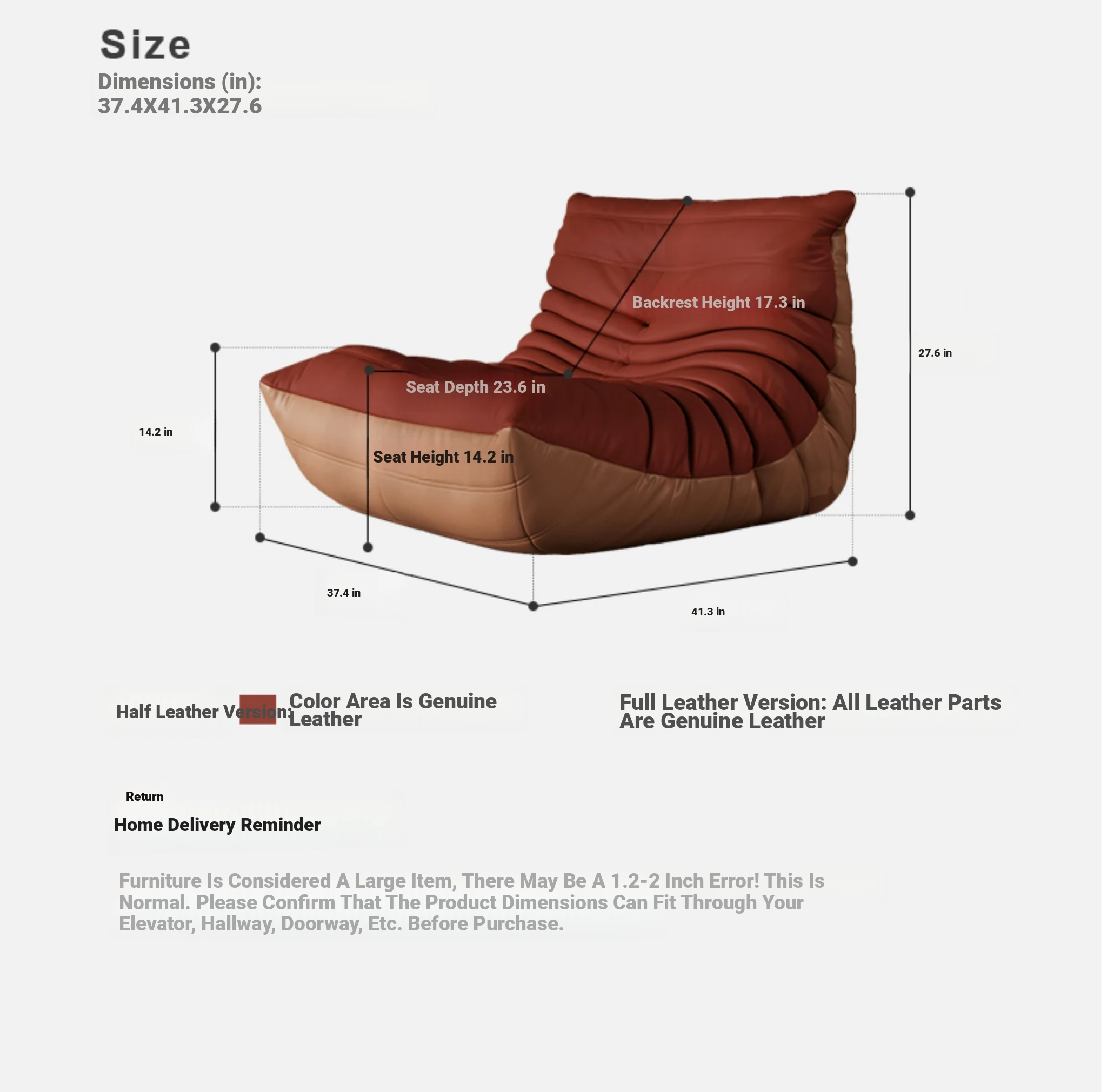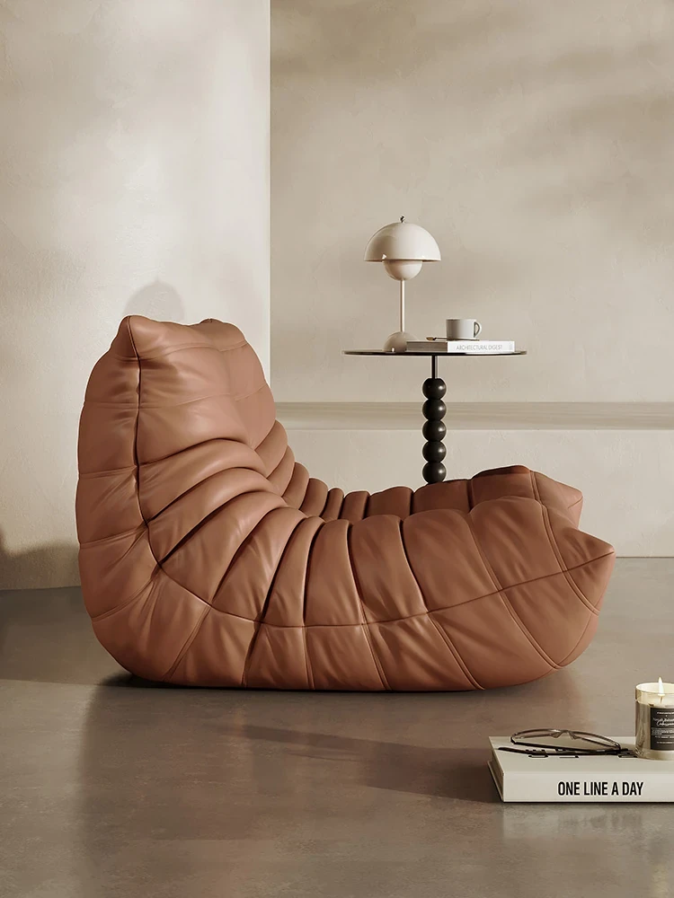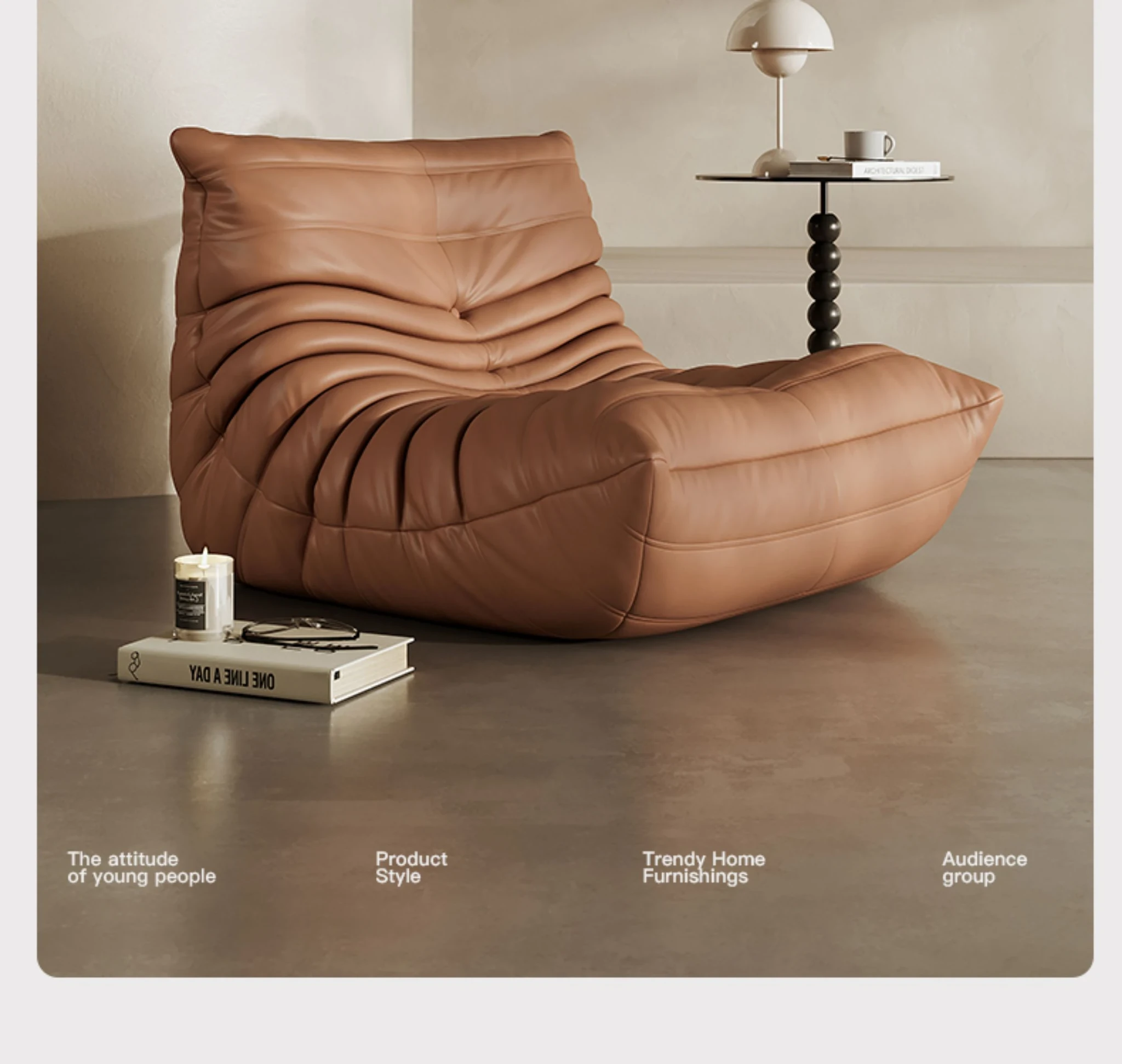 Caterpillar Genuine Leather Togo Lazy Sofa - Modern Luxury Recliner for Living Room, Perfect for Relaxing and Napping, Stylish Single Chair