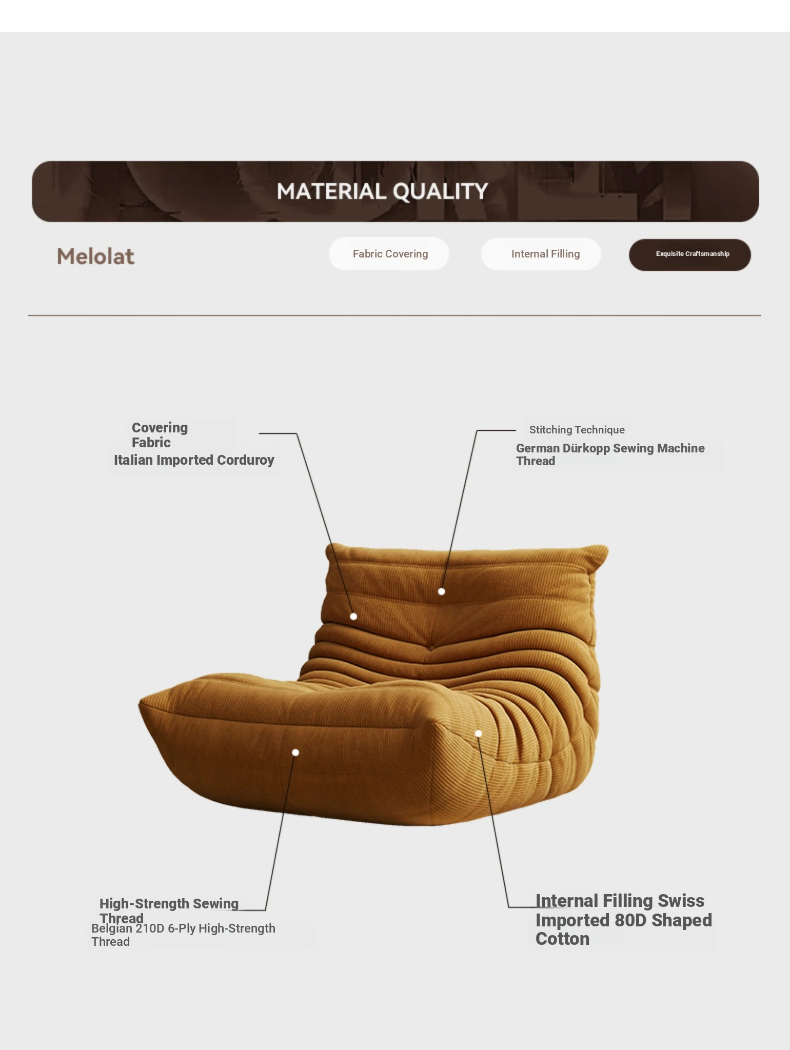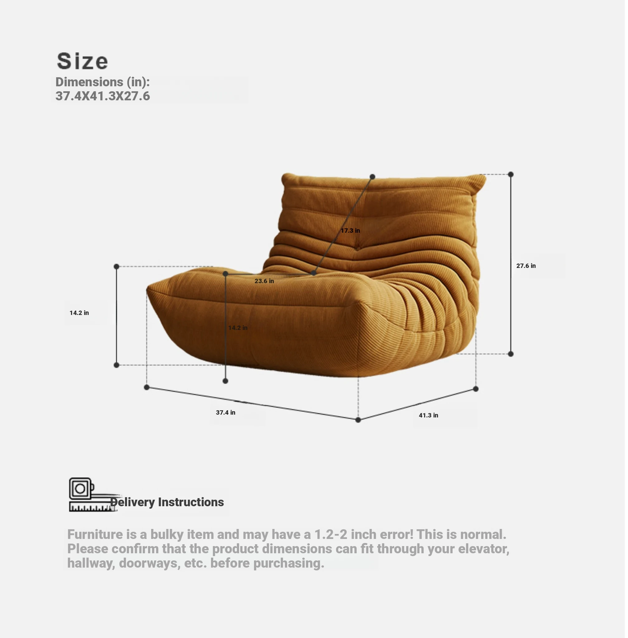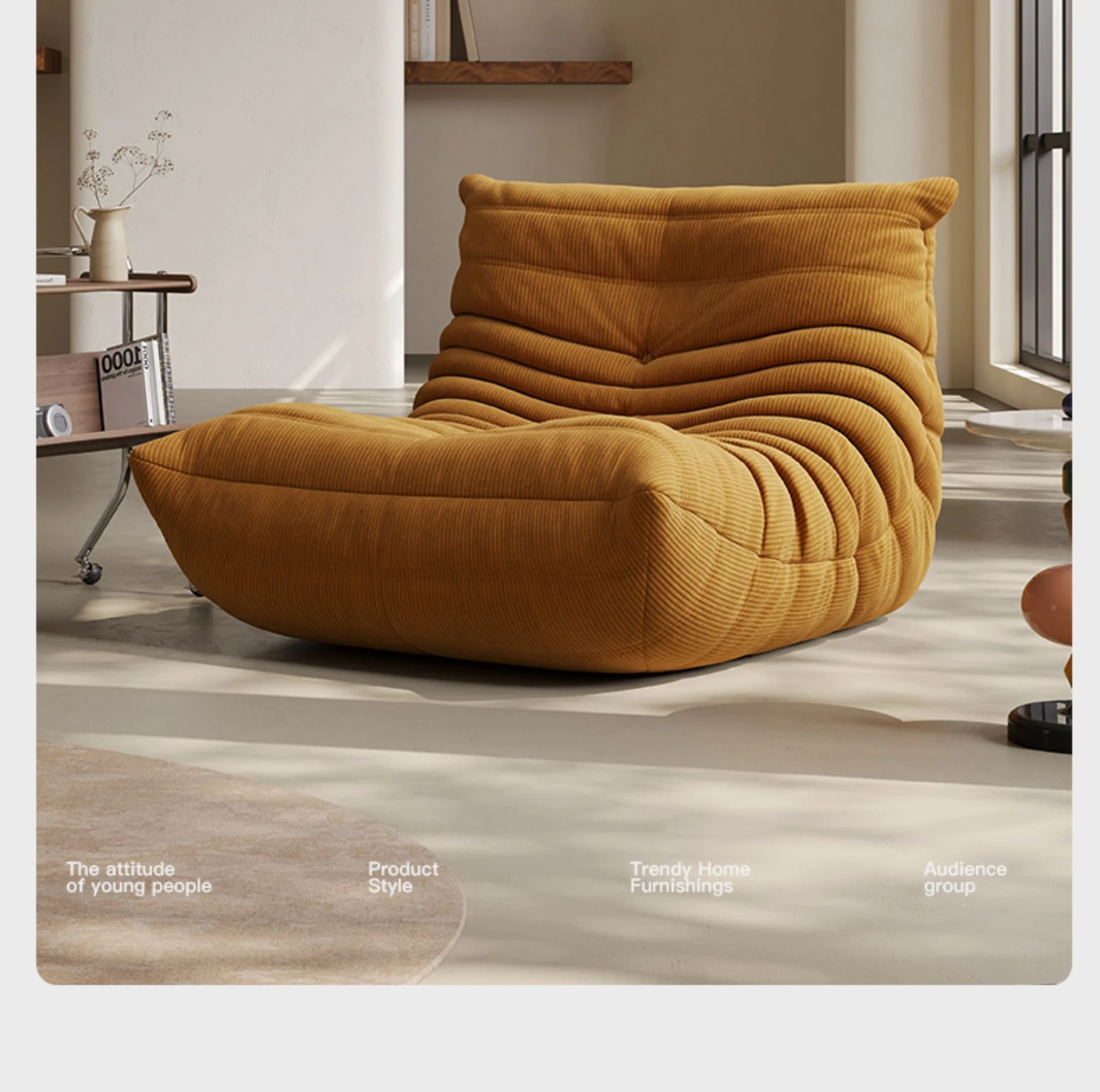 Caterpillar Togo Sofa – Modern Cream Recliner for Living Room & Balcony, Ideal for Relaxation and Lounging, Perfect for Napping – Cozy Single Chair
