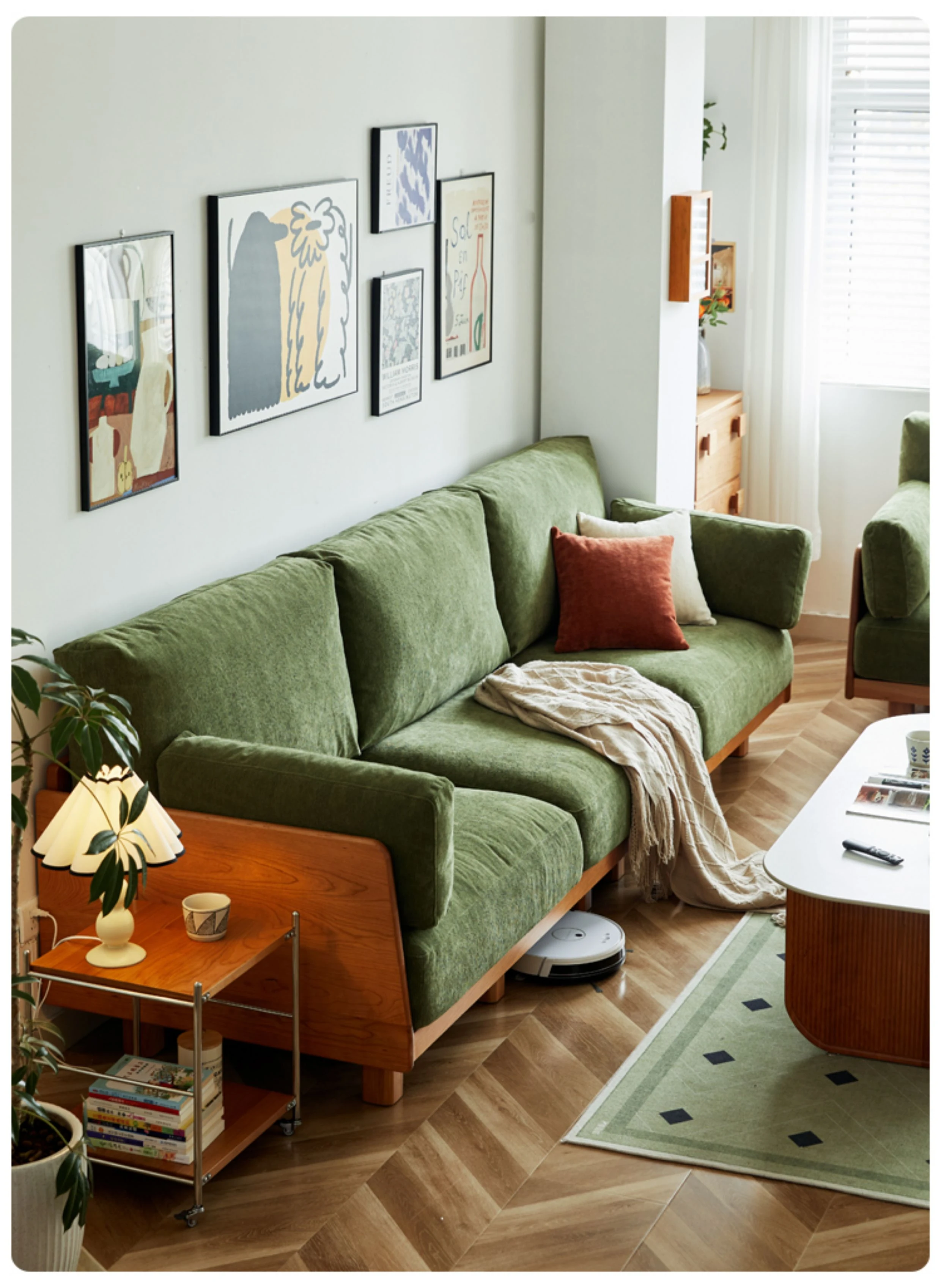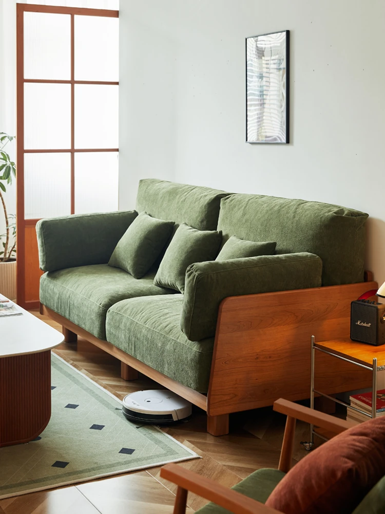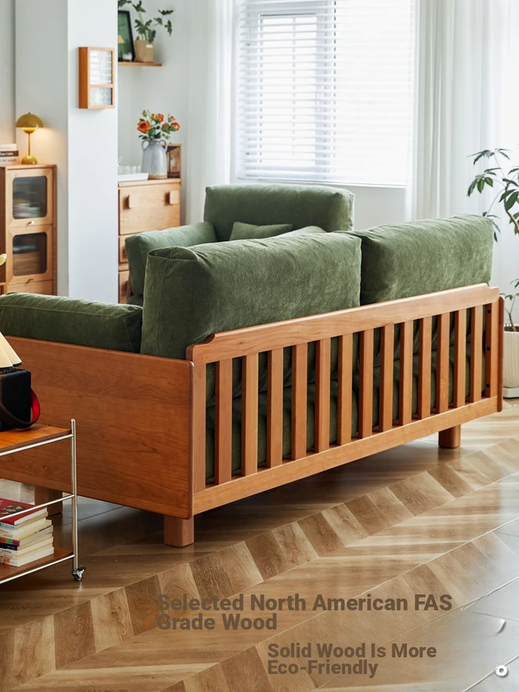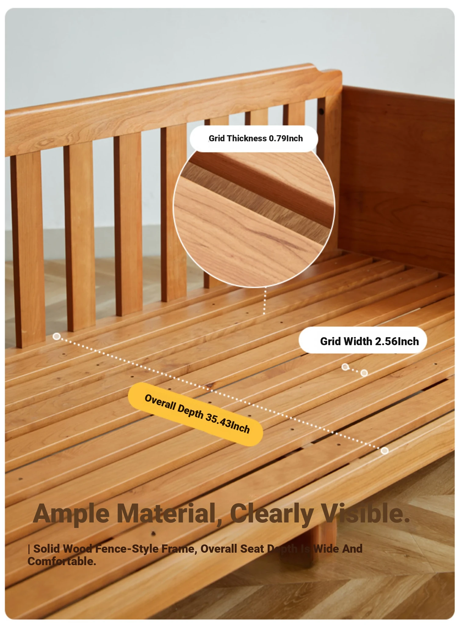Charming Cherry Wood Sofa - Solid Wood, Small Space Friendly, Cream Fabric, Perfect for Your Living Room - Elegant and Cozy Design for Single or Multi-Person Use