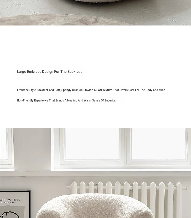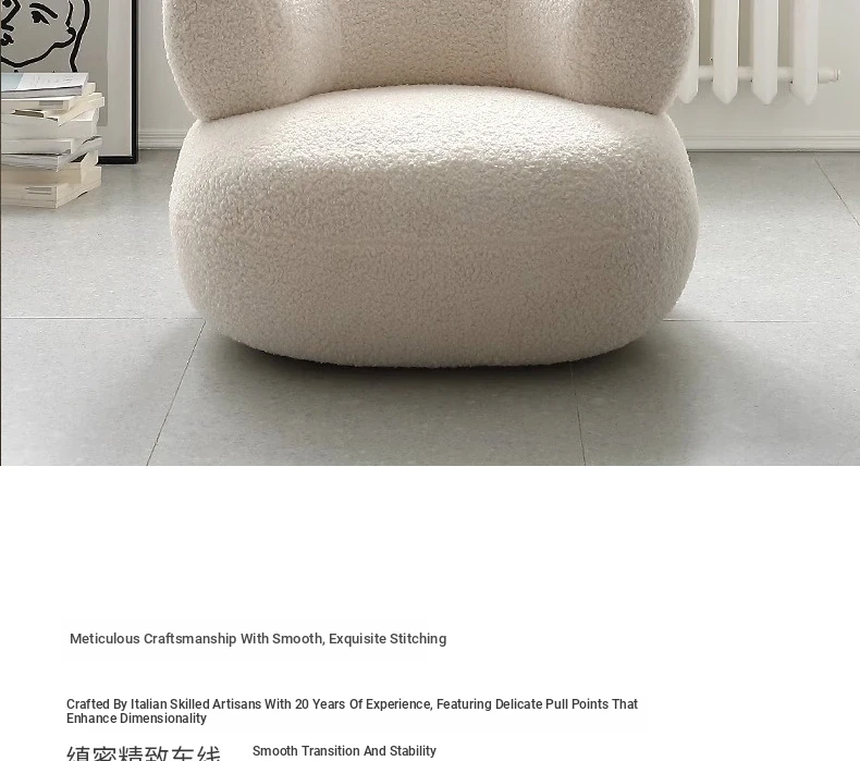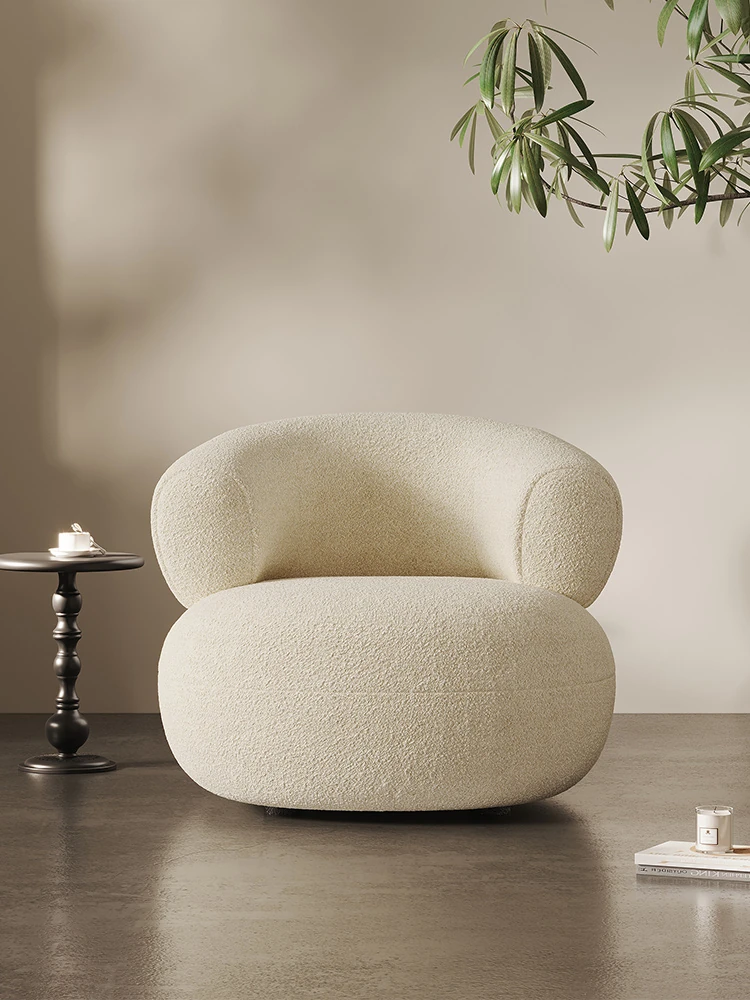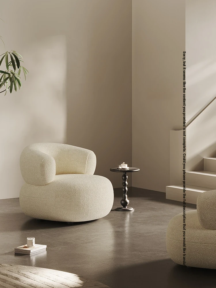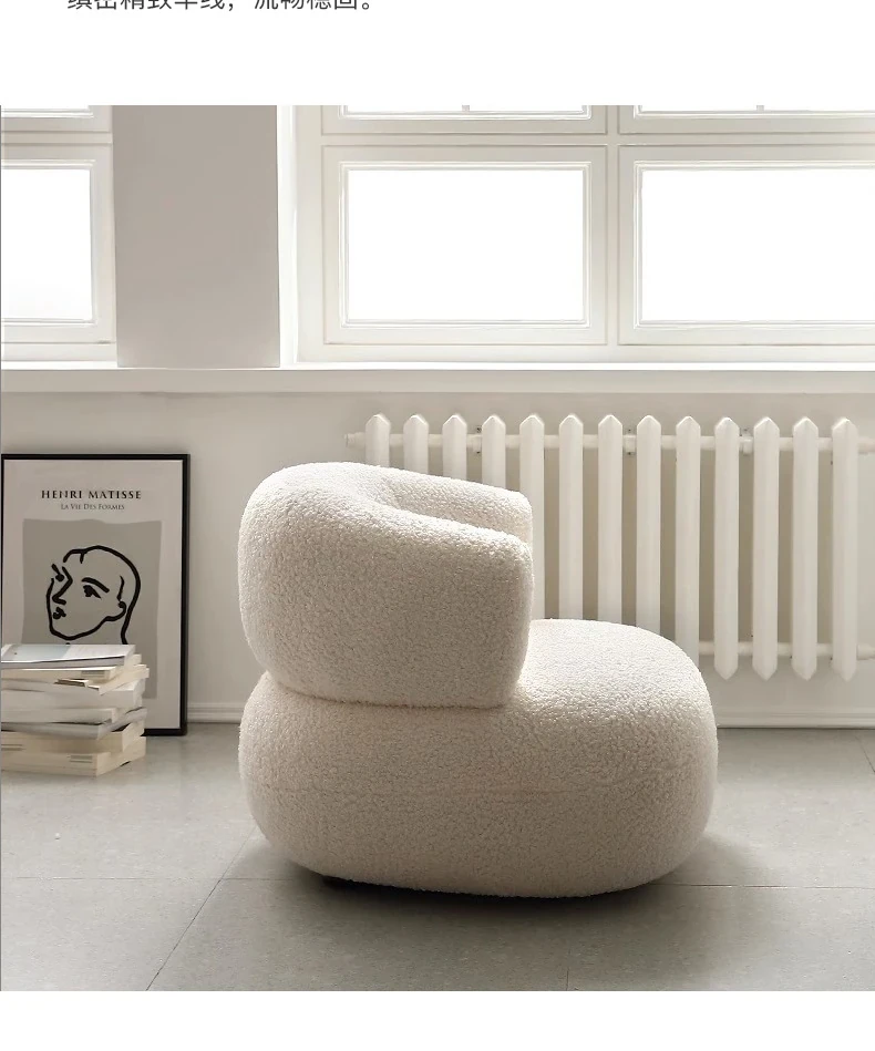 Creamy White Arc-Shaped Lambswool Single Sofa - Designer Creative U-Shaped Trendy Lambswool Small Sofa for Cozy Spaces