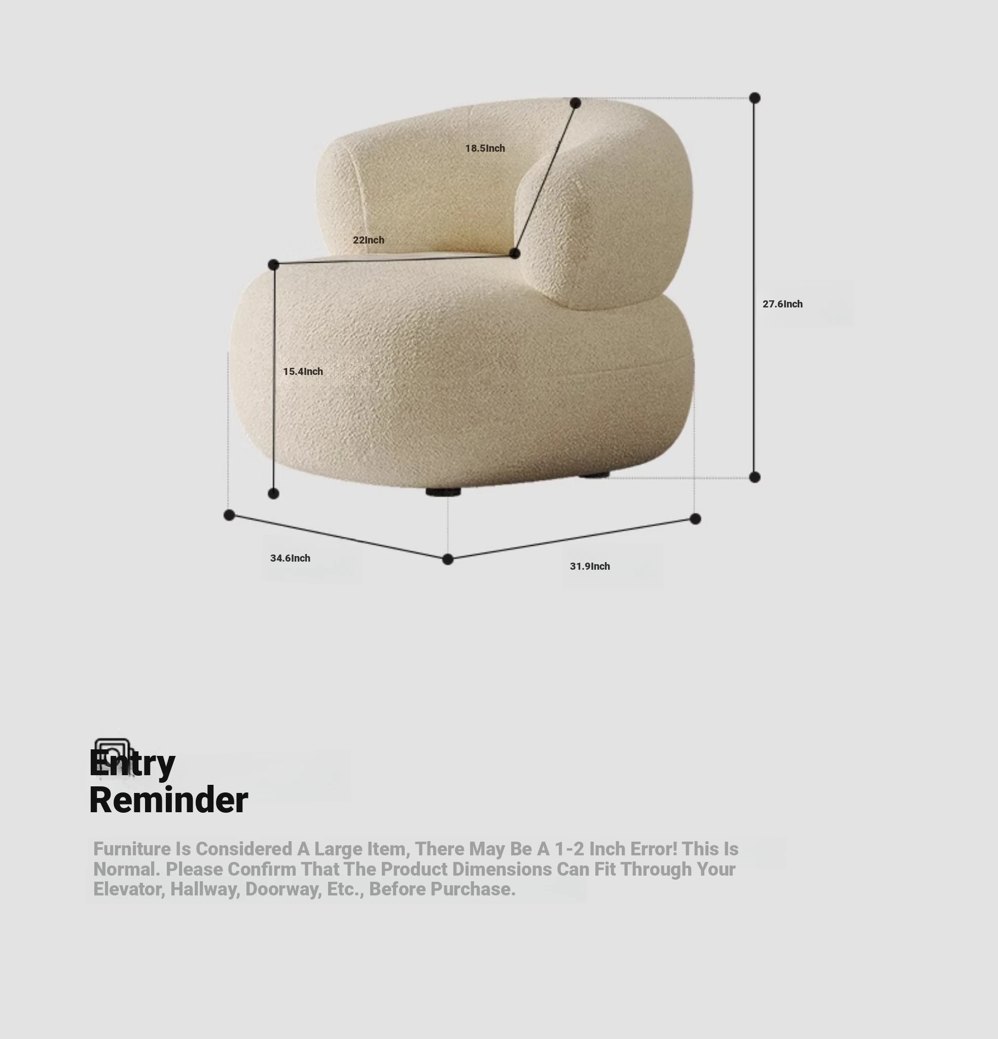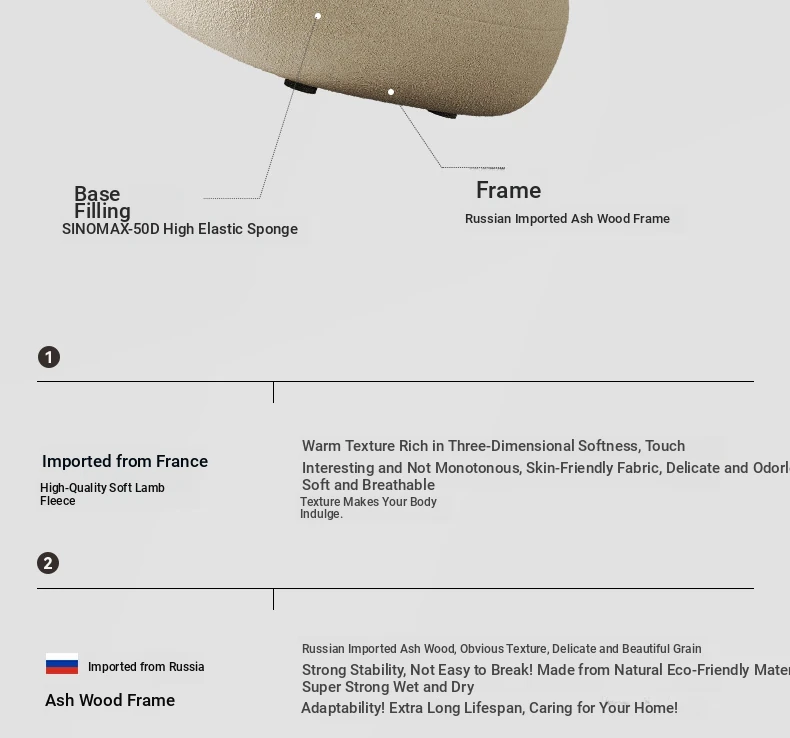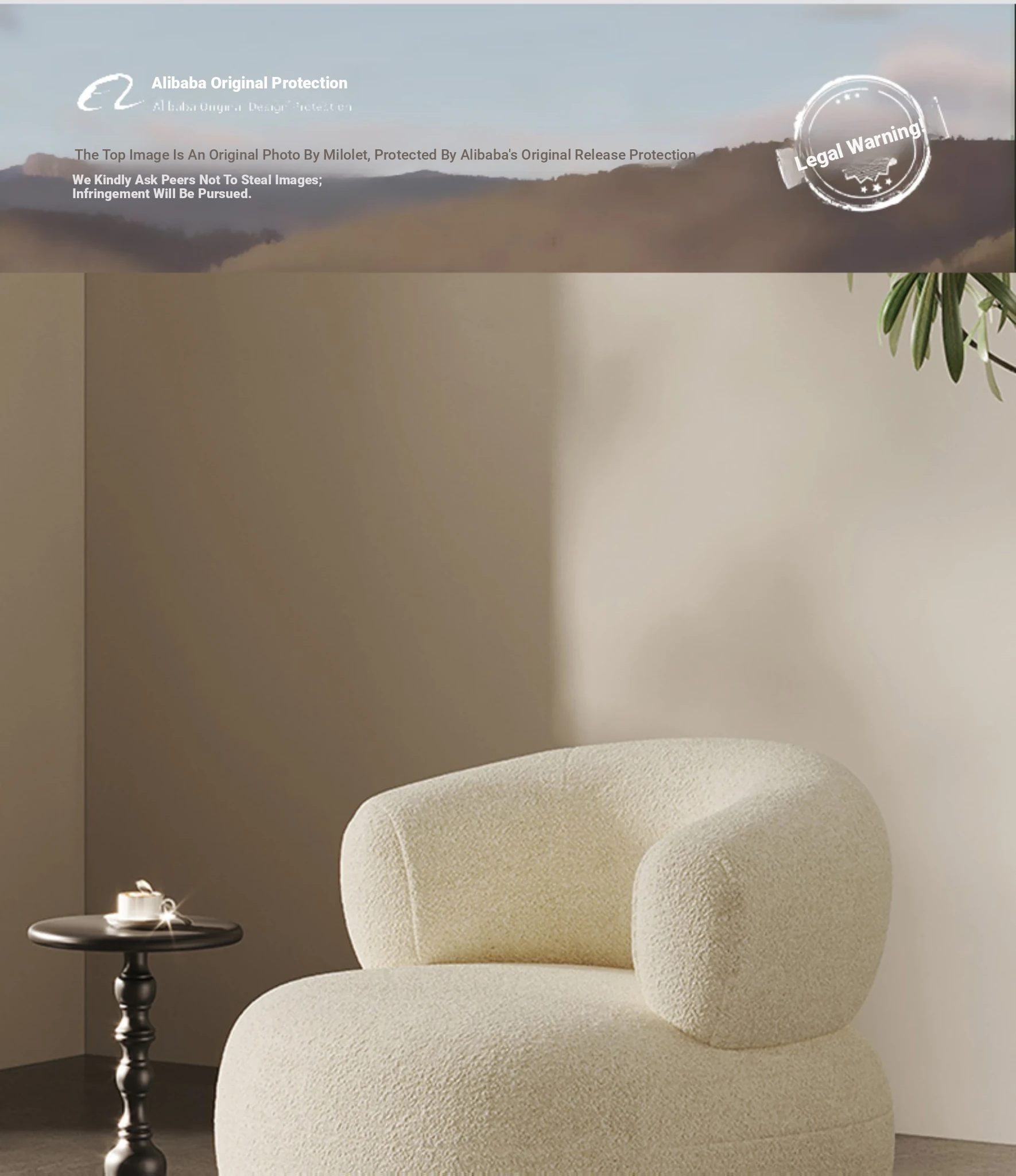 Creamy White Arc-Shaped Lambswool Single Sofa - Designer Creative U-Shaped Trendy Lambswool Small Sofa for Cozy Spaces
