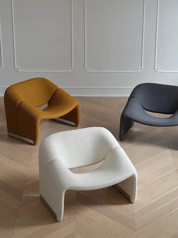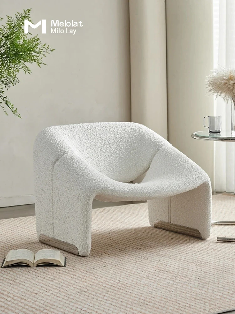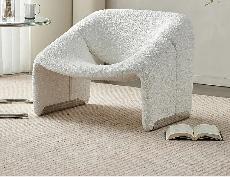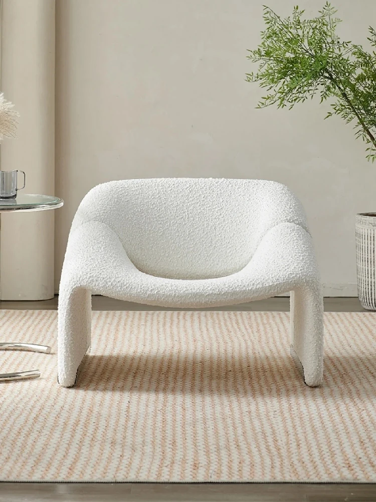 Creative Designer's Smiling Single Sofa Chair - Cozy Lambswool Lounge Chair for Living Room and Balcony, Unique Shape, Perfect for Relaxation
