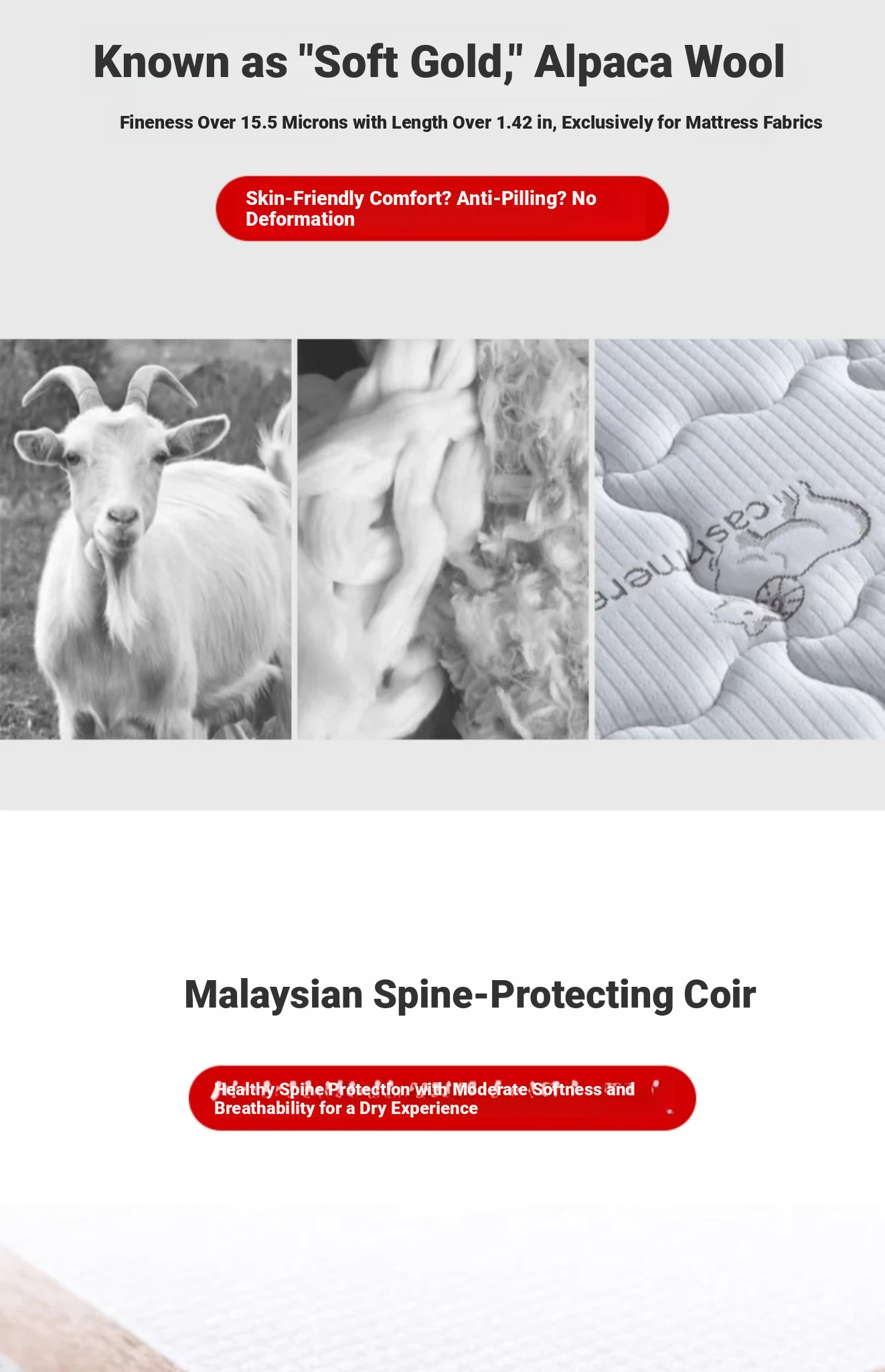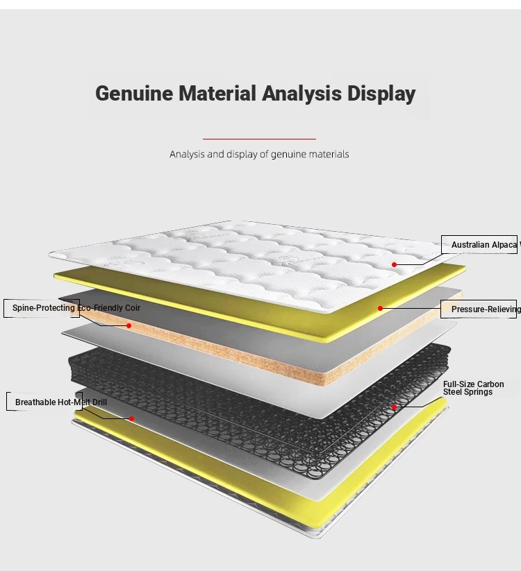 Eco-Friendly Coconut Coir Mattress with Cashmere Protection – 1.5m & 1.8m Sizes, Complete Pocket Spring Design for Ultimate Comfort and Support