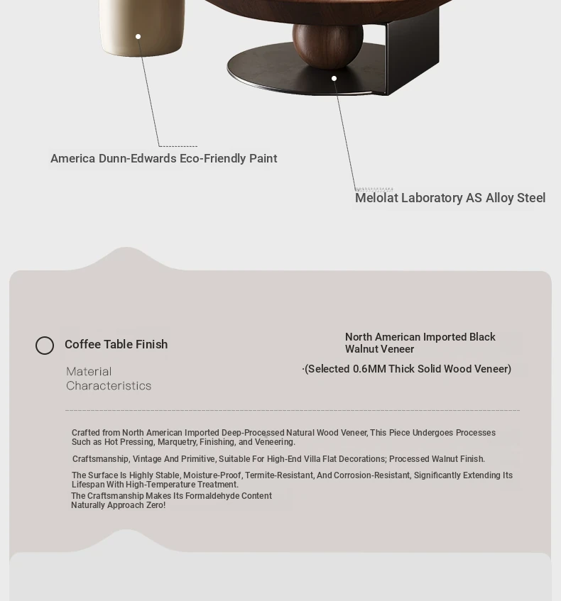 【Limited Stock】35.43in Coffee Table 【North American Imported Black Walnut Veneer + Melolat Laboratory as Alloy Steel】