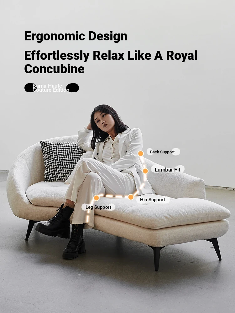 Elegant Luxury Chaise Lounge - Perfect for Villas and Spacious Bedrooms, Minimalist Design for Relaxing Afternoon Naps, Upholstered Curved Sofa for Ultimate Comfort