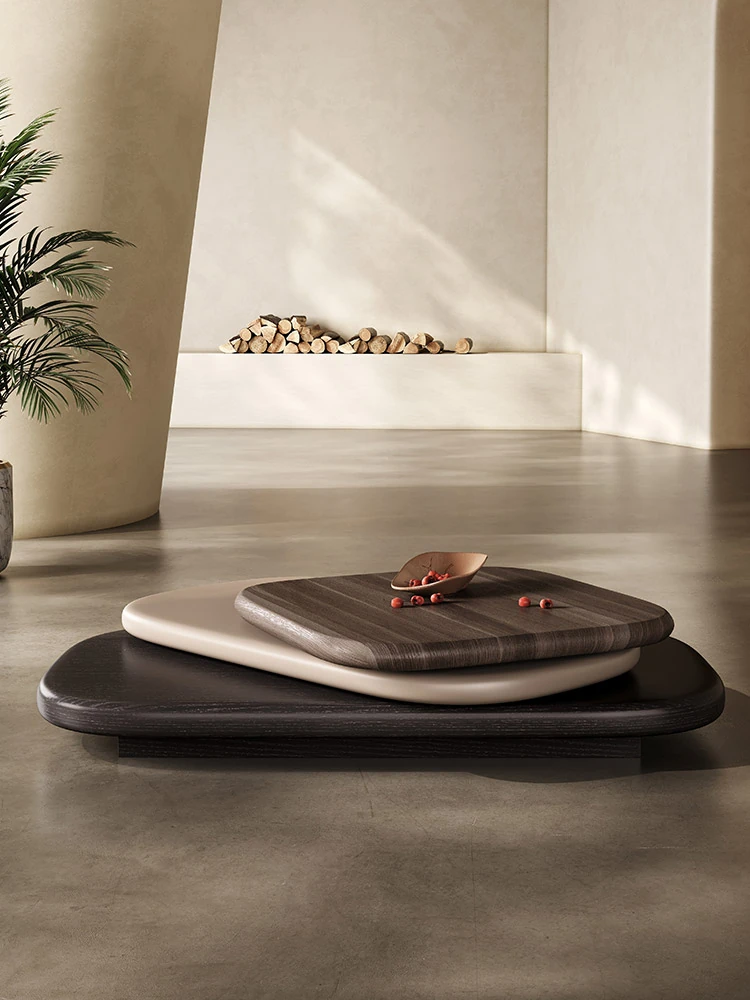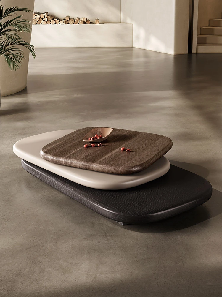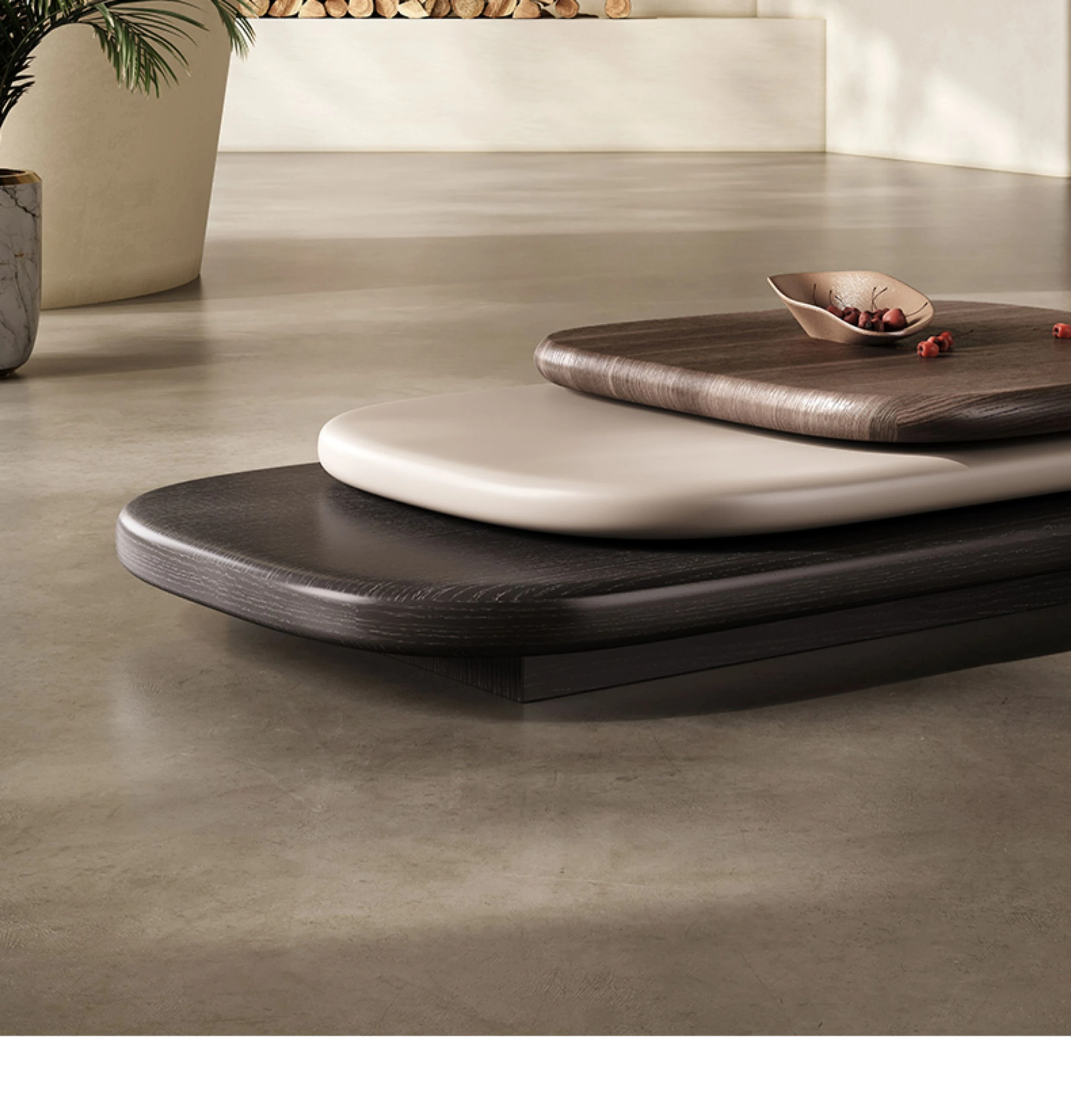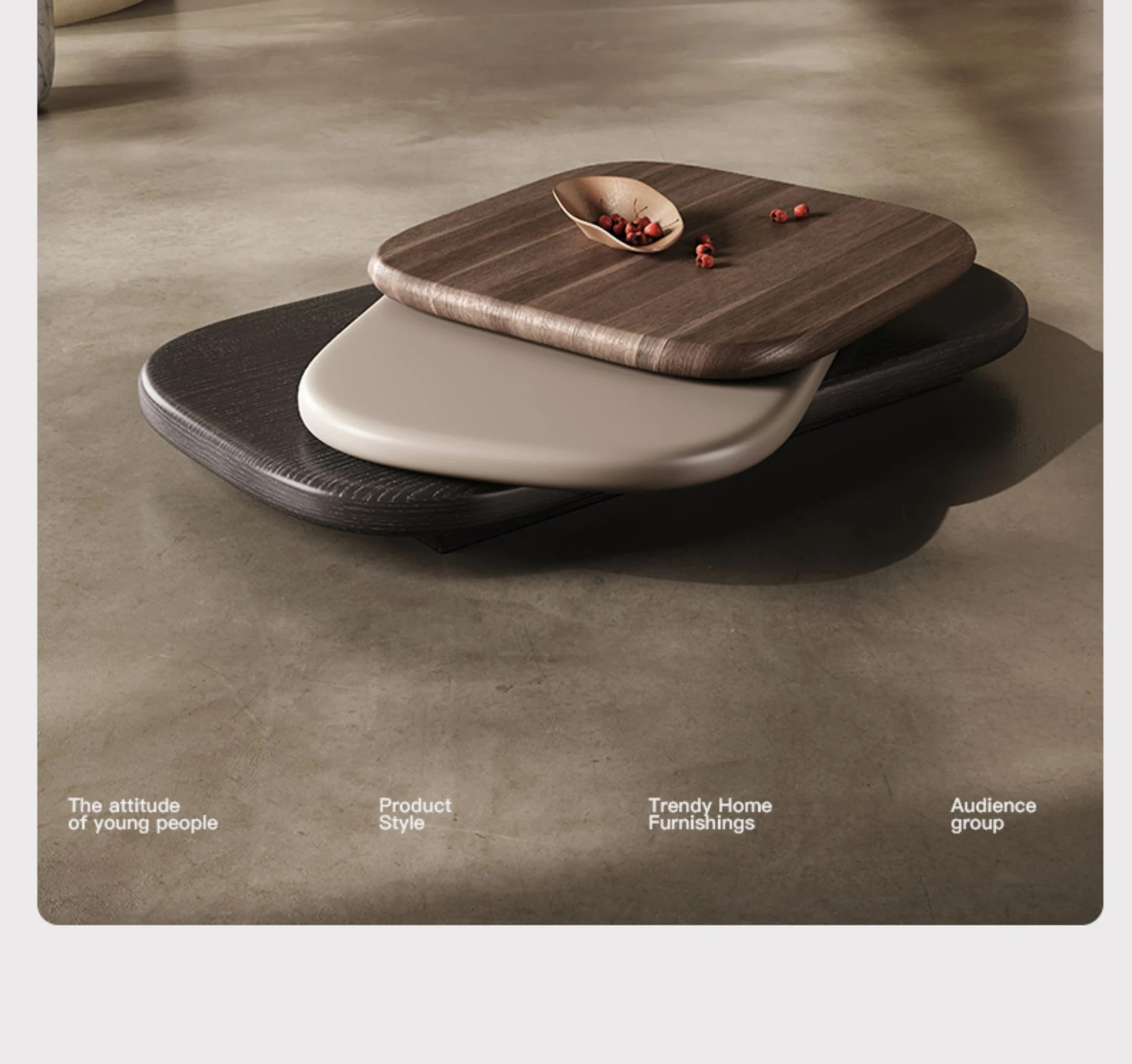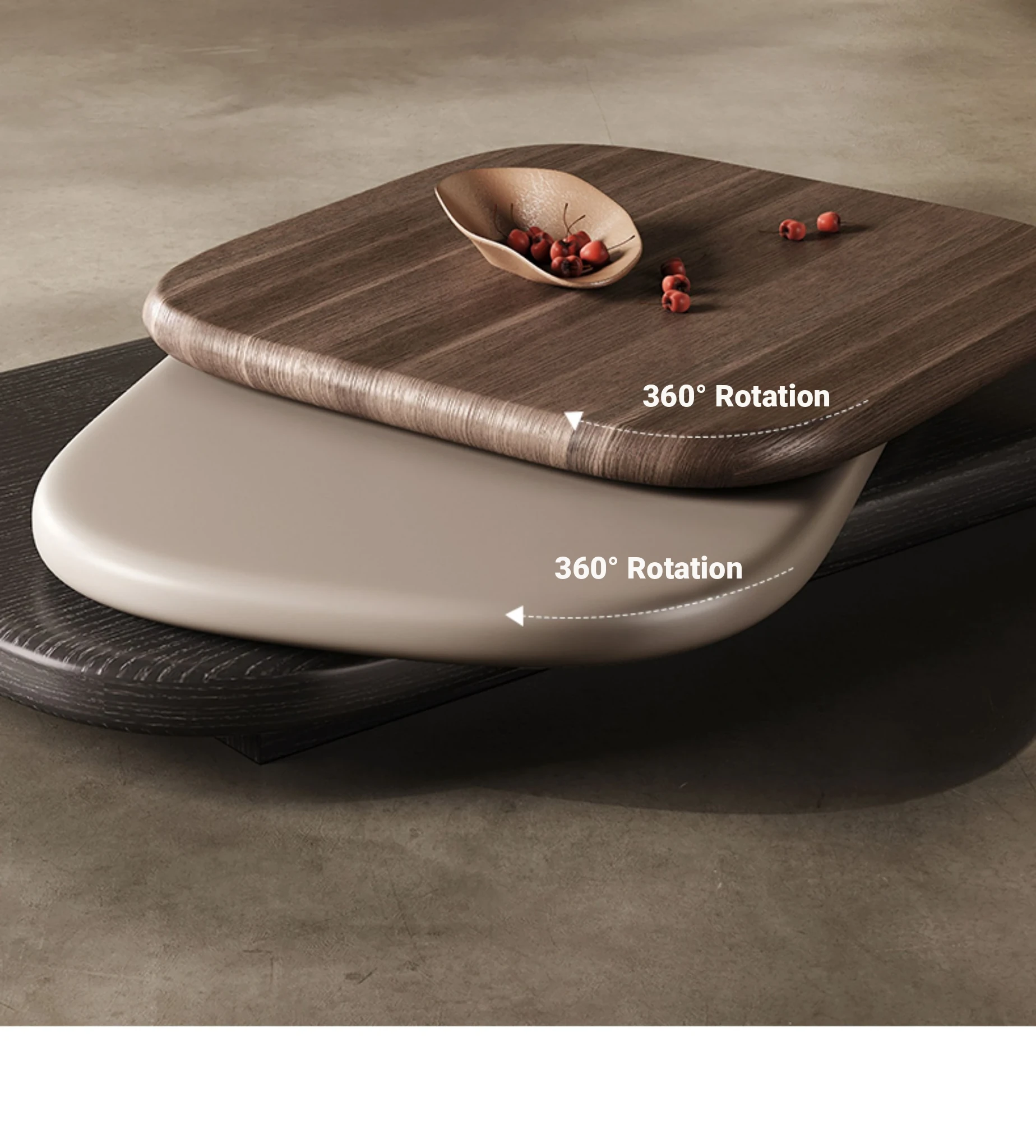 Italian Luxury Designer Coffee Table - Unique Rotating Shape, High-End Feel, Creative Style for Living Room, Trendy Solid Wood Design