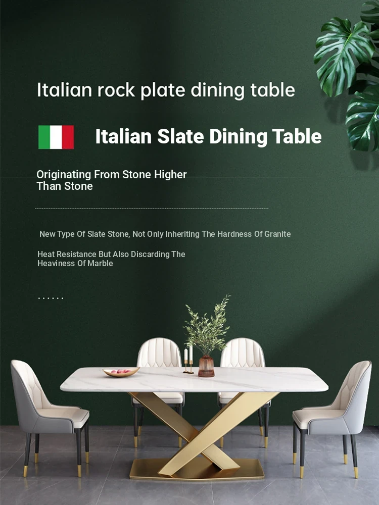 Italian Minimalist Luxury Marble Dining Table and Chair Set - Modern Rectangular Design for Small Spaces, Perfect for Home Dining