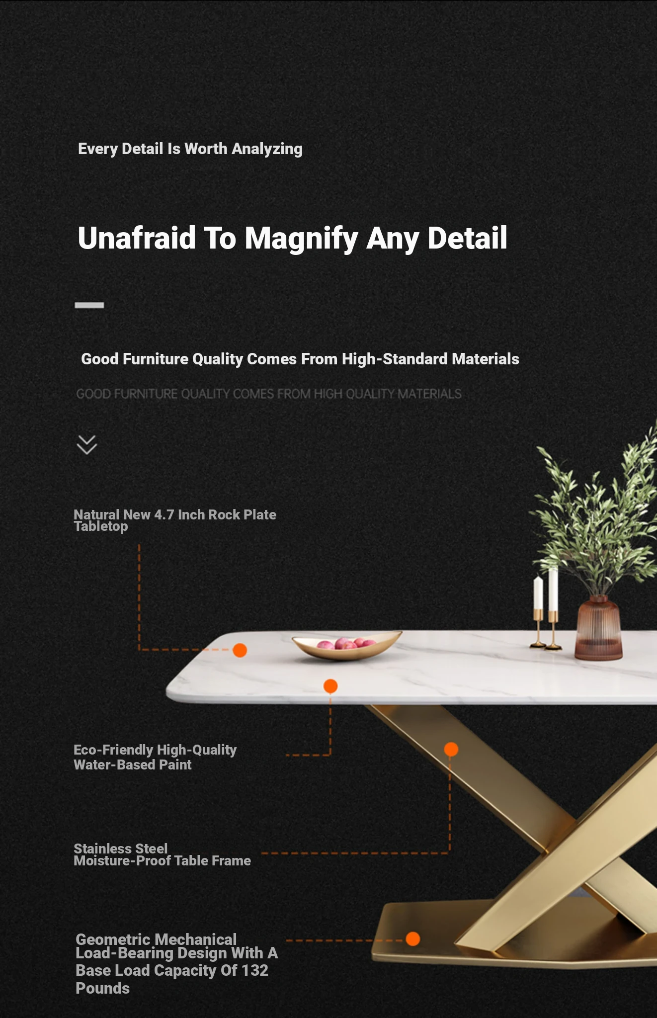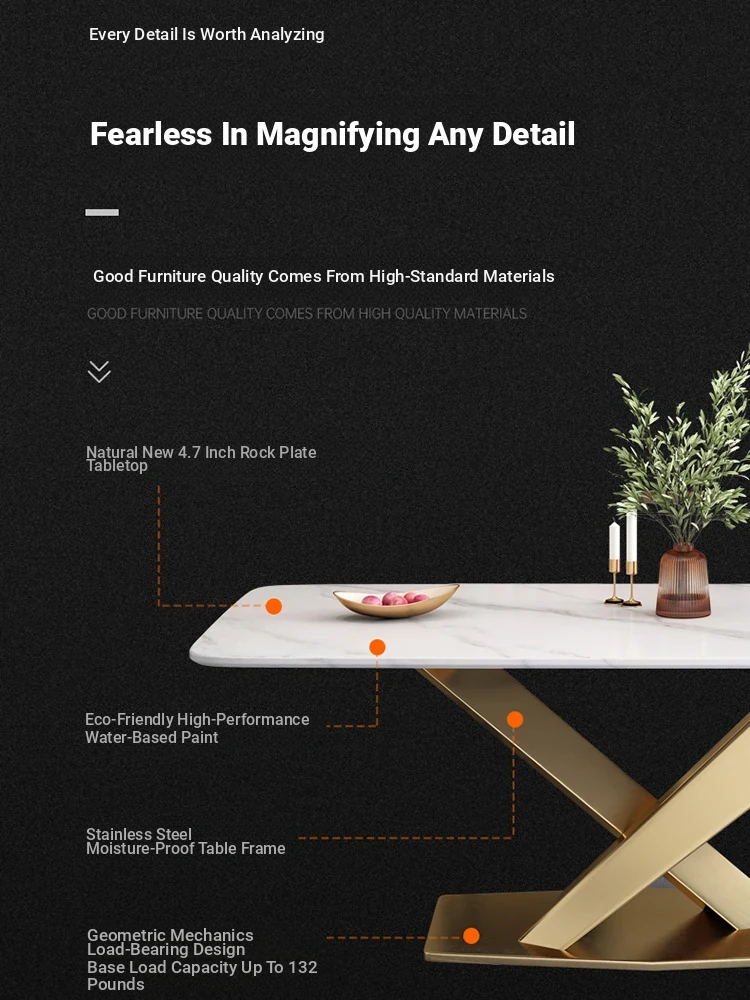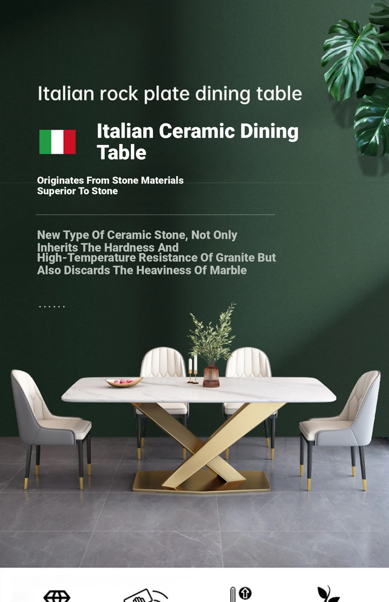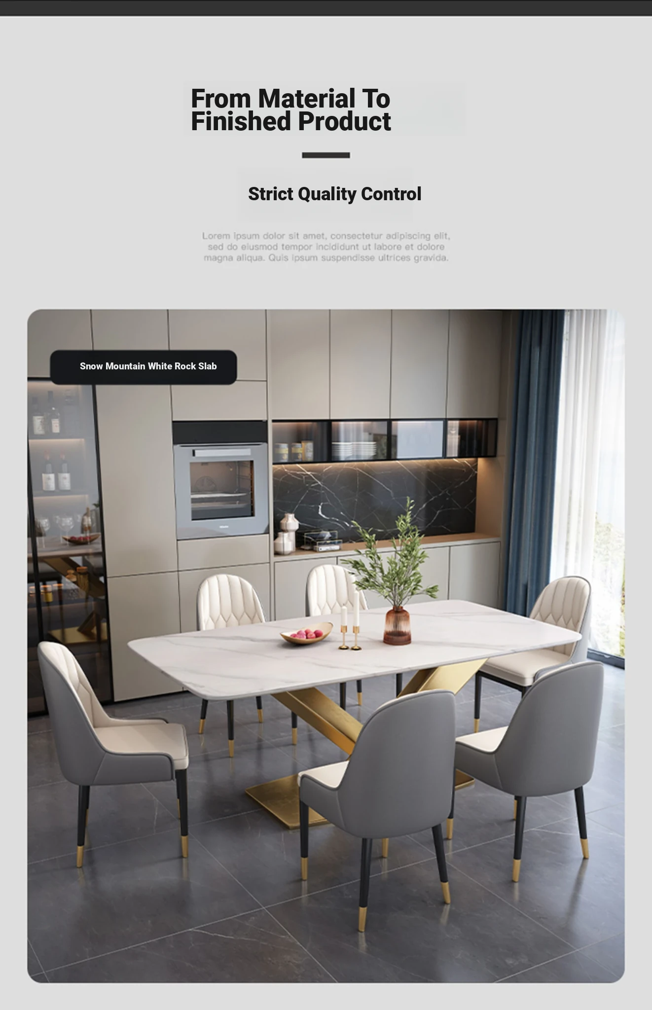 Accessible Luxury Super stone dining table + Cat Claw leather dining chair * 4