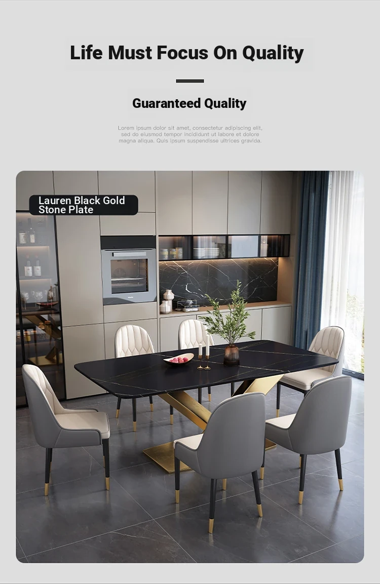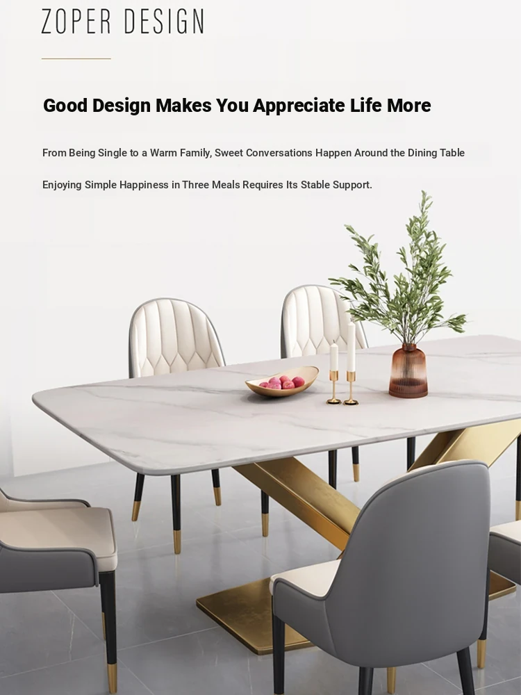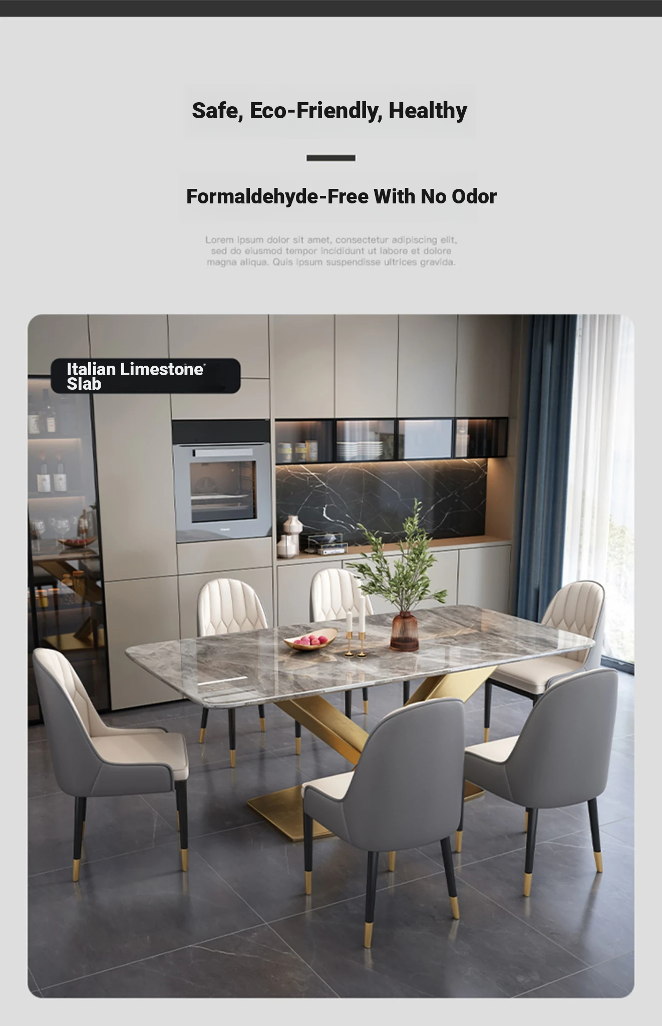 Accessible Luxury Super stone dining table + Cat Claw leather dining chair * 8