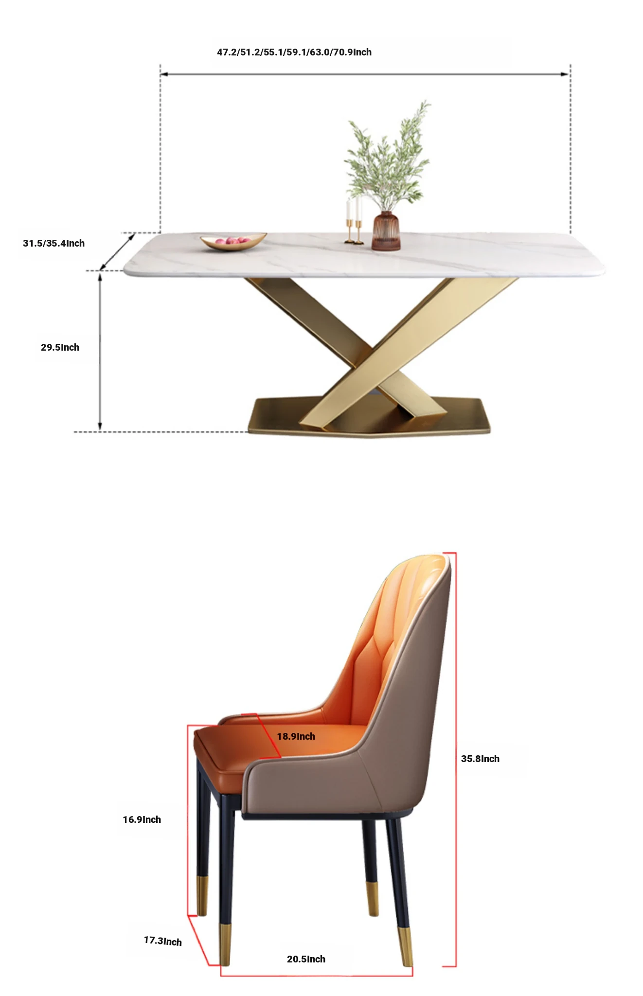 Accessible Luxury Super stone dining table + Cat's claw leather dining chair * 6