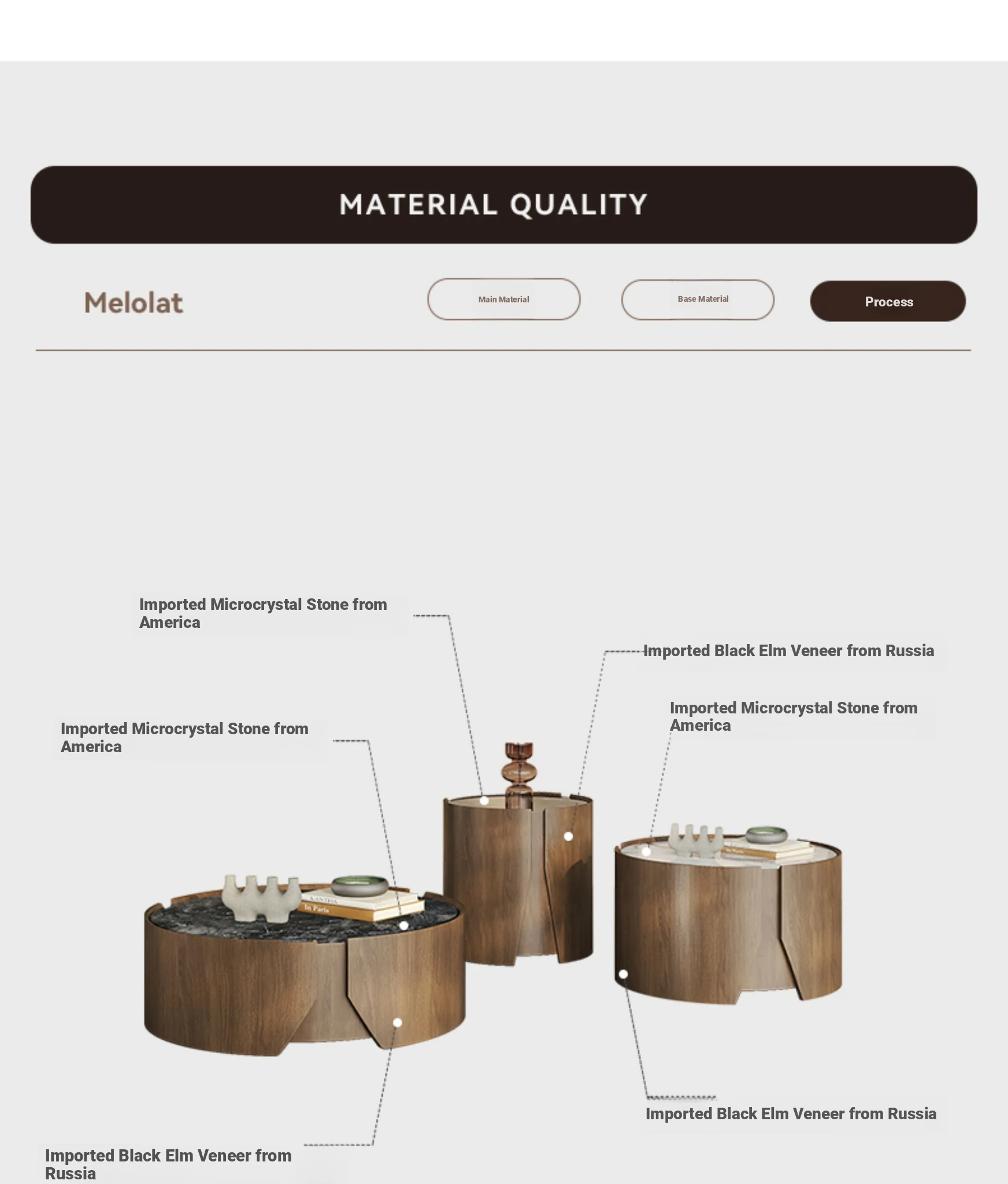 Coffee Table Combination [America Black Forest Microcrystalline Stone + Russia Black Elm Veneer]