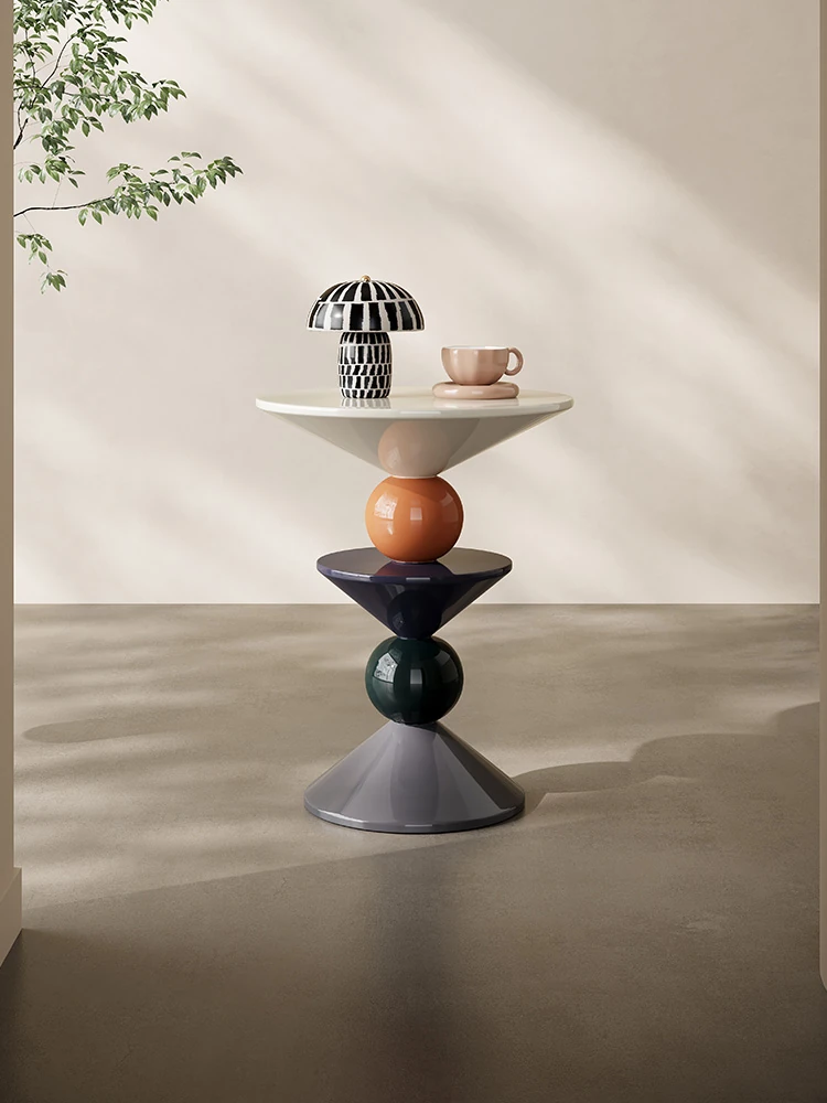 Italian Minimalist Round Side Table - Simple Home Sofa Corner Table, Artistic Wabi-Sabi Style Small Coffee Table for Living Room