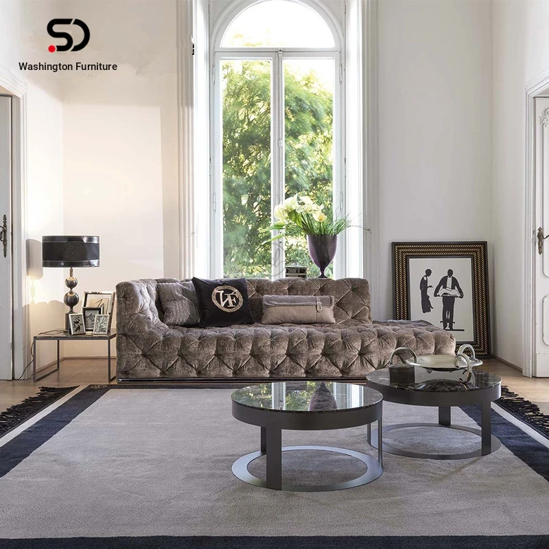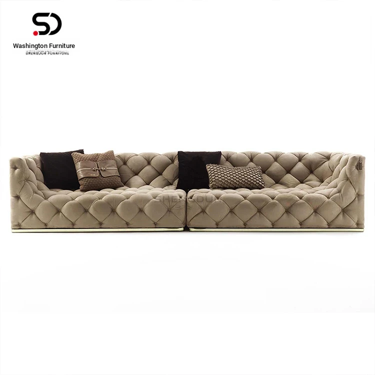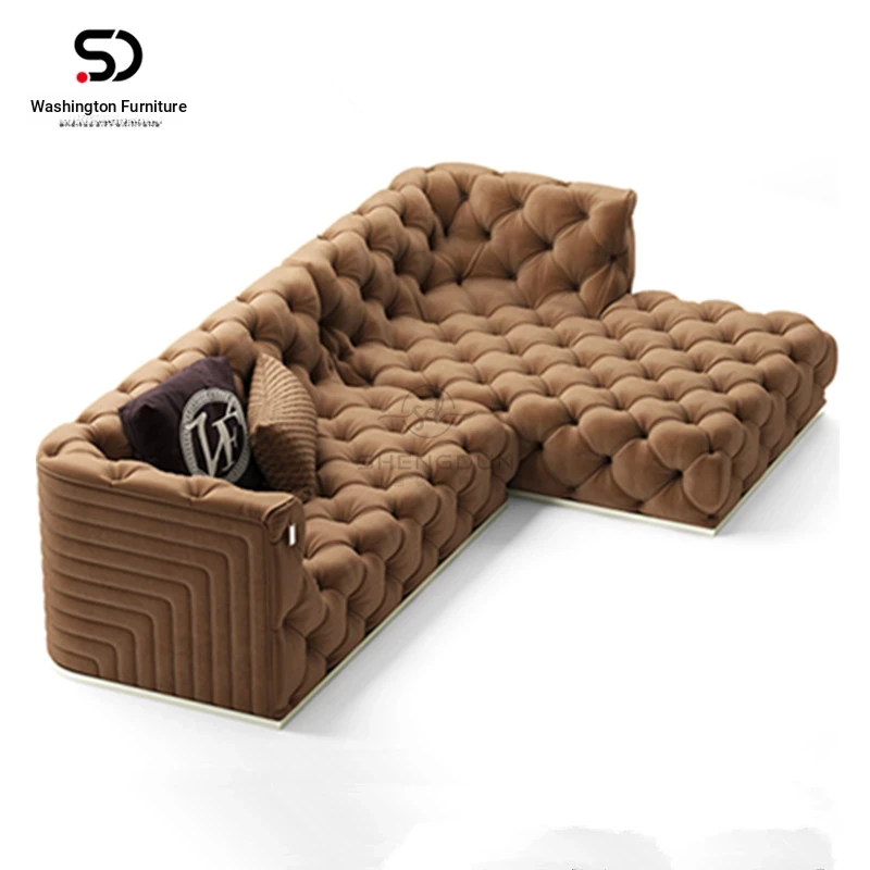 Italian-Inspired Luxury Fabric Sofa with Unique Pull-Design for Modern Showrooms, Cafés, and Lounge Areas – Perfect for Reception and Relaxation