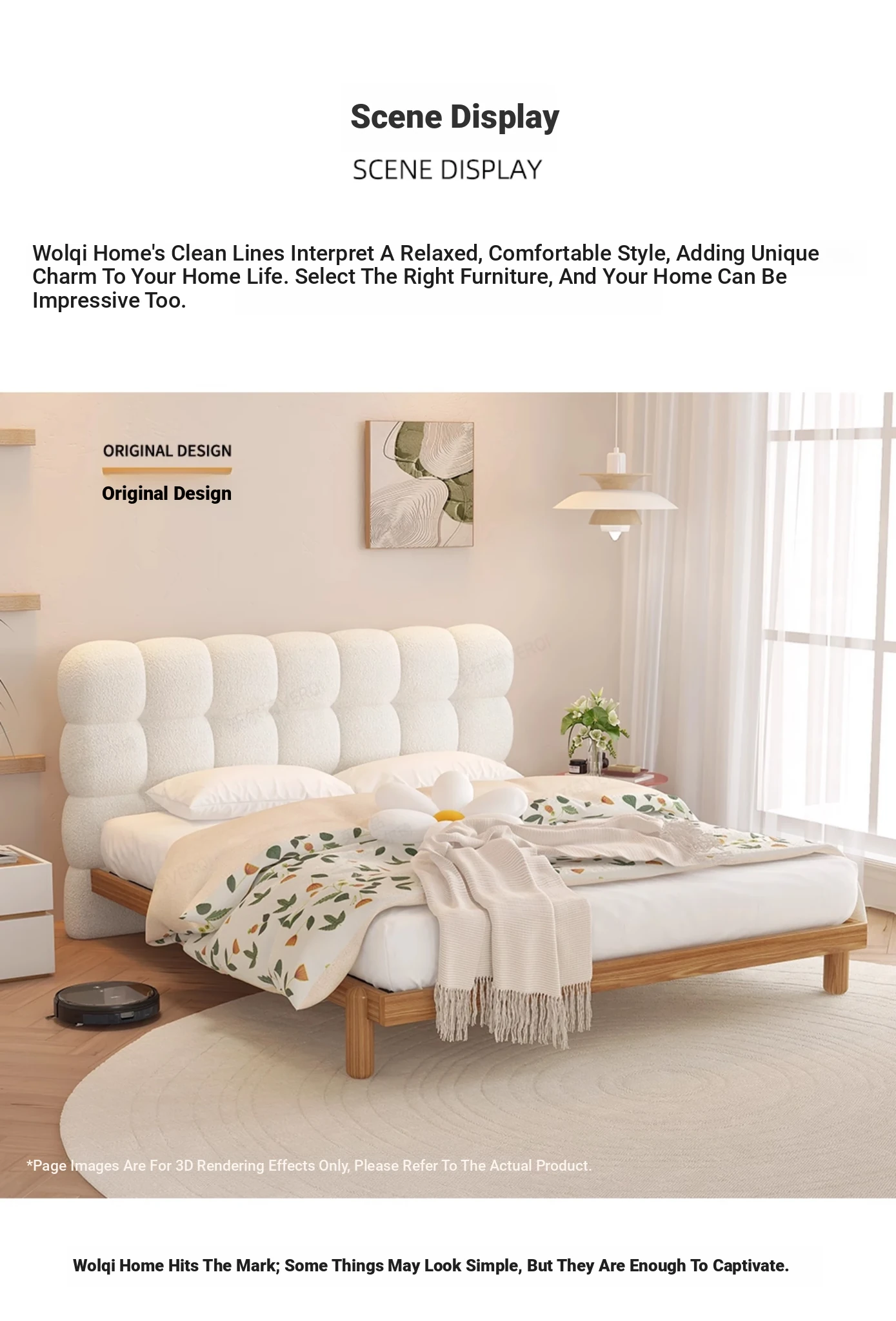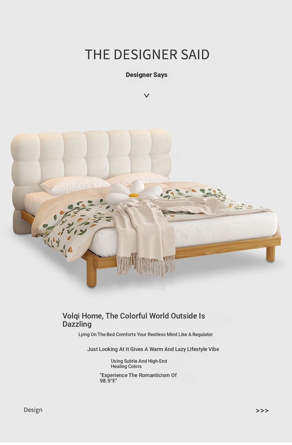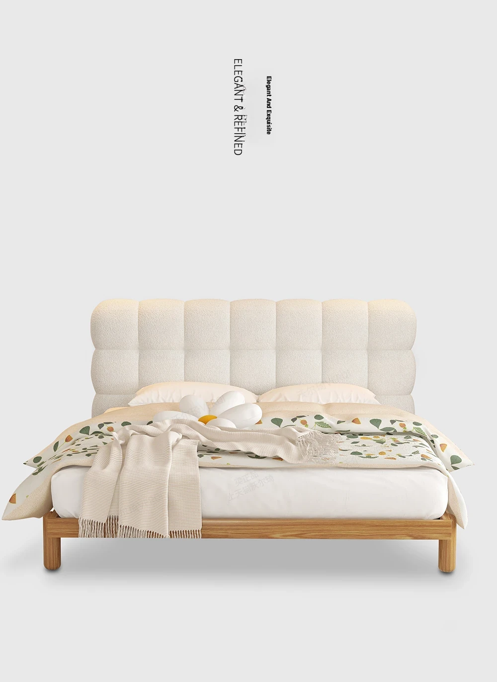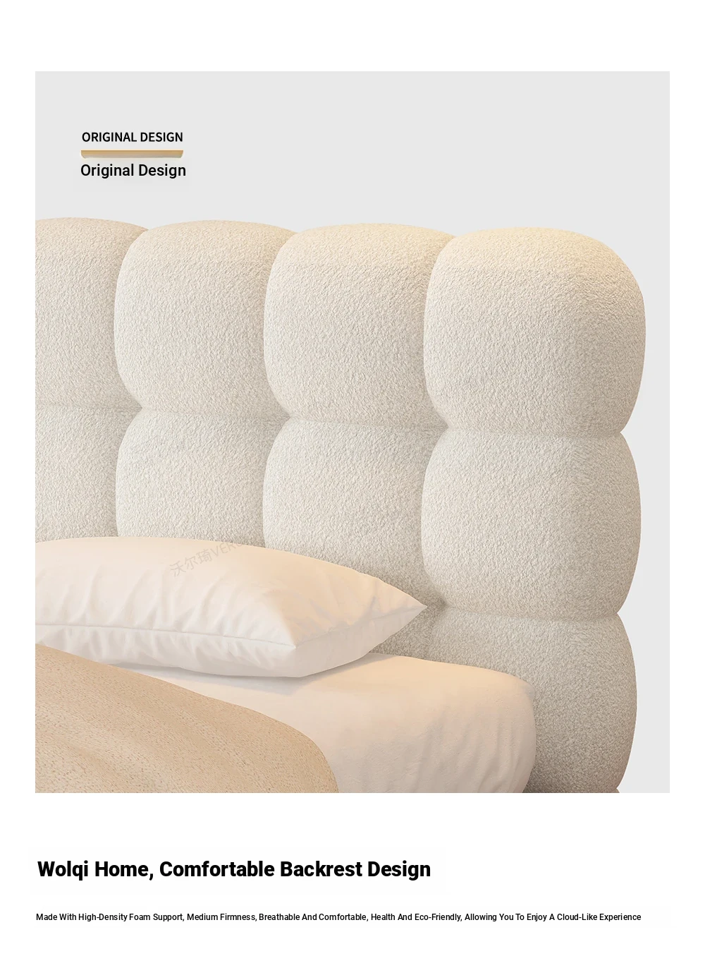 Japanese Creamy Bubble Bed - Modern Minimalist Designer Double Bed with Lamb Fleece Upholstery for Master Bedroom, Stylish Solid Wood Frame, Perfect for Trendy Interiors.