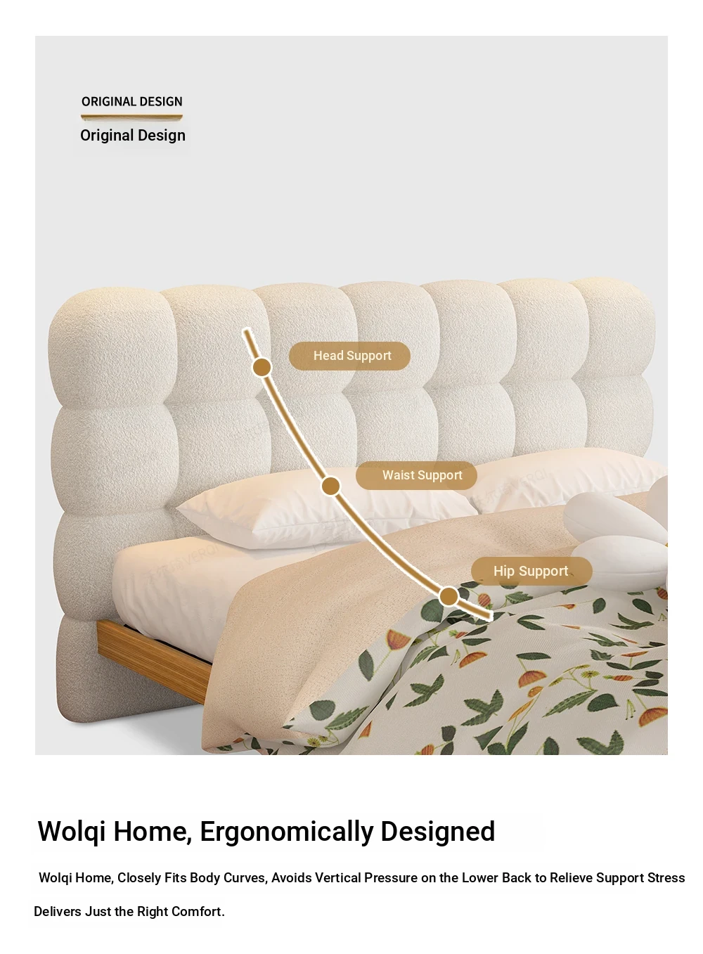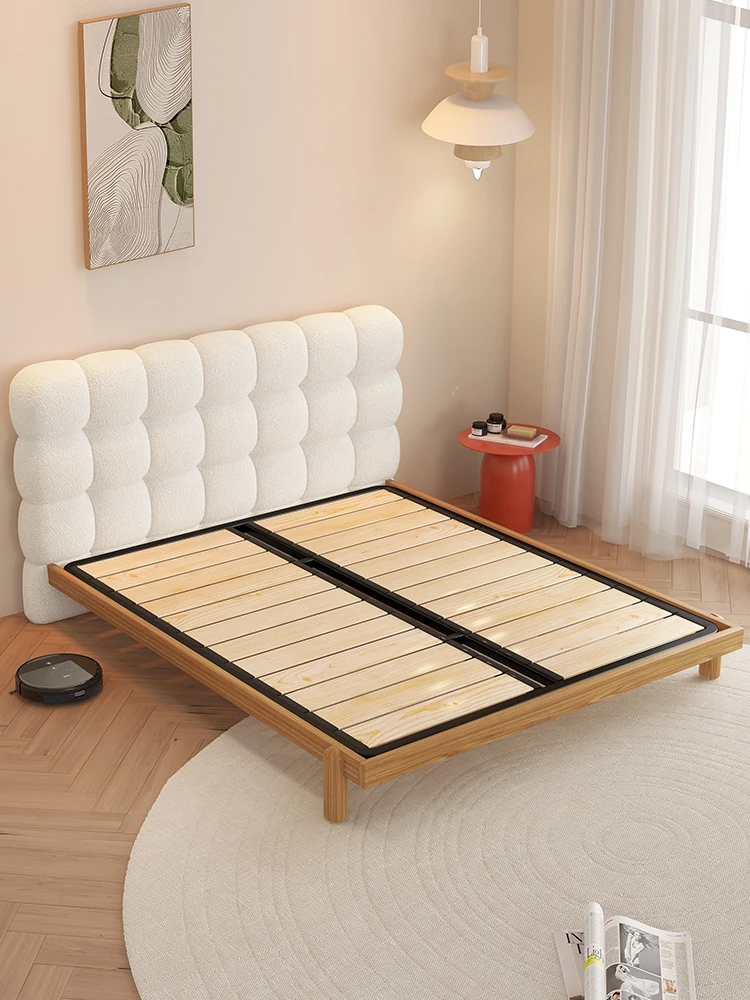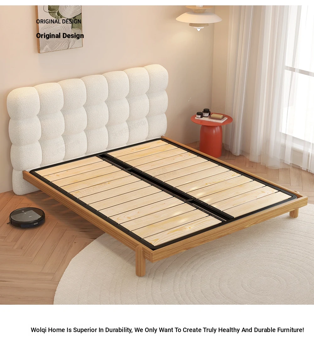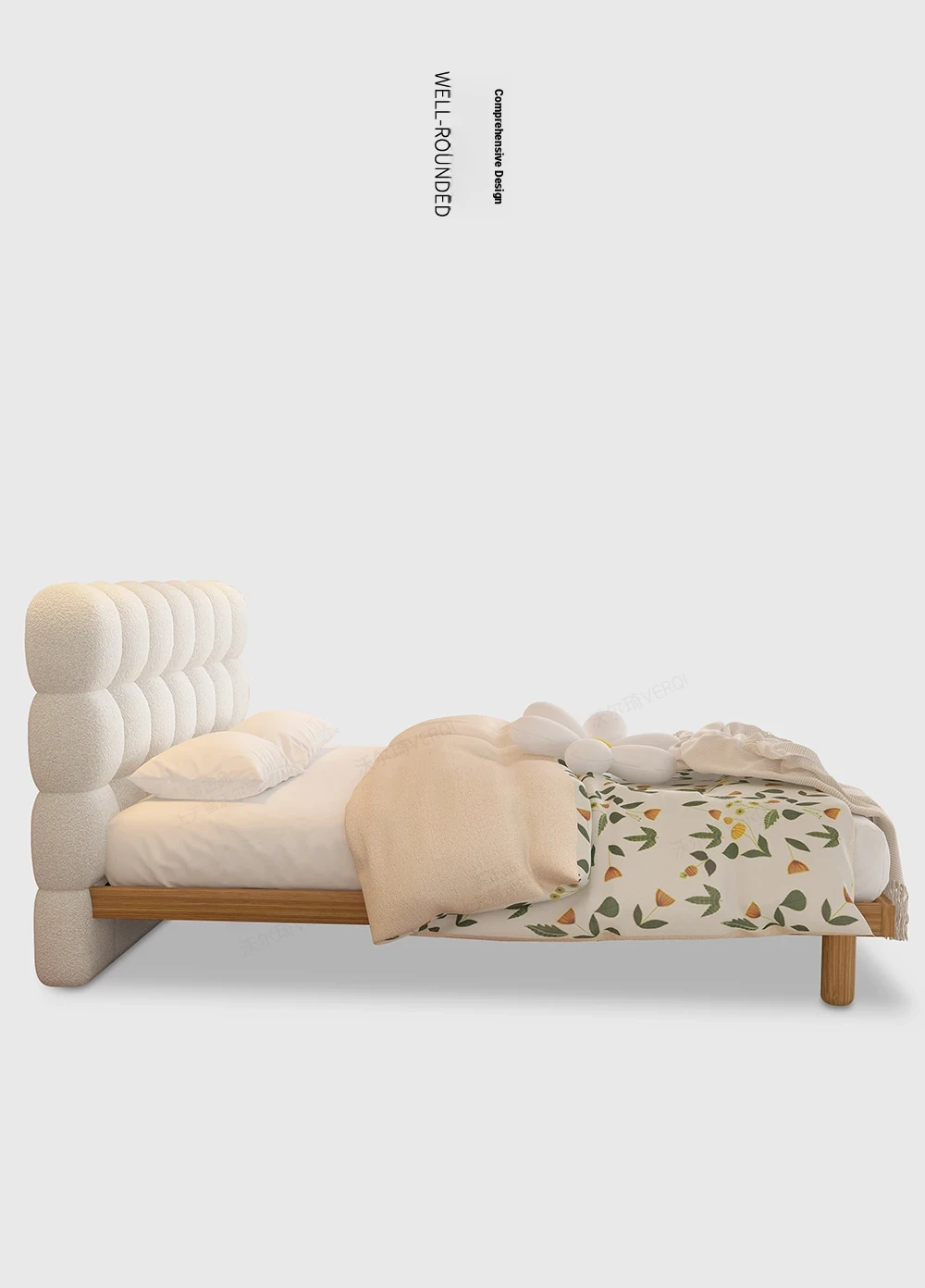 Japanese Creamy Bubble Bed - Modern Minimalist Designer Double Bed with Lamb Fleece Upholstery for Master Bedroom, Stylish Solid Wood Frame, Perfect for Trendy Interiors.
