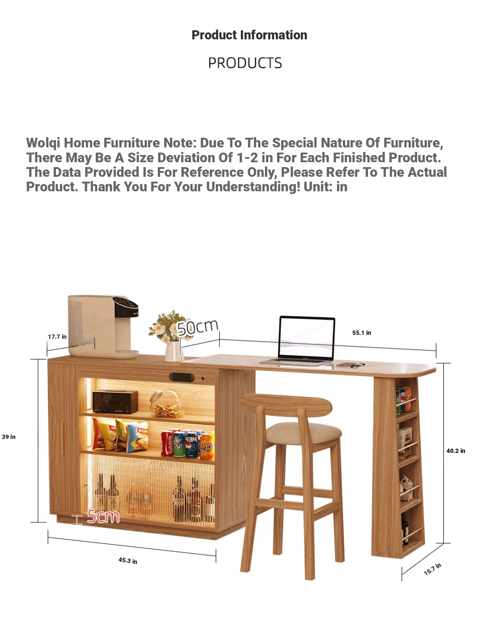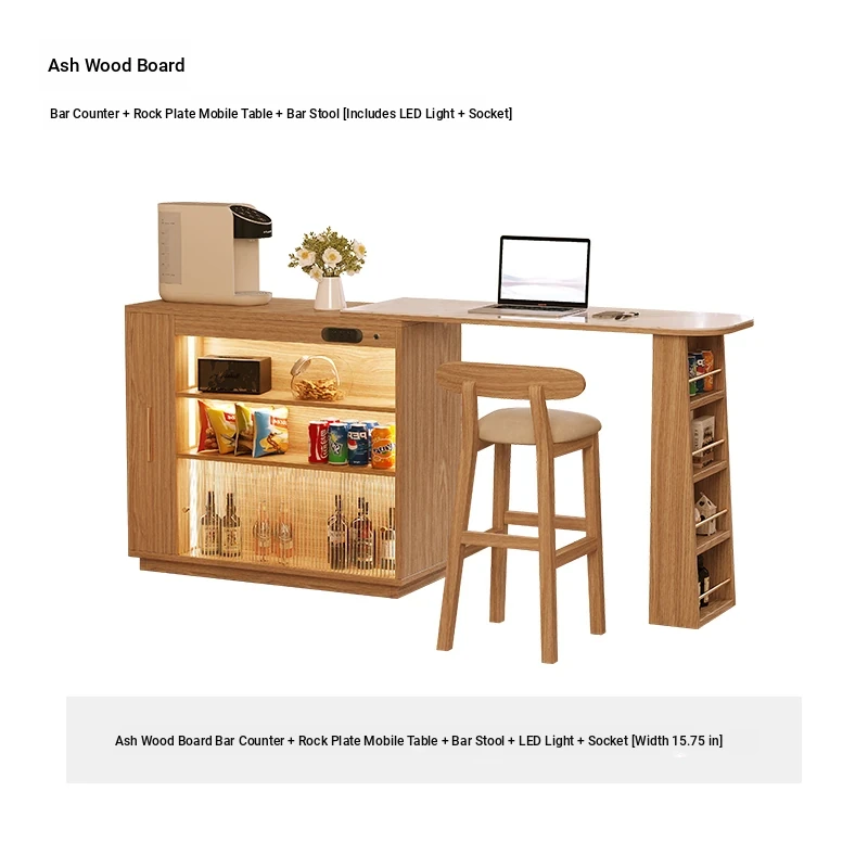 Ash Wood Bar + Slate Mobile Table + Bar Chair [Including Led Light + Socket](Width 15.75in)