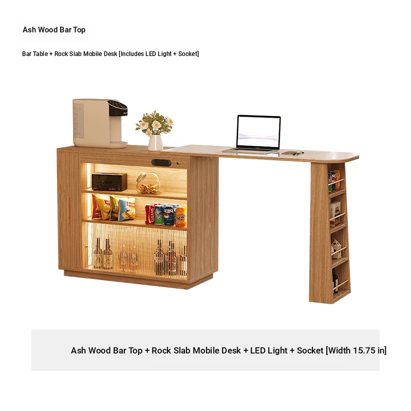 Ash Wood Bar + Slate Mobile Table [Including Led Light + Socket](Width 15.75in)
