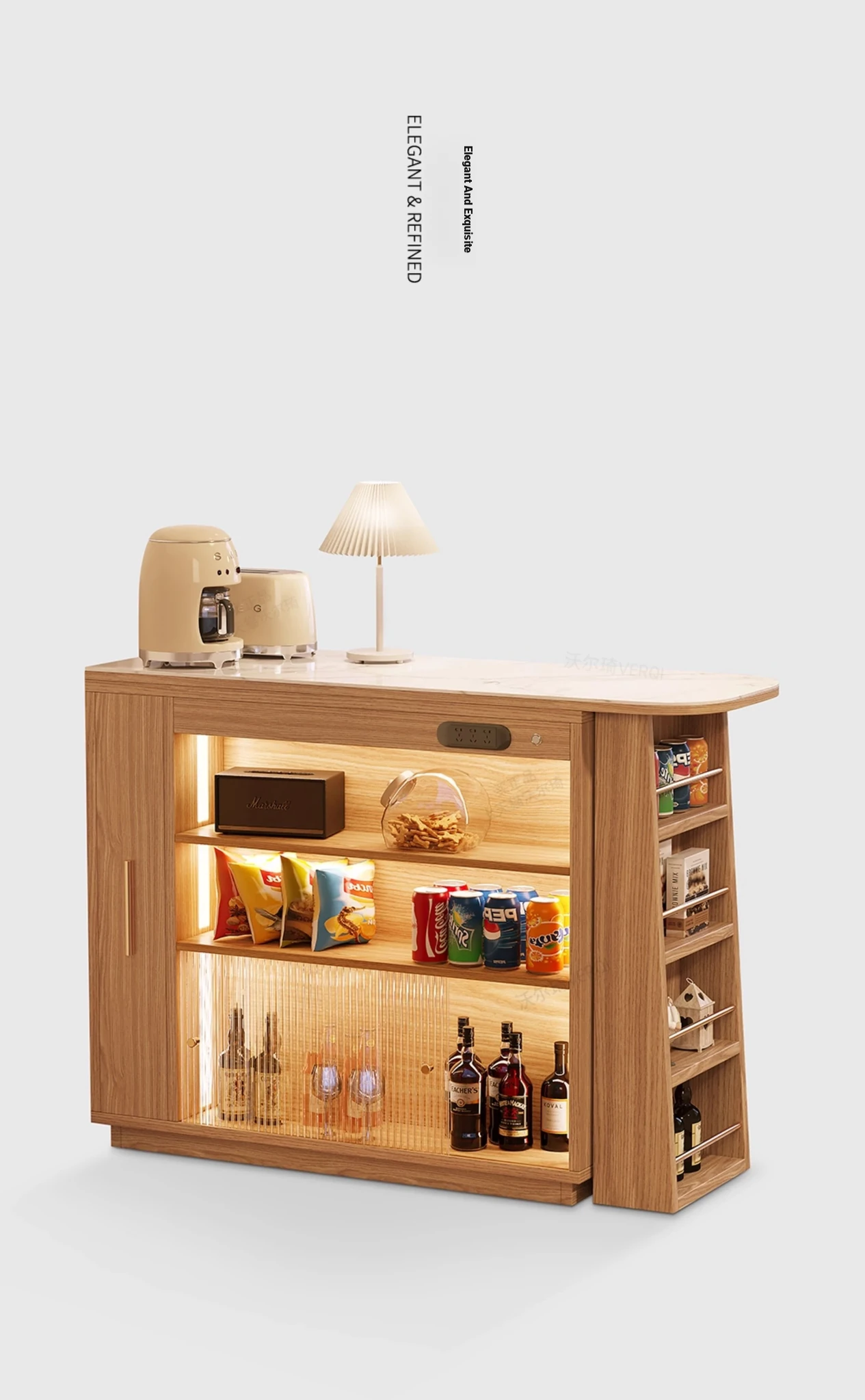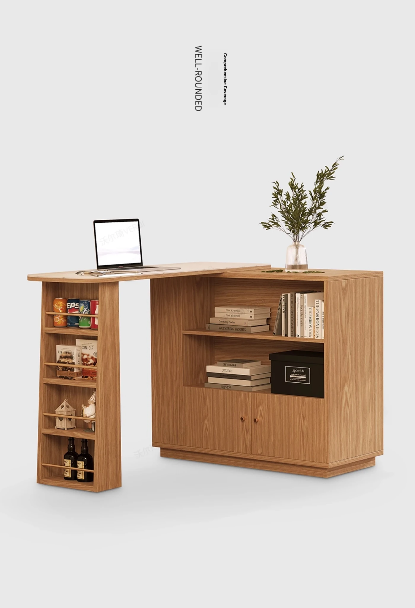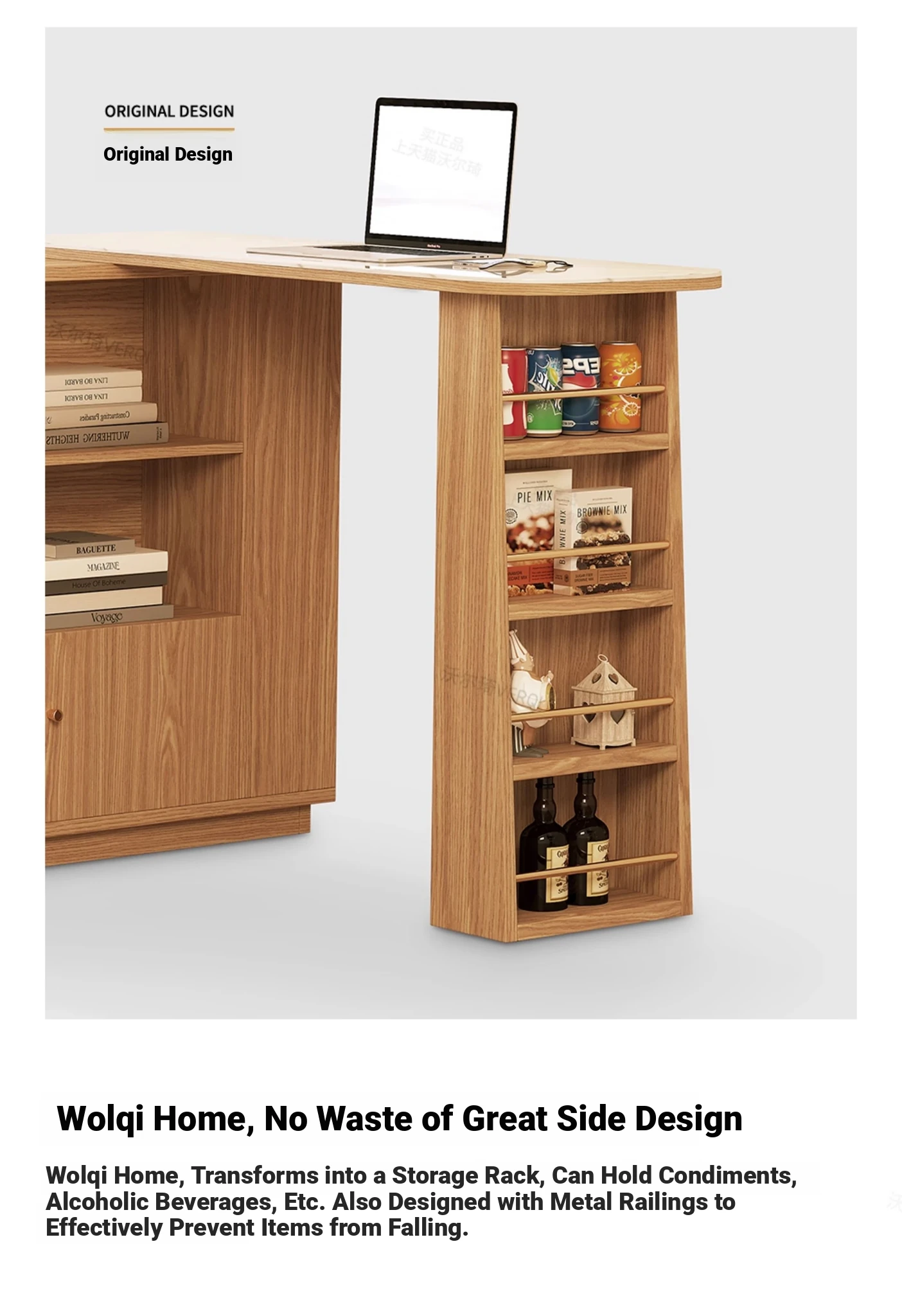 Japanese-Style Solid Wood Rock Panel Bar Table - Modern Movable Partition Dining Table for Small Spaces, Versatile Home Storage Cabinet for Living Room