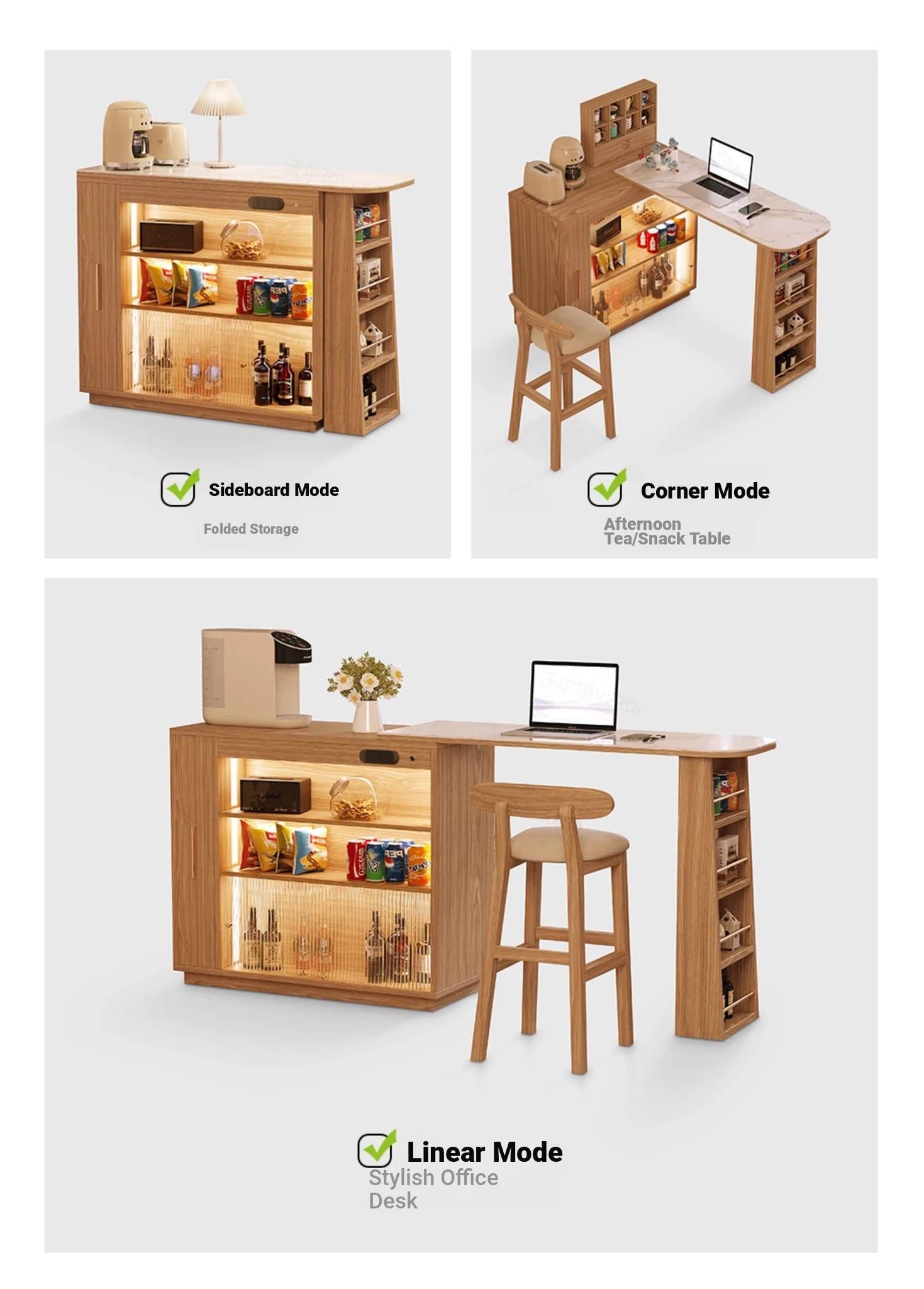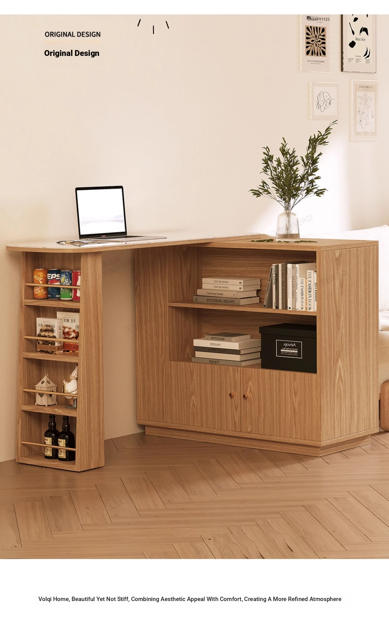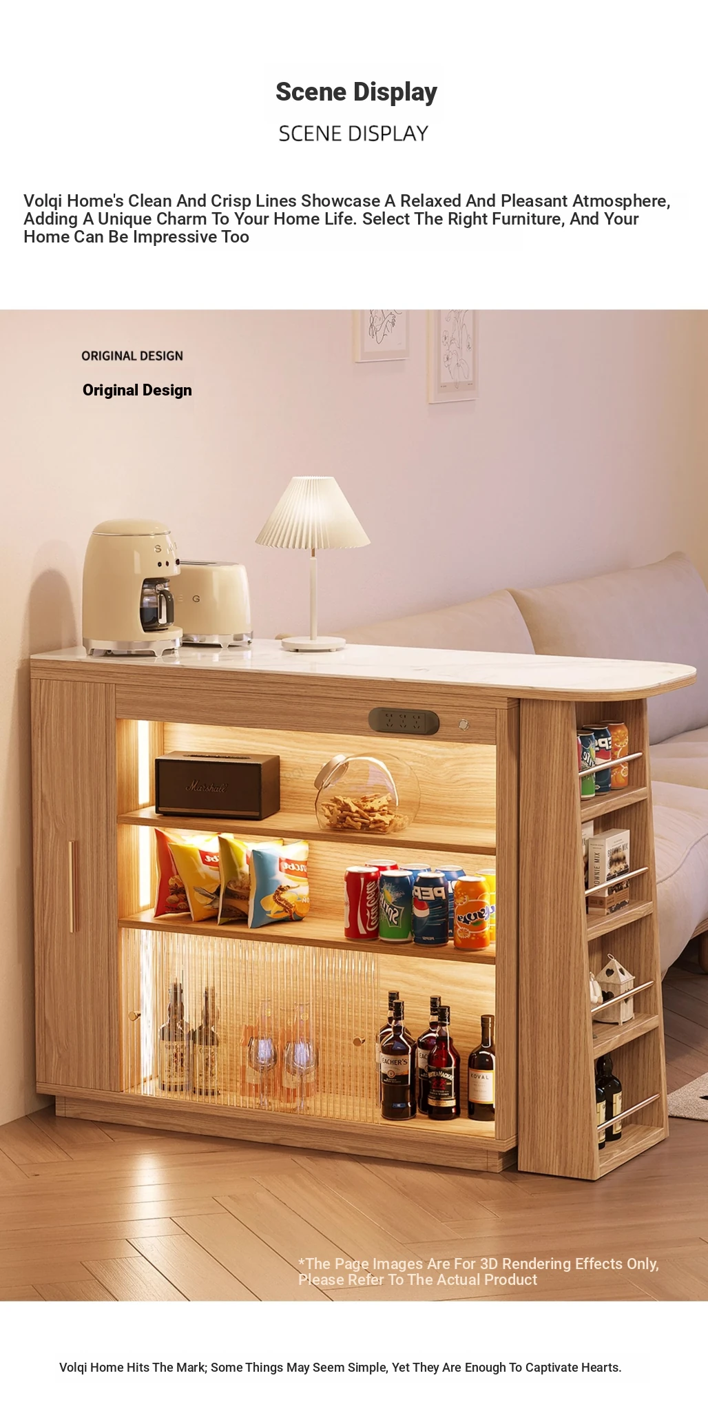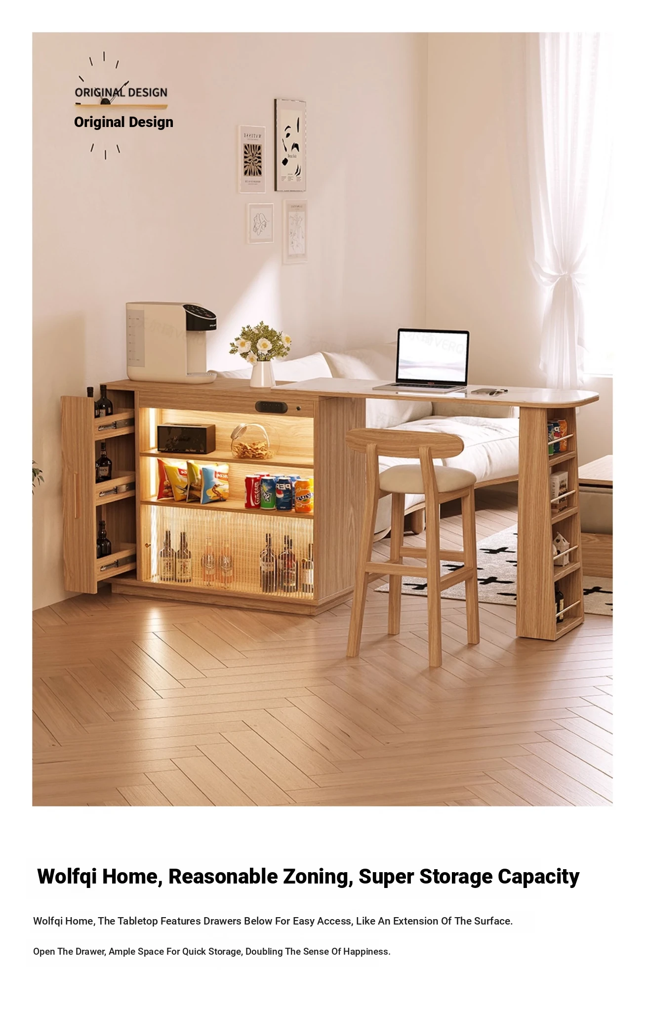 Japanese-Style Solid Wood Rock Panel Bar Table - Modern Movable Partition Dining Table for Small Spaces, Versatile Home Storage Cabinet for Living Room