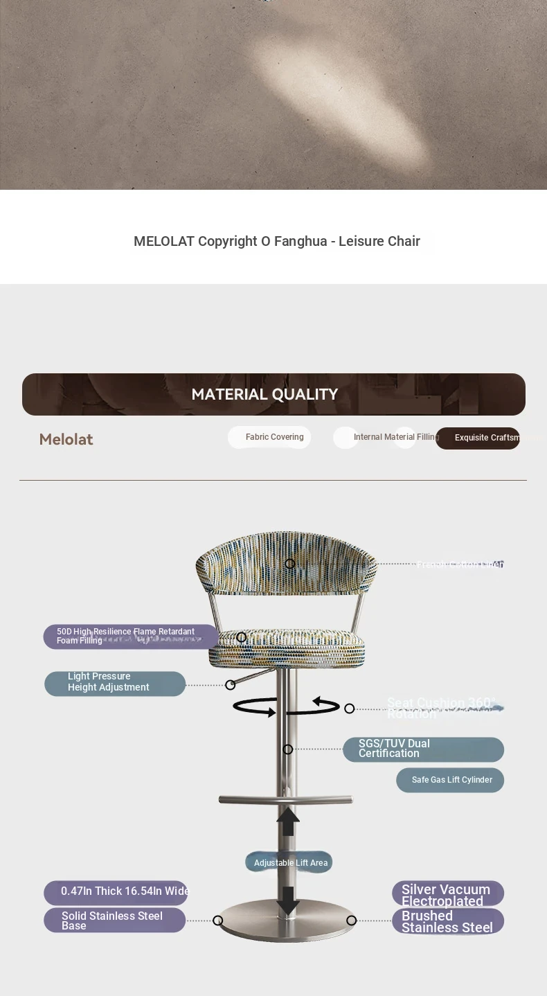 Meloalt Designer Italian Bar Stool - Adjustable & Rotatable Stainless Steel High Chair for Home Use, Perfect for Kitchen Islands and Modern Spaces