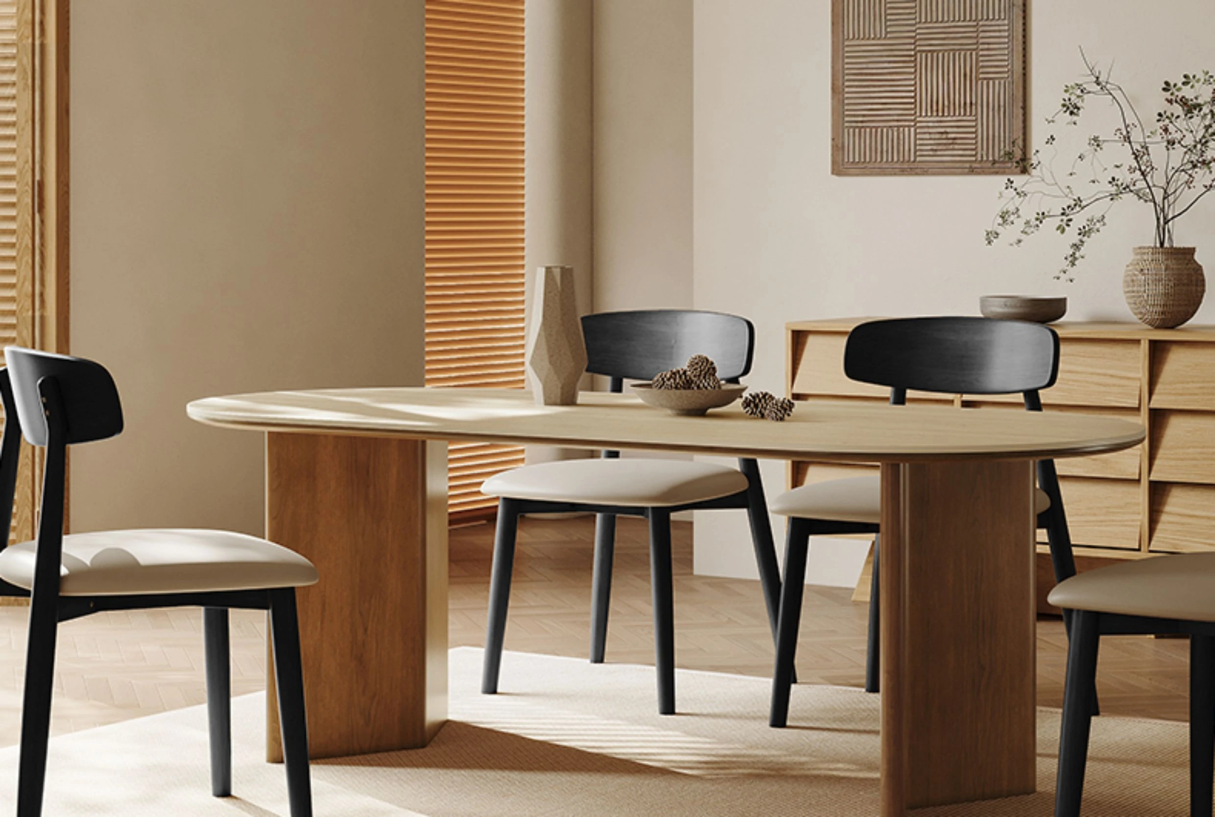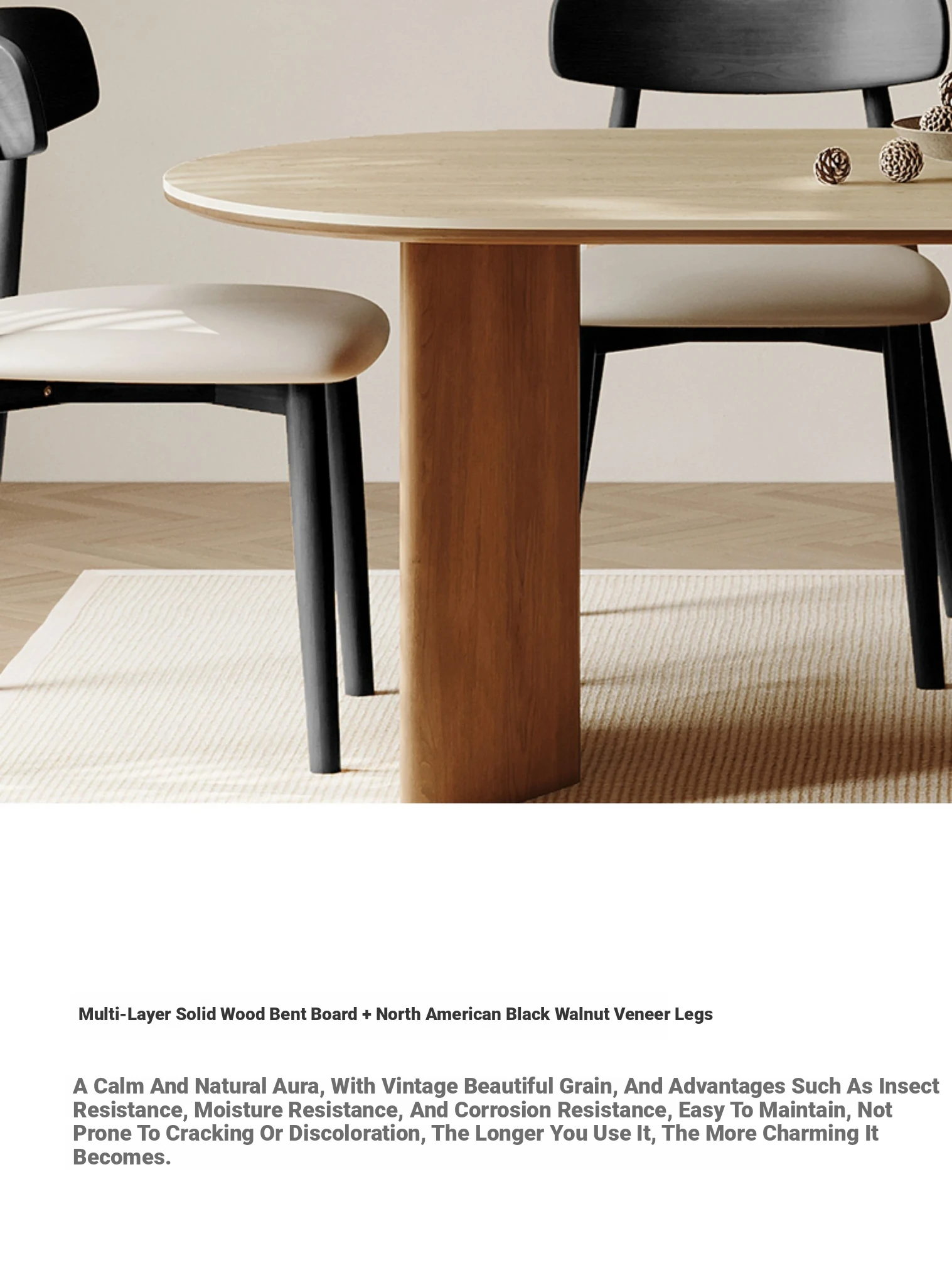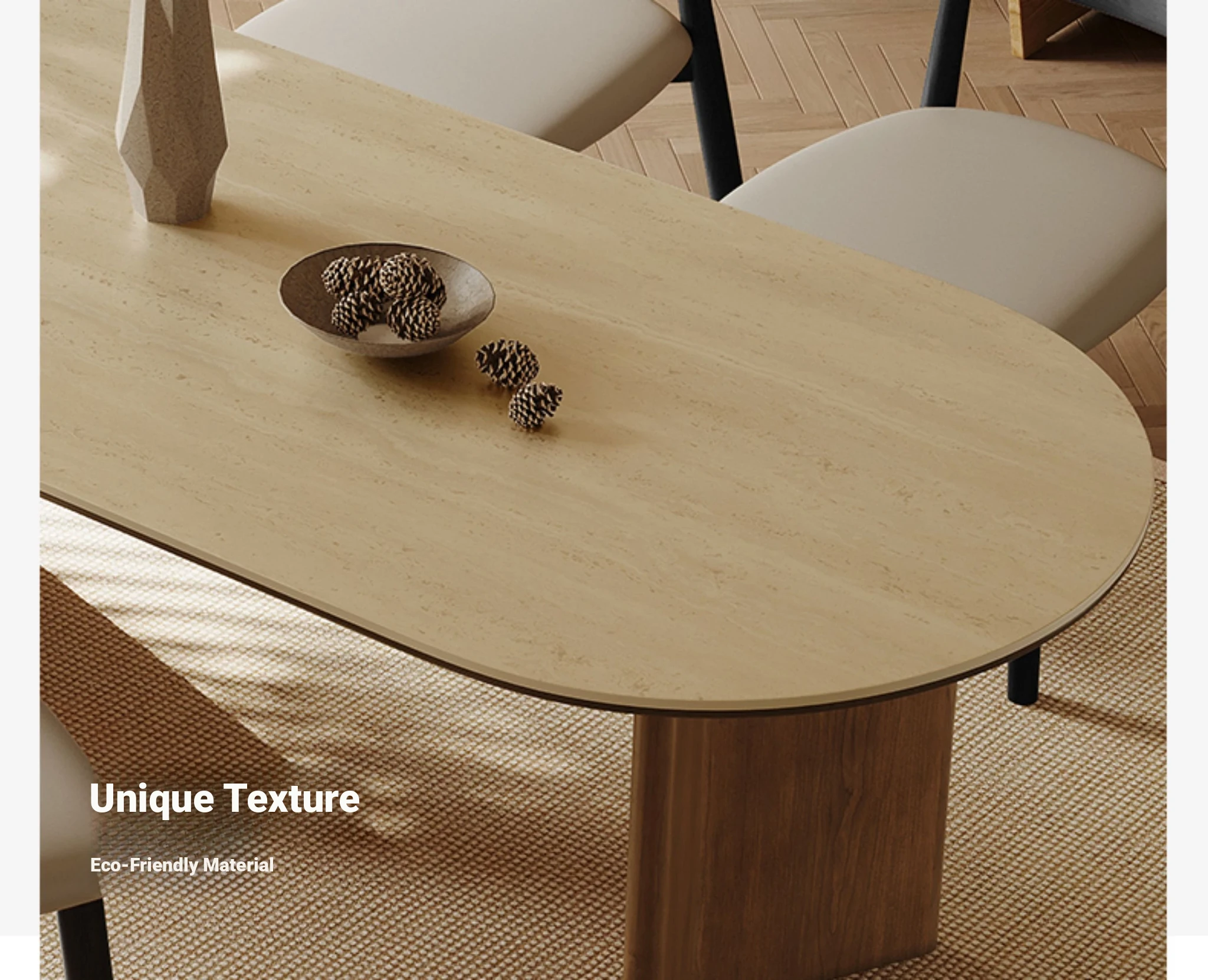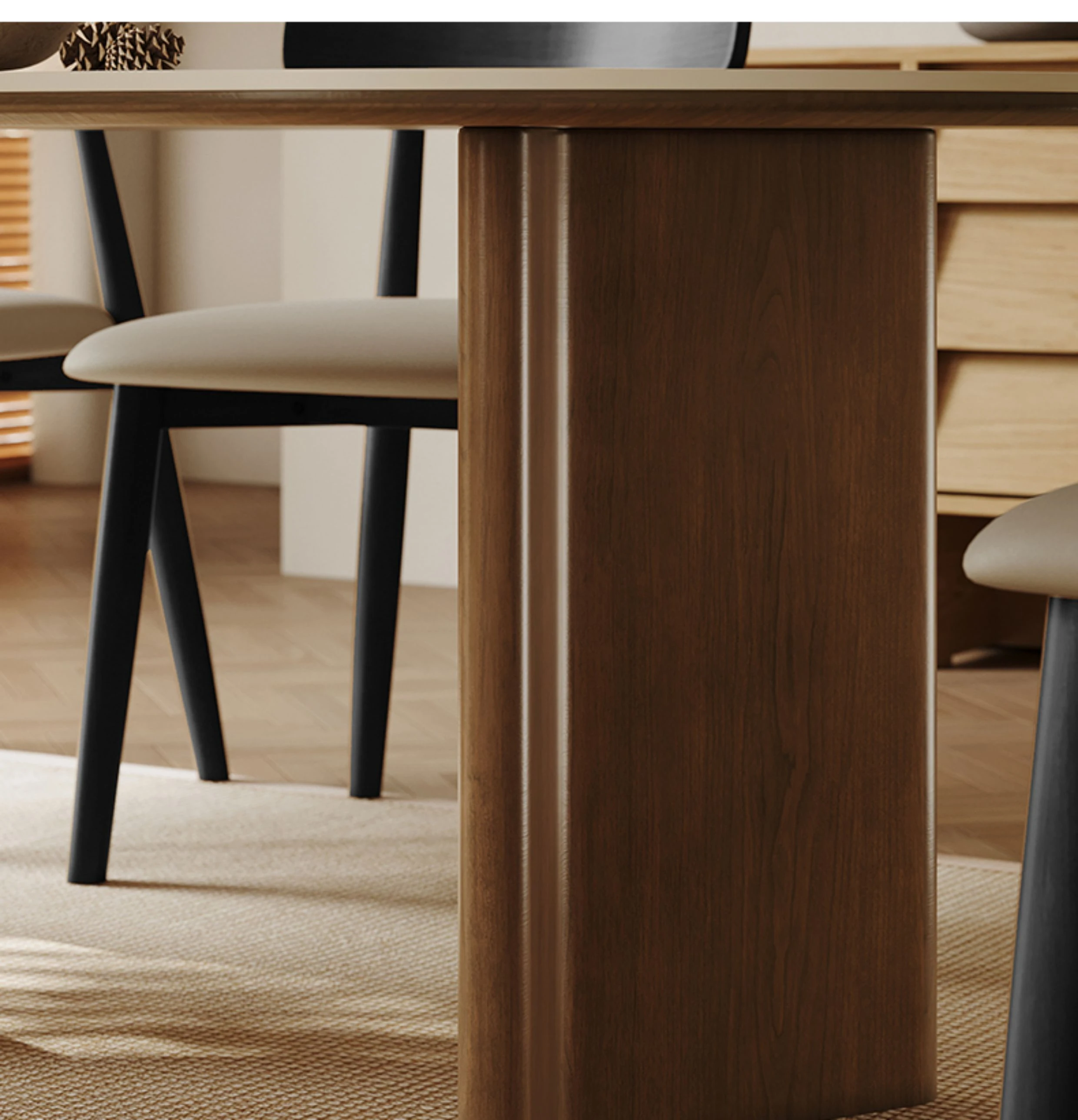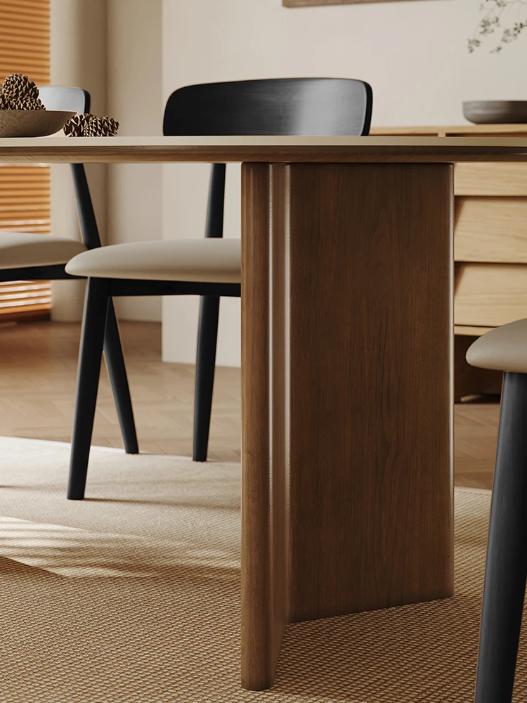 55.12in Dining Table [Italy Imported Travertine Slate + North American Imported Native Black Walnut Veneer Table Legs]