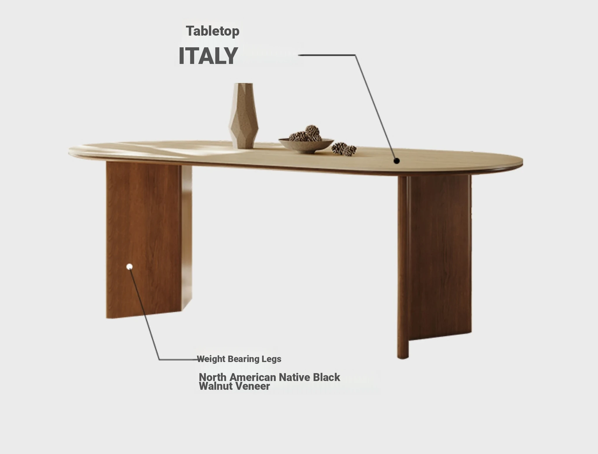 62.99in Dining Table [Italy Imported Travertine Slate + North American Imported Native Black Walnut Veneer Table Legs]