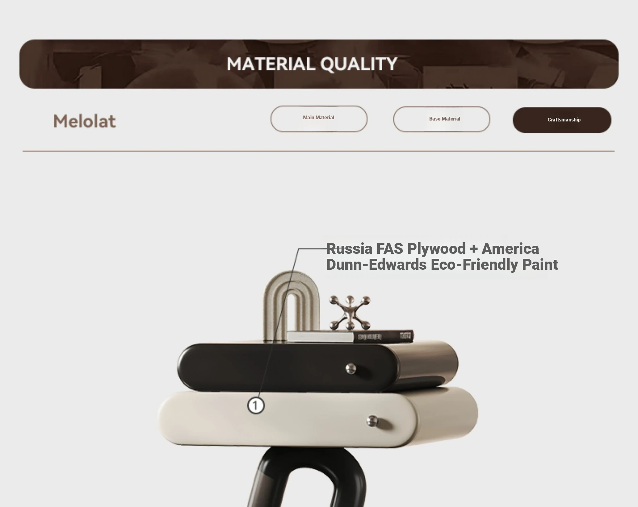 Meloalt Original Designer Nightstand - Italian Minimalist Style, Elegant Cream Storage Cabinet for Your Bedroom