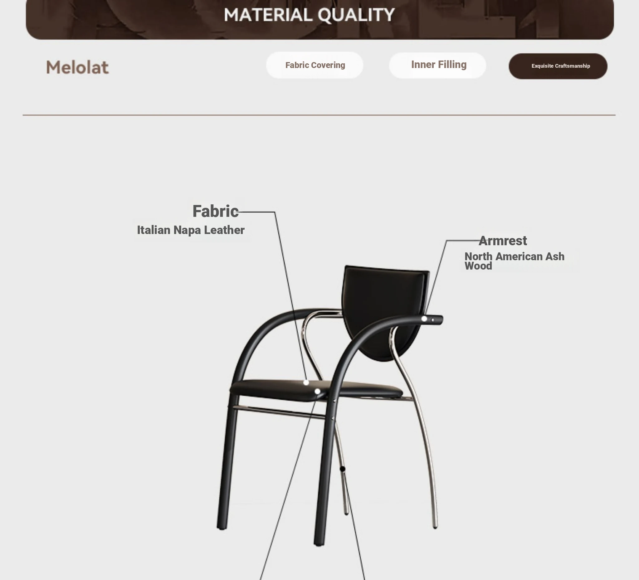 【Italian Nappa Leather + Austenitic 316L Stainless Steel】Art Dining Chair