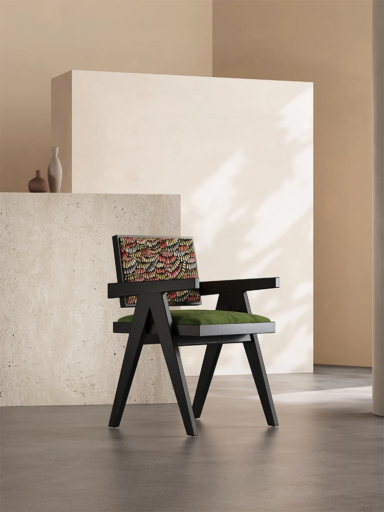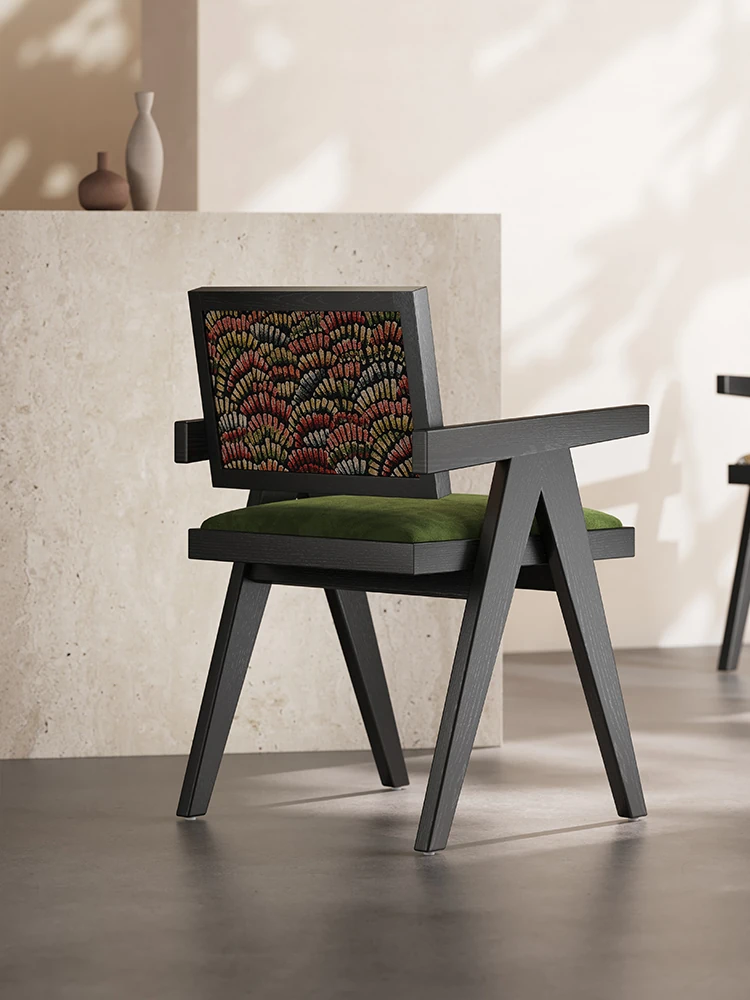 Meloalt Solid Wood Dining Chair - Designer's Creative Light Luxury Tea Chair with French Vintage Armrests and Backrest for Home Use
