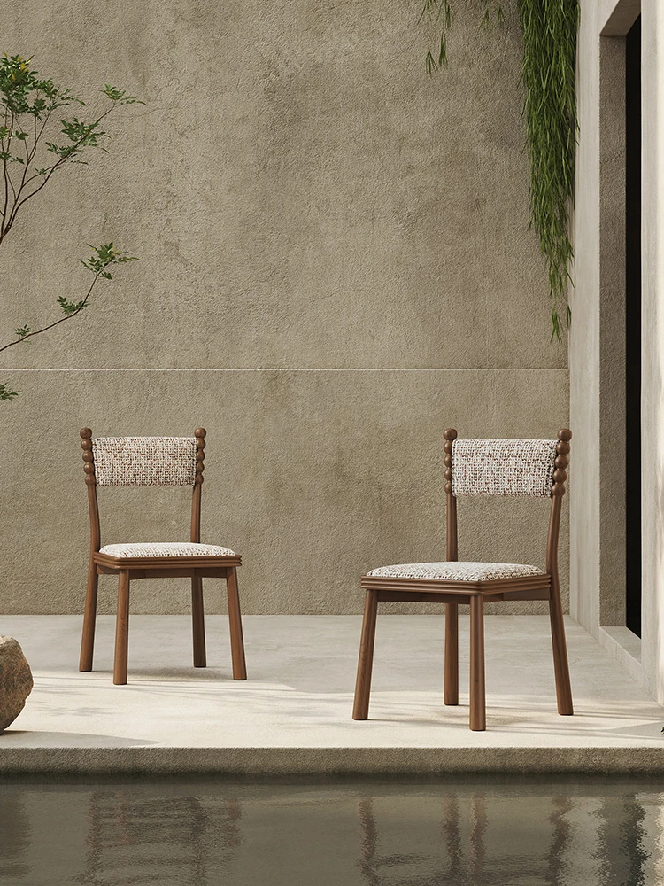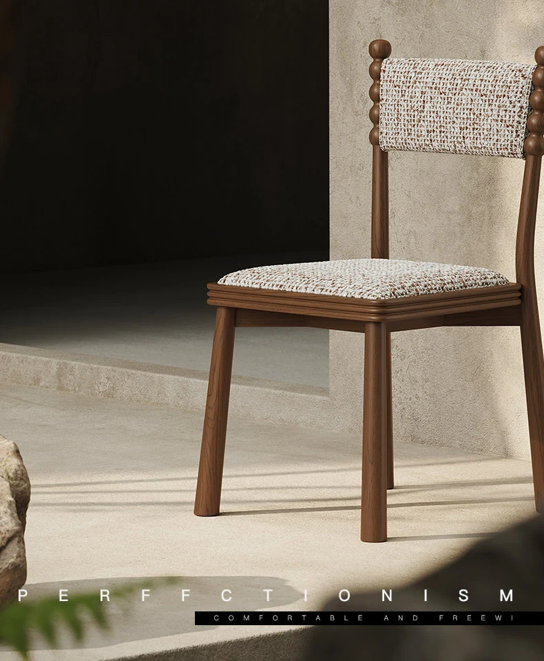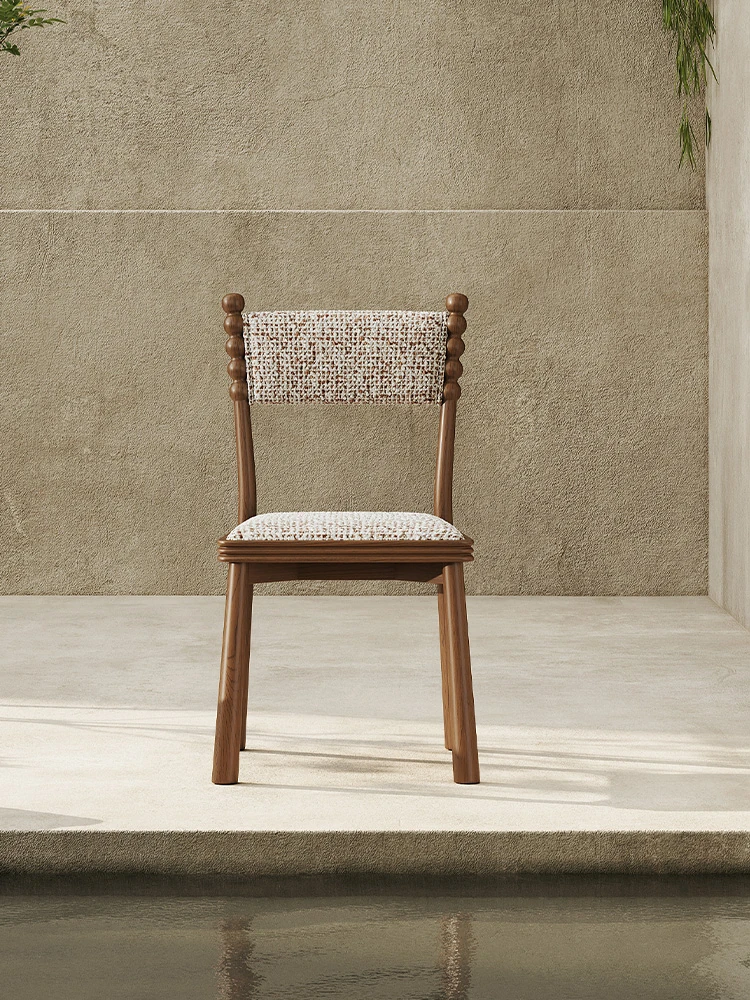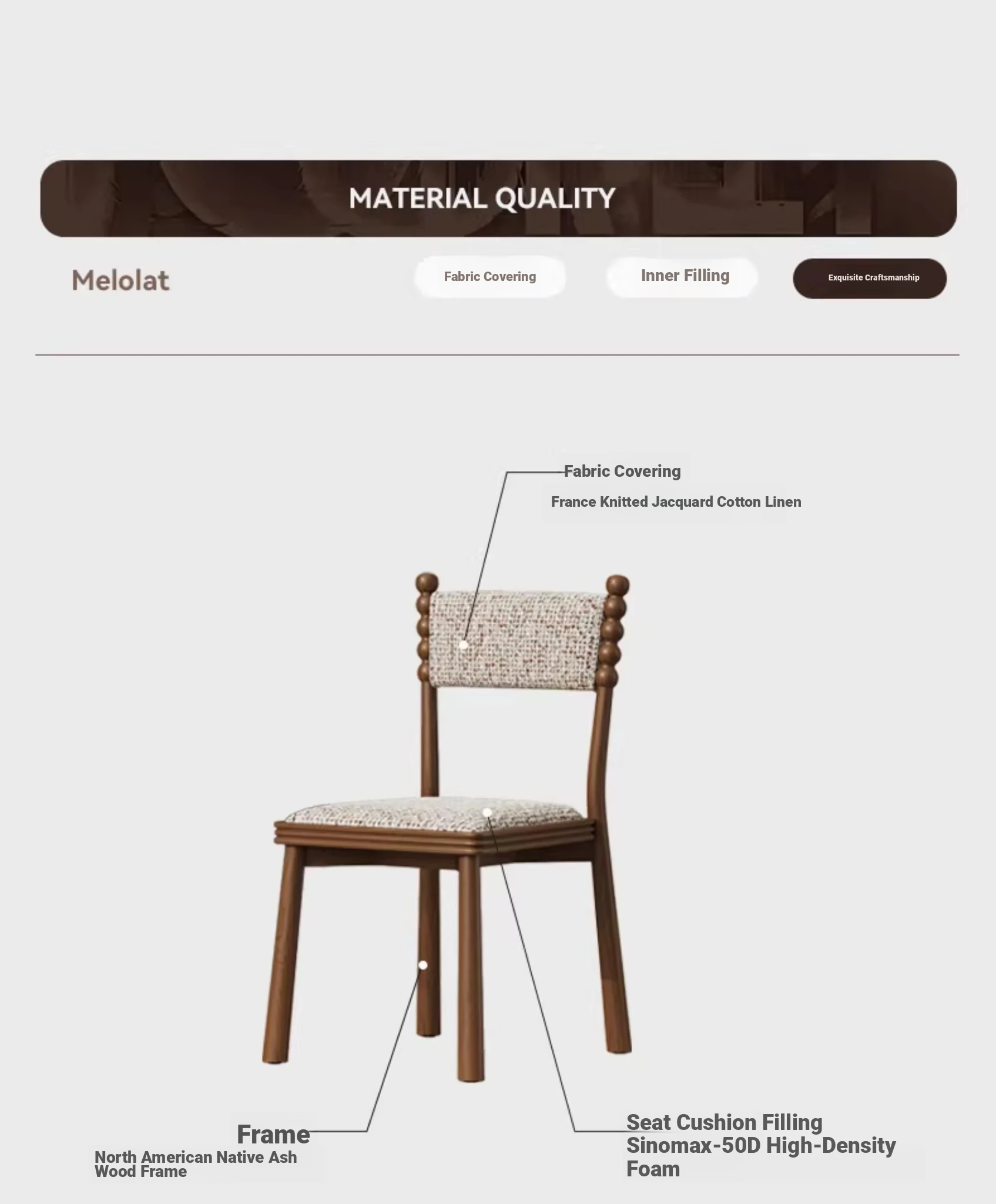Shanchuan Yunye [2 Pieces] [France Imported Knitted Jacquard Cotton and Linen + North American Imported Native Ash Wood] Art Dining Chair
