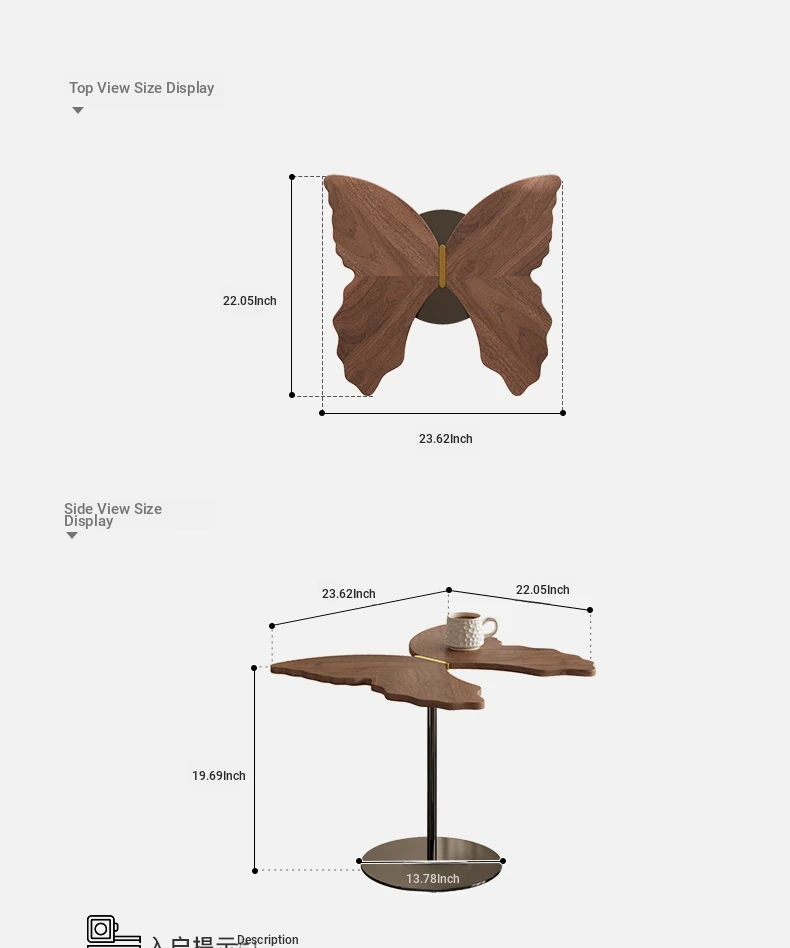 Melolat Butterfly Edge Side Table - New Creative Minimalist Designer Walnut Corner Table in Unique Shape