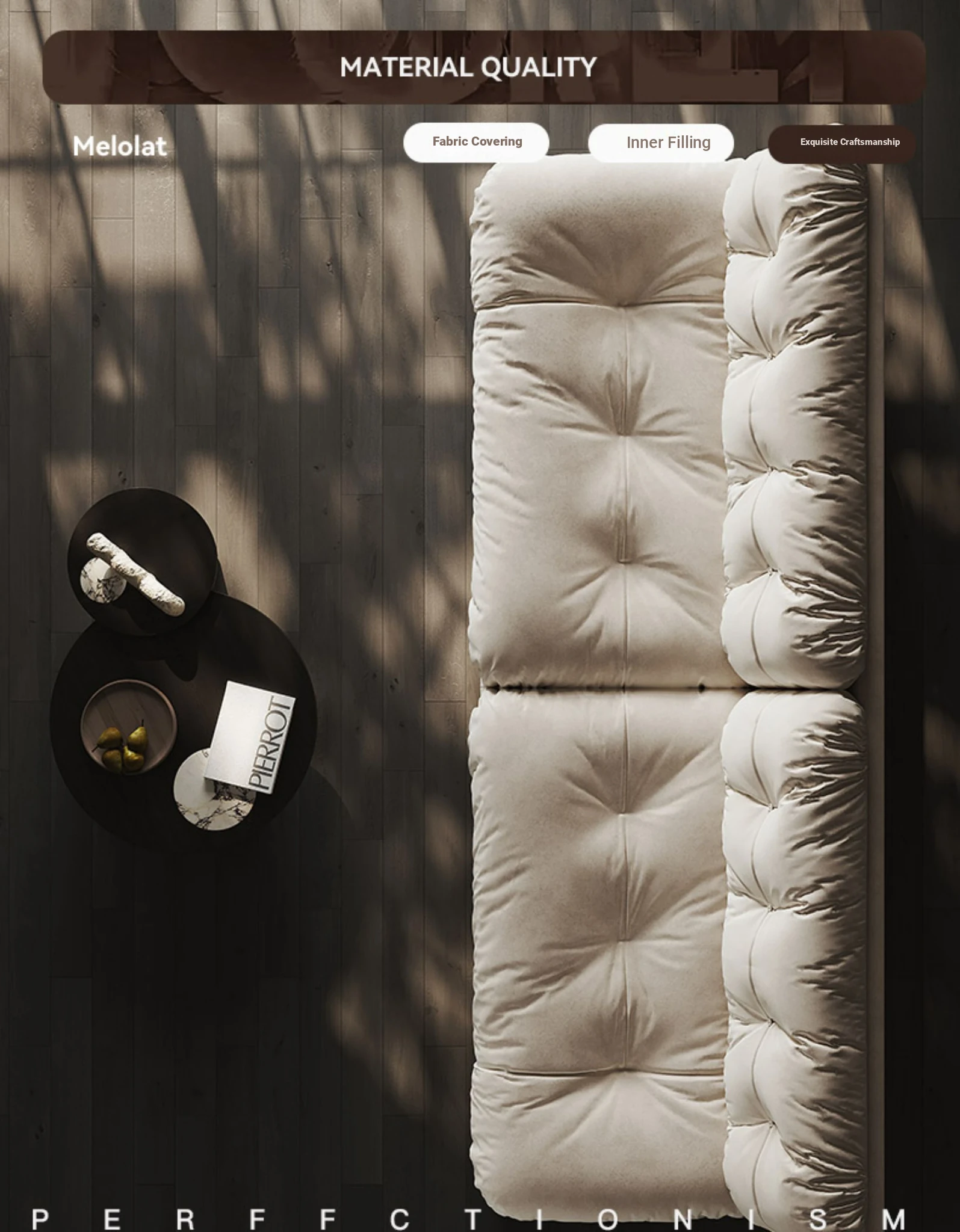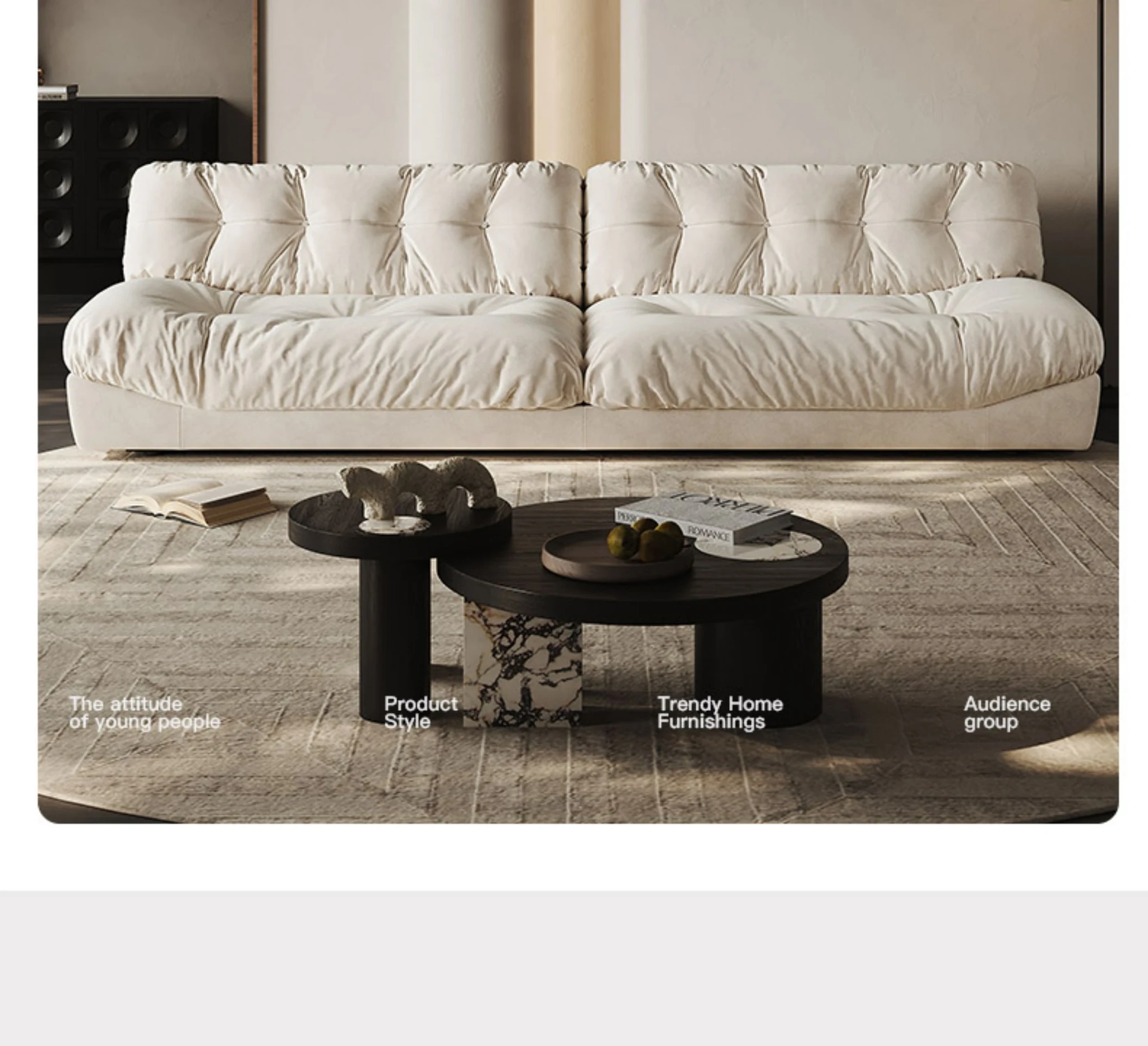 Melolat Cloud Sofa - Original Cream Style, Designer's Choice for Living Room, Retro Milano-Inspired Deep Seating with Luxurious Down Filling