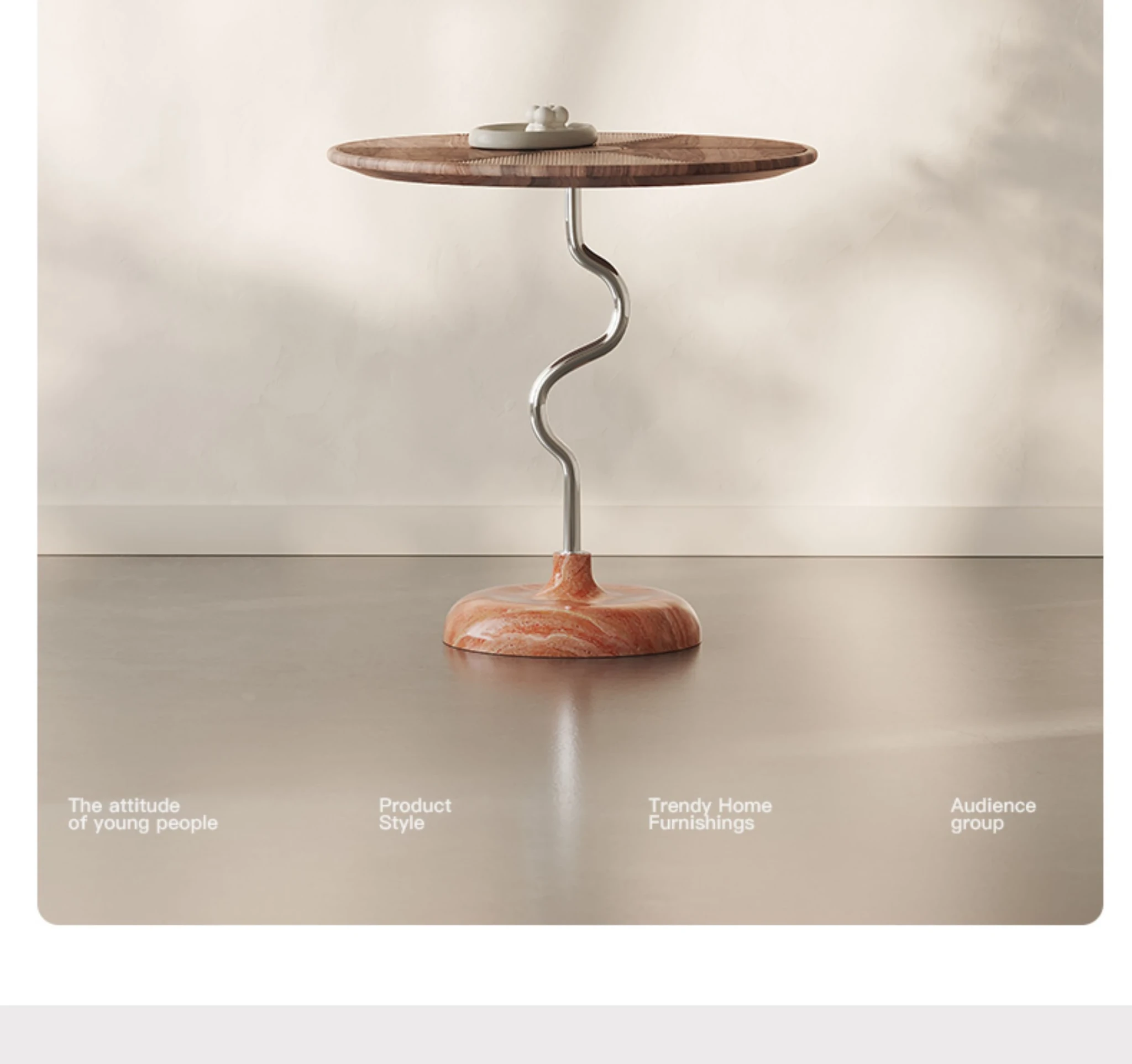 【North American Imported Solid White Ash Wood Carved Panel + Italian Natural Red Limestone Marble】 Original Design Side Table