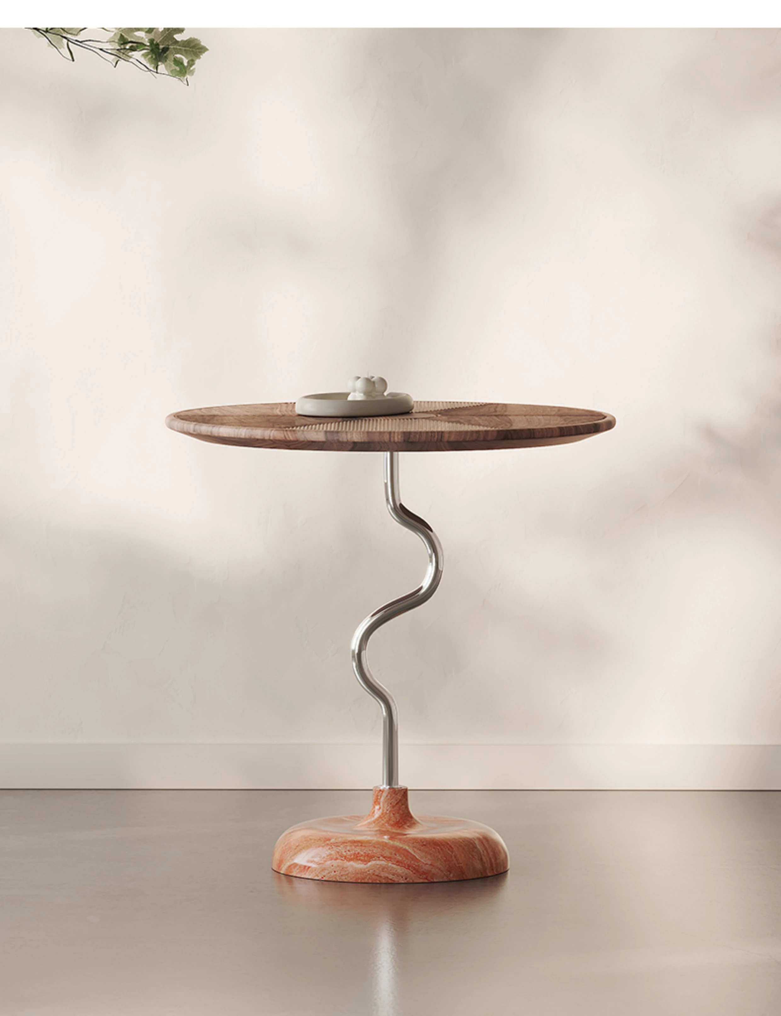 【North American Imported Solid Black Walnut Carved Top + Italian Natural Red Sandstone Marble】 Original Design Side Table