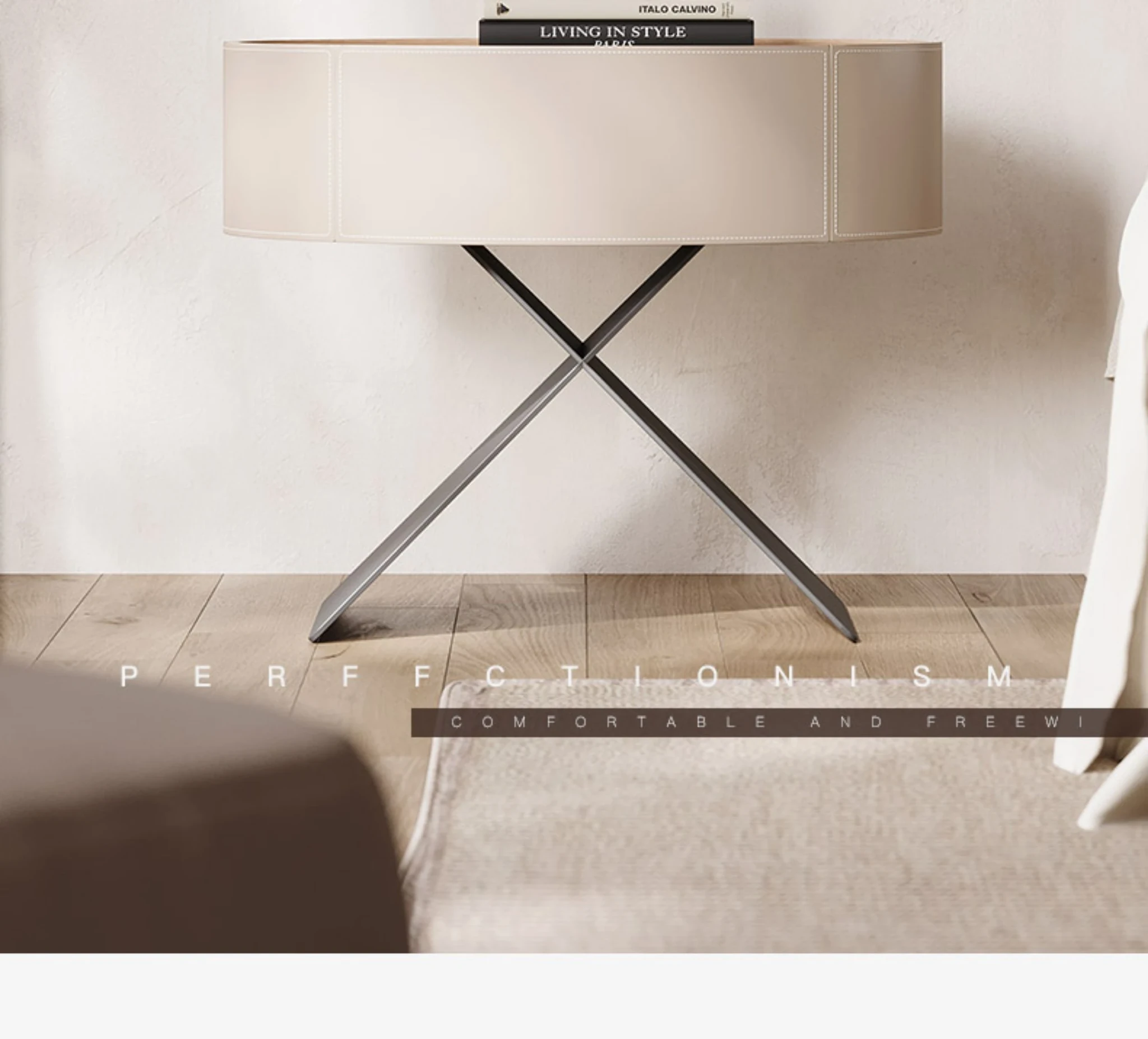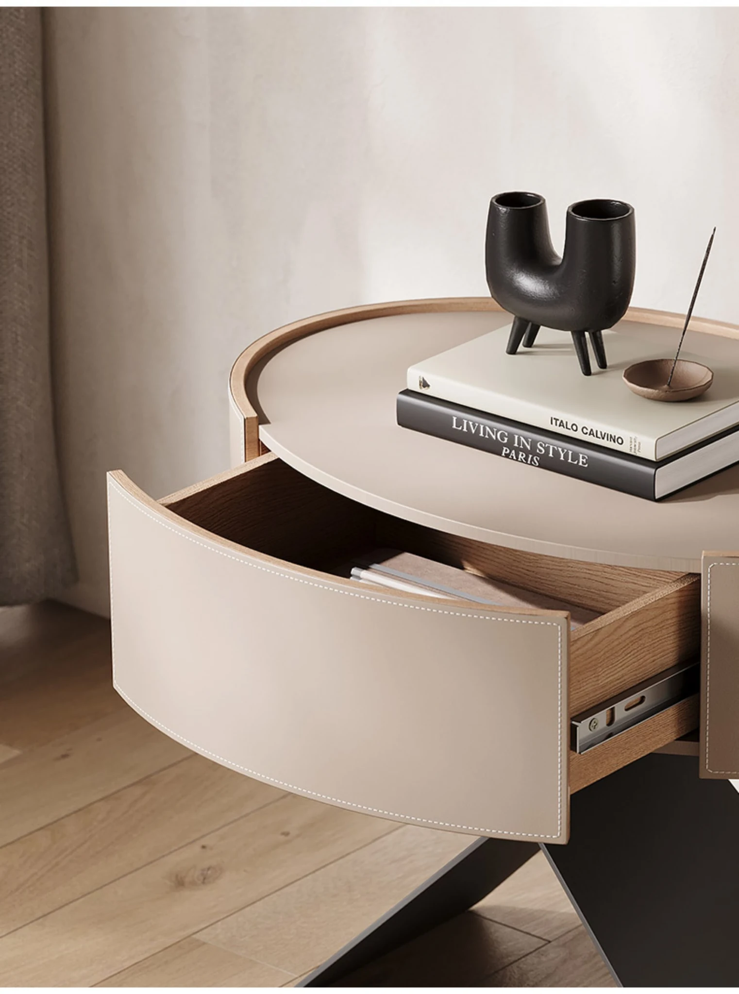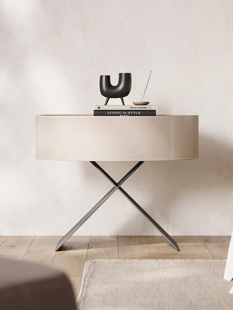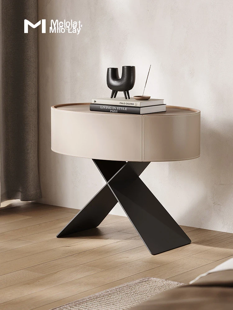 [Minimalist Series 009 # Bedside Table] [Italy Imported Saddle Leather]
