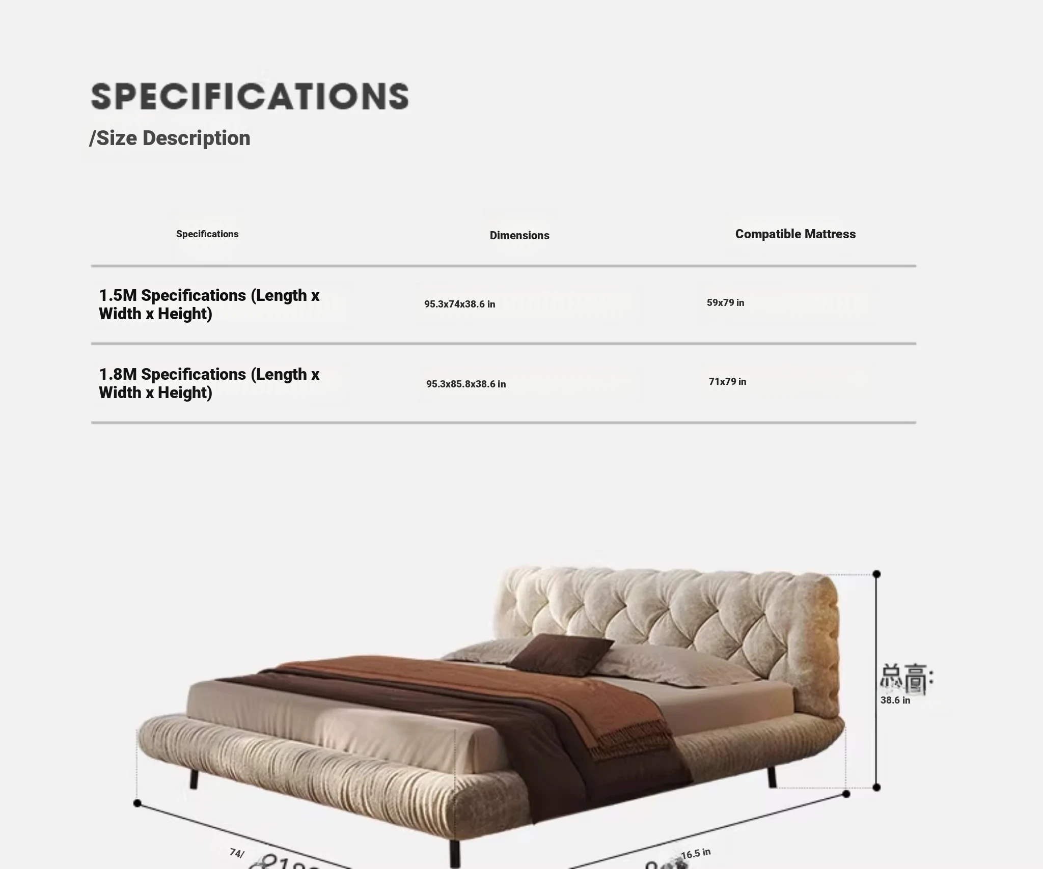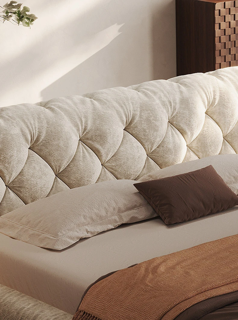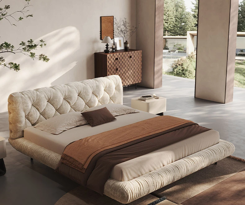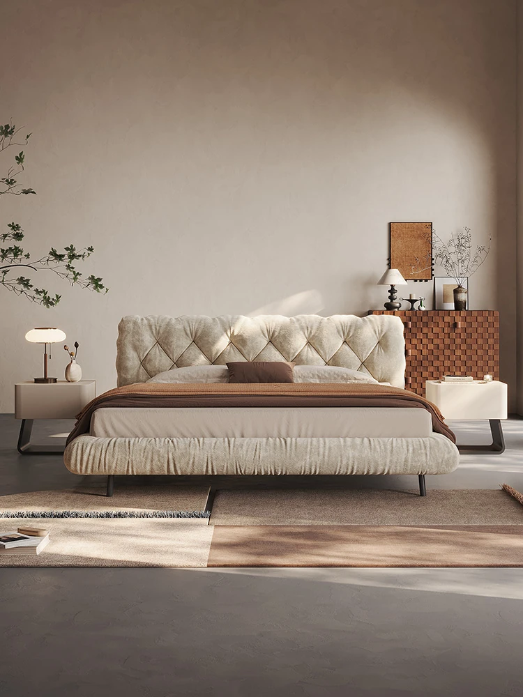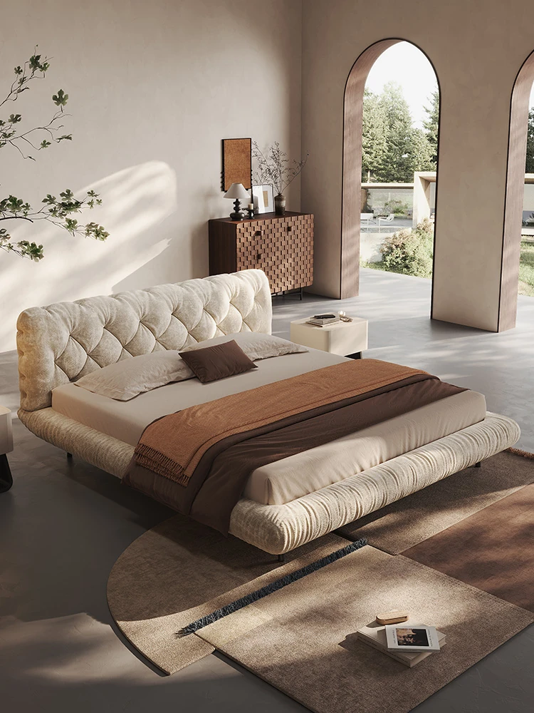 Melolat Designer Fabric Bed - Italian Minimalist Cream Style Master Bedroom Double Wedding Bed, Modern Patent Design