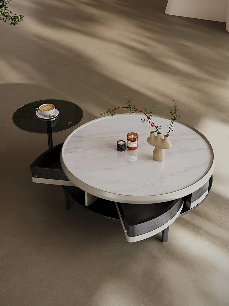 Melolat Designer Italian Minimalist High-End Super Crystal Stone Coffee Table Set - Artistic Round Coffee Table for Living Room Use