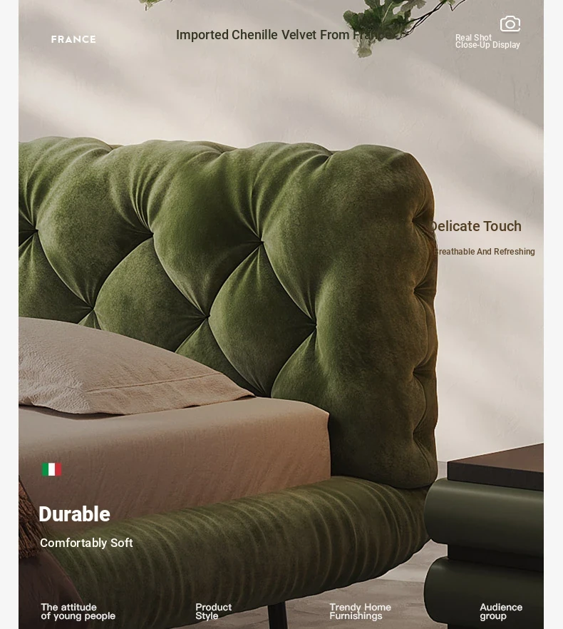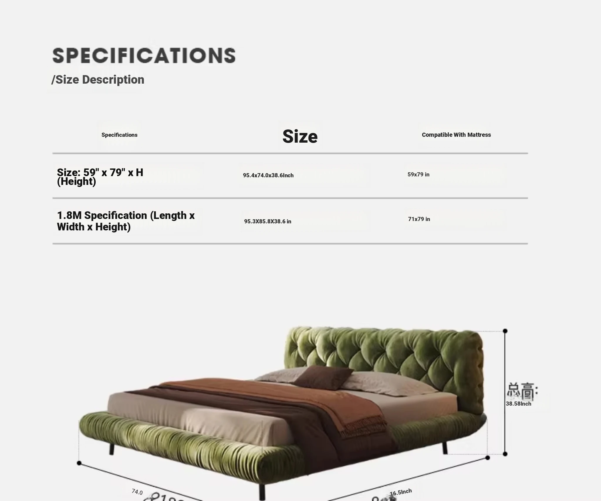 Used Green 70.87in Single Bed [France Import Cat Claw Cloth] 2025 Patented New Style