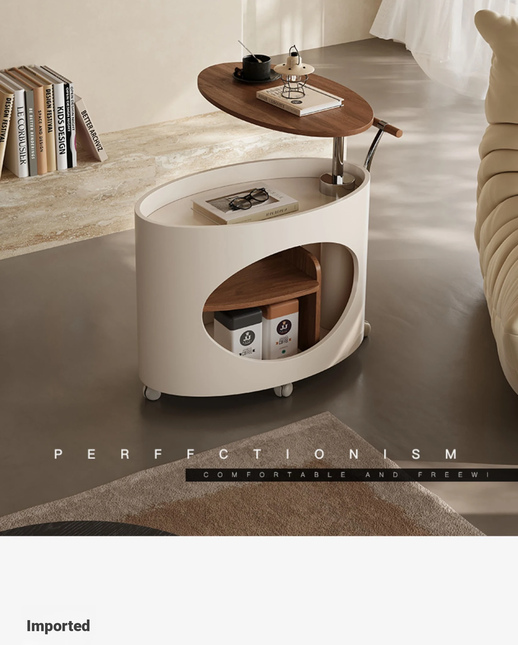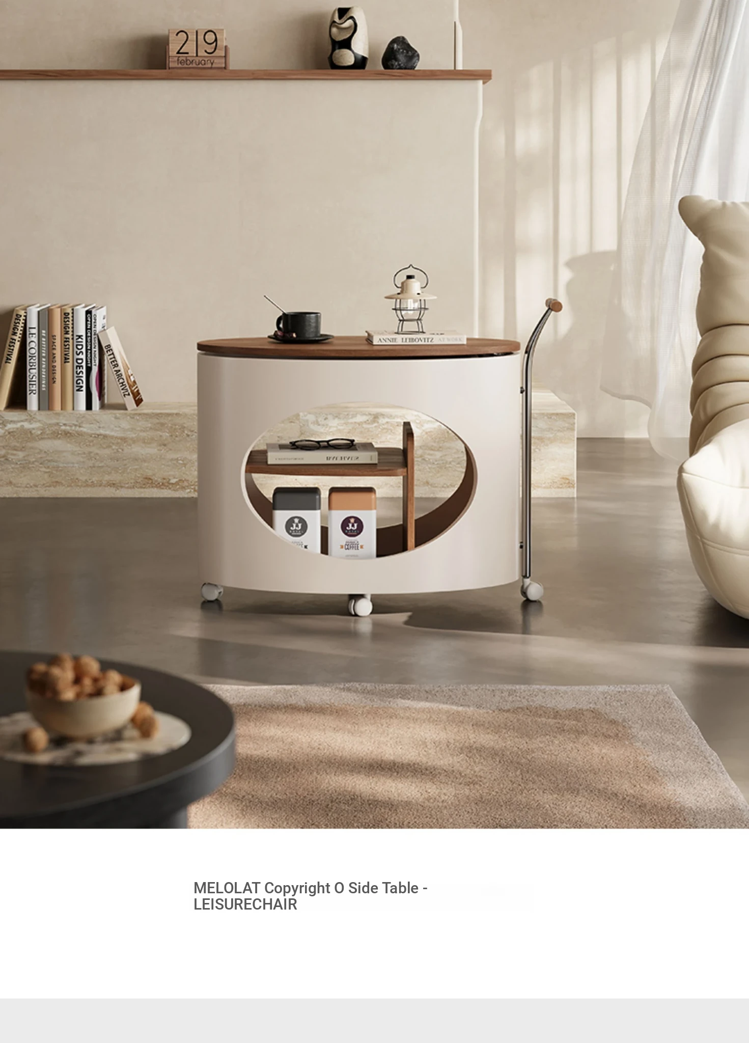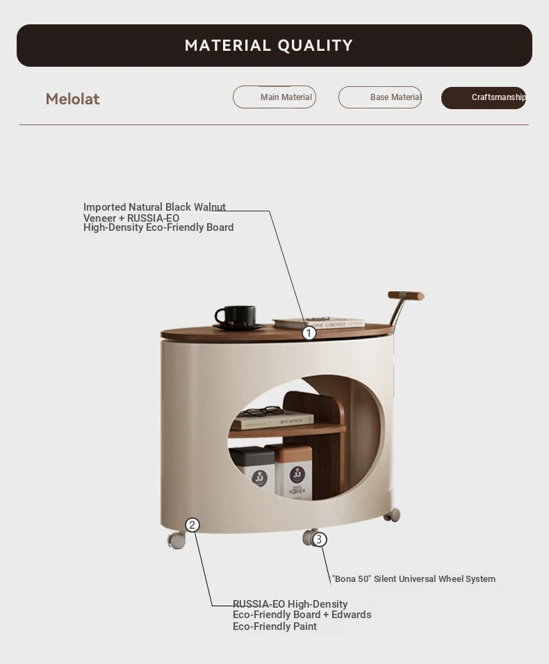 Melolat Designer Patented Mini Cart - Walnut Veneer Side Table, Stylish Italian-Inspired Creative Mobile Storage Rack